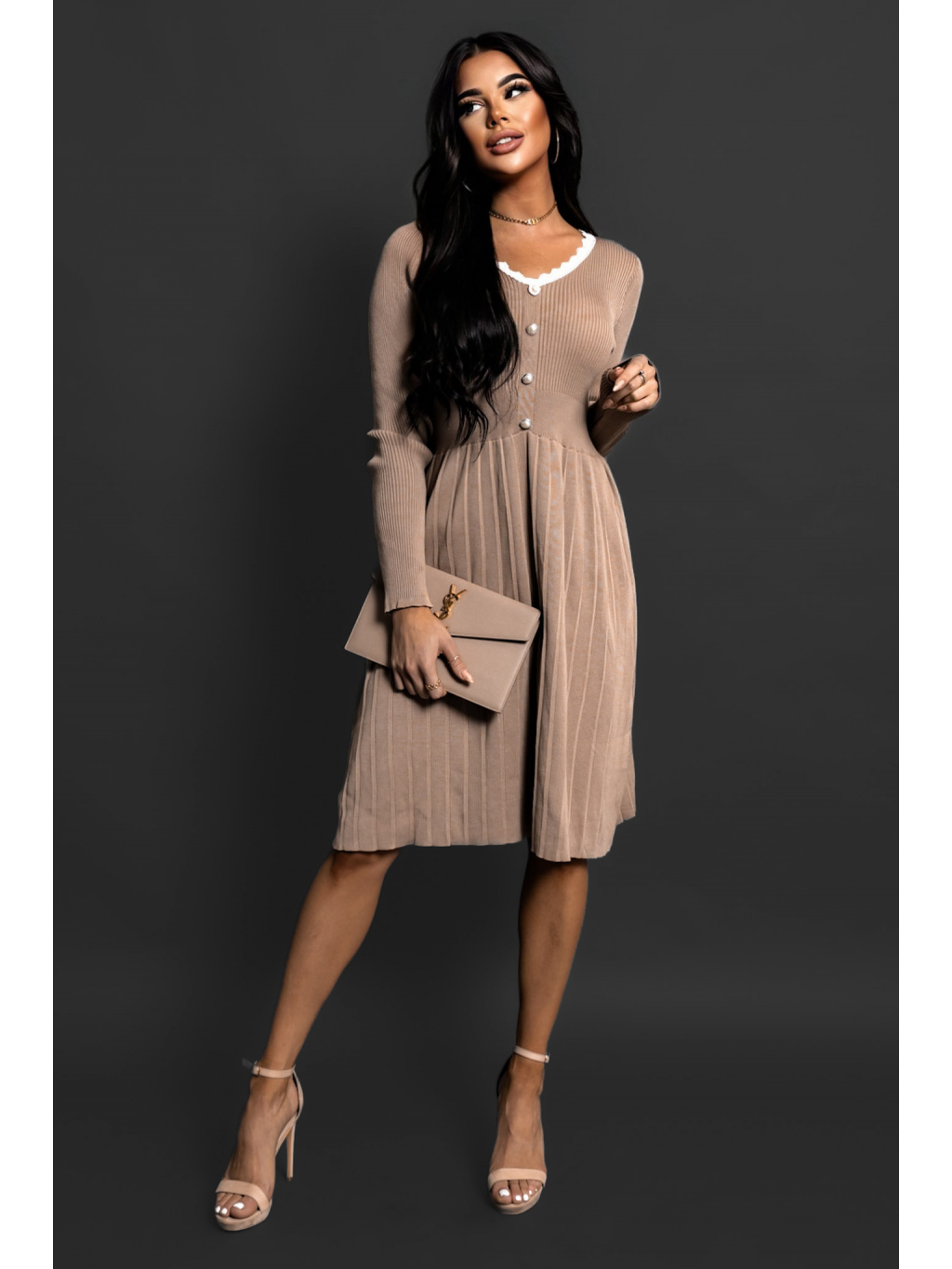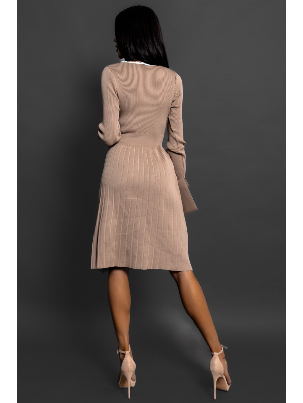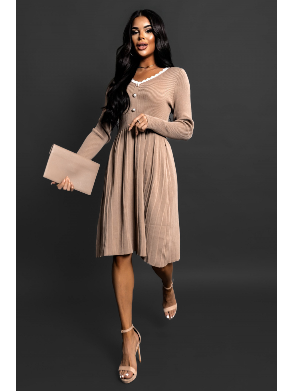 Hnědé úpletové šaty LAIA s dlouhým rukávem