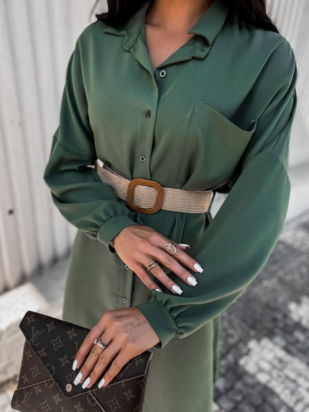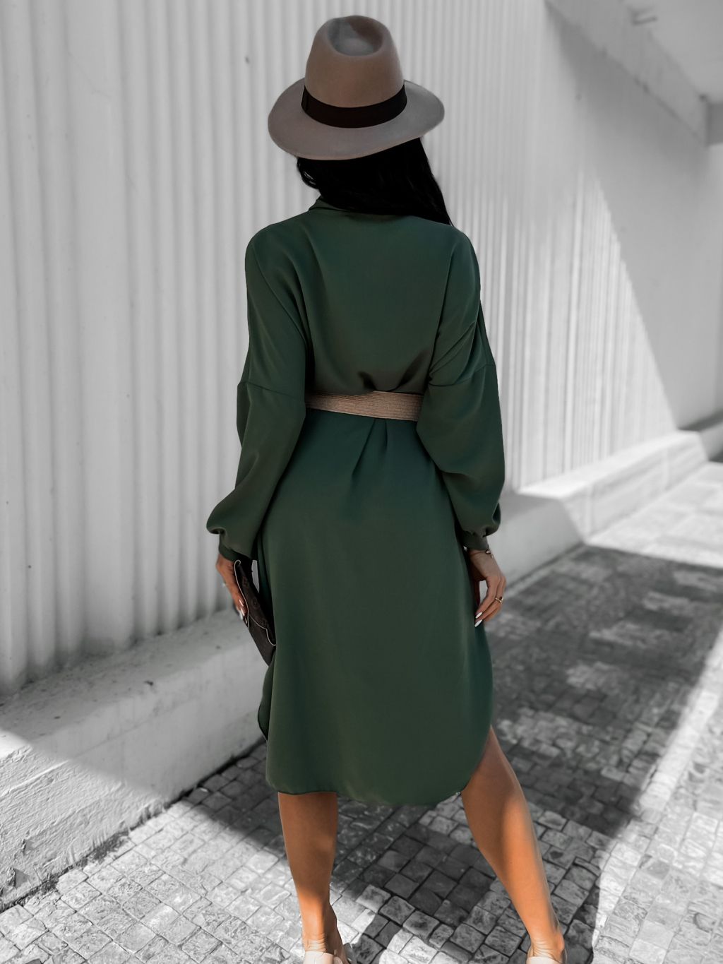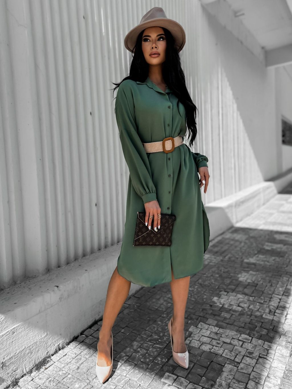 Khaki elegantní košilové šaty AMPRI s páskem