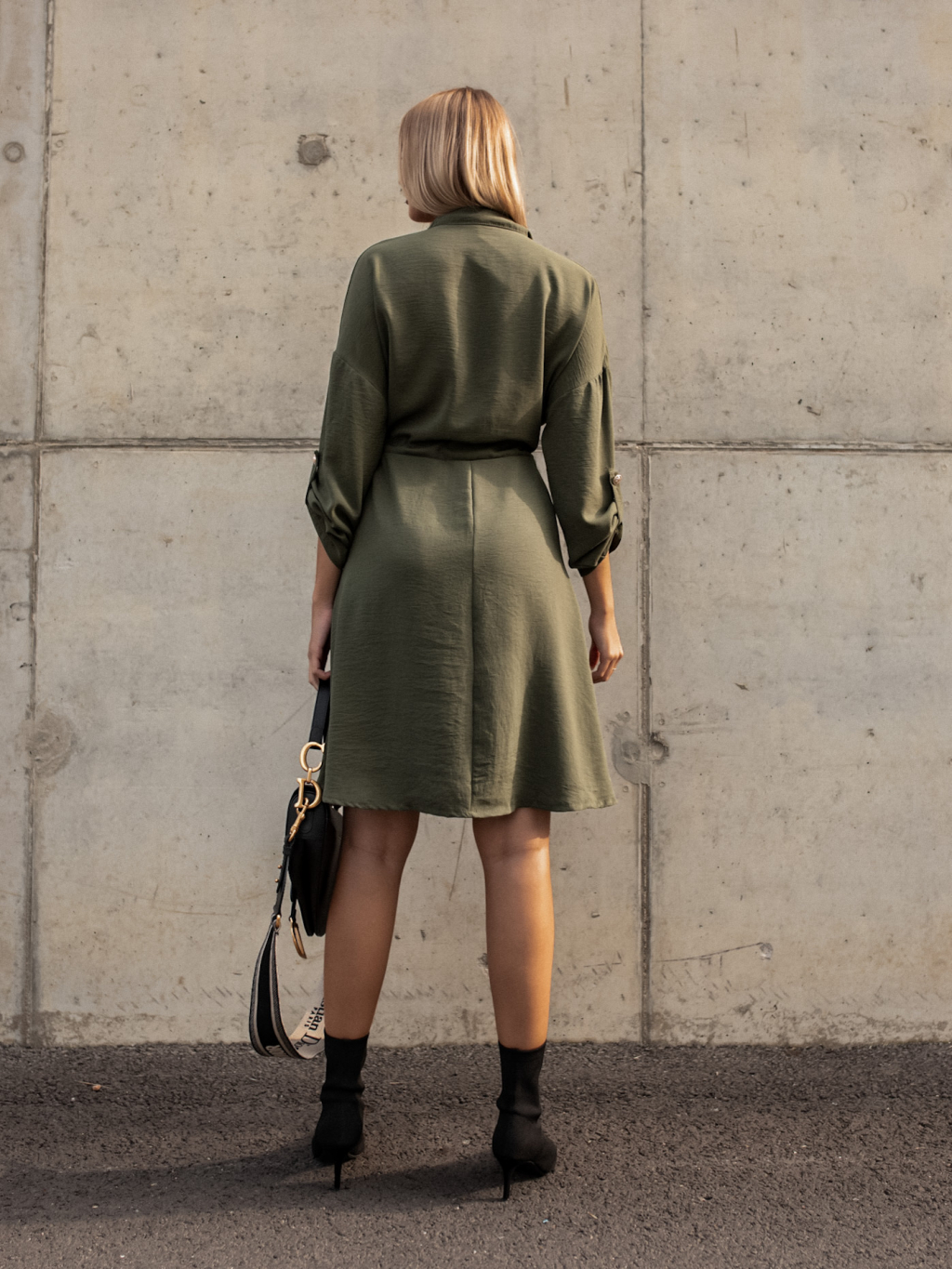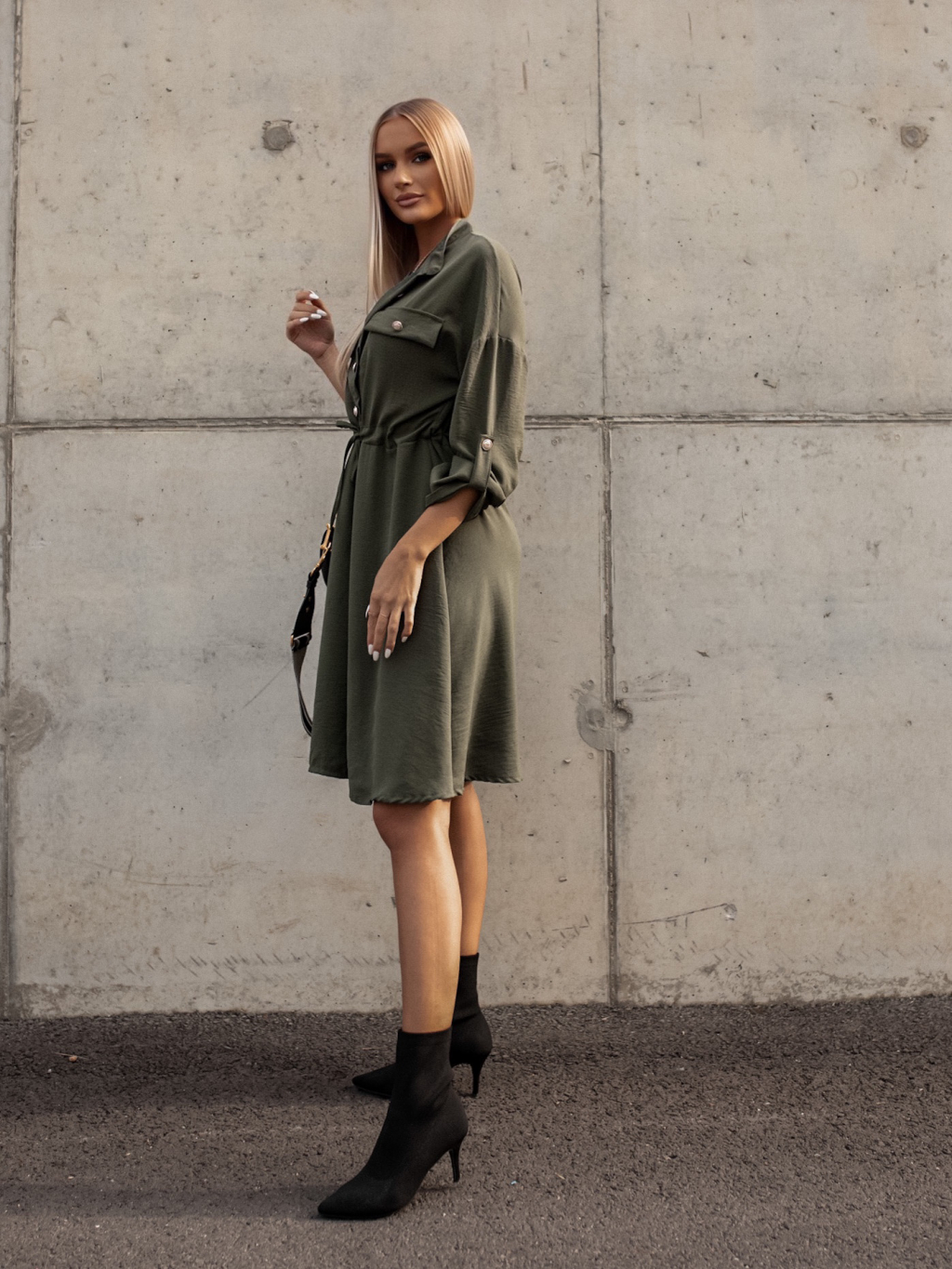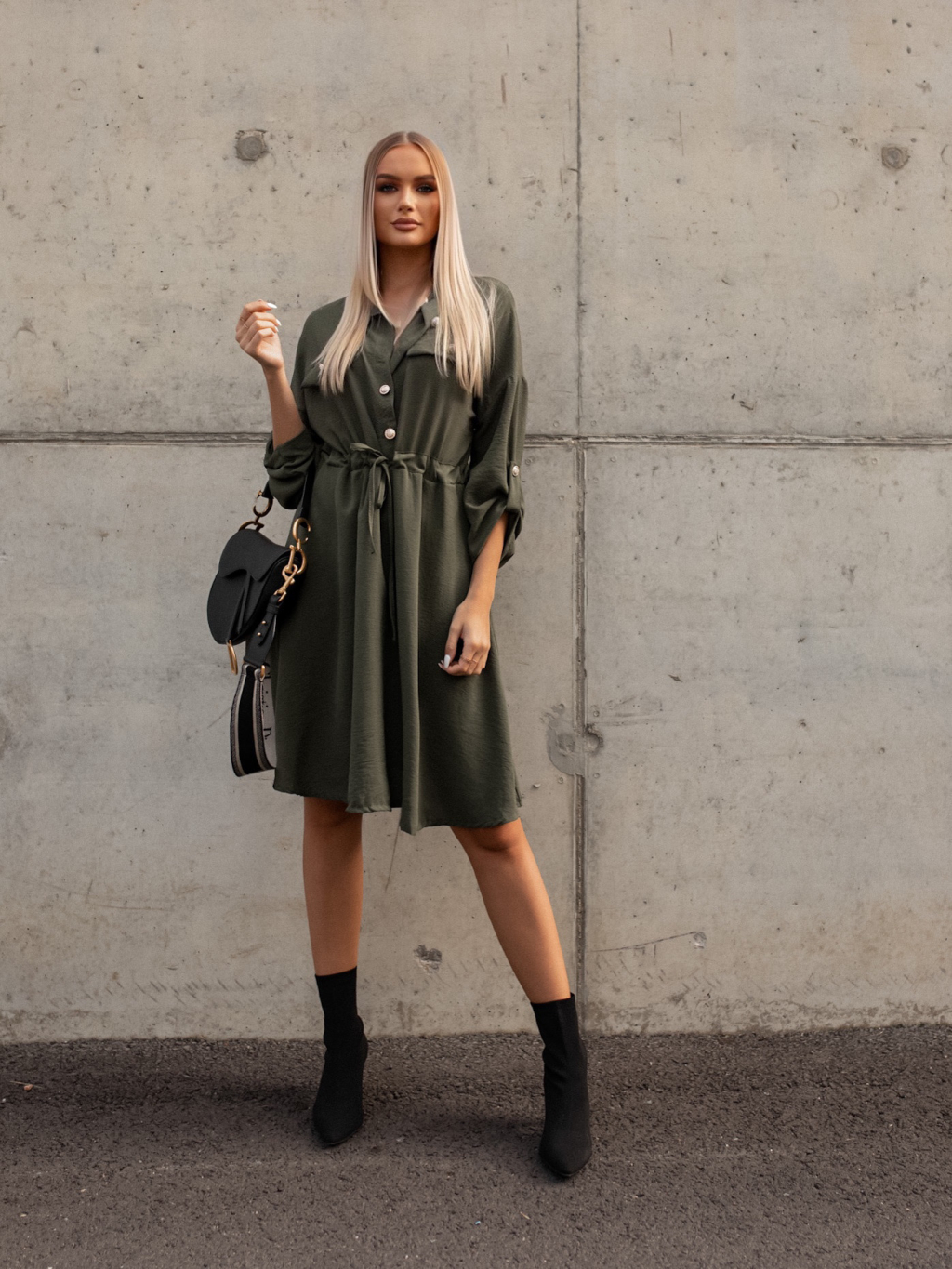 Khaki košilové šaty HERITAGE se zlatými knoflíky