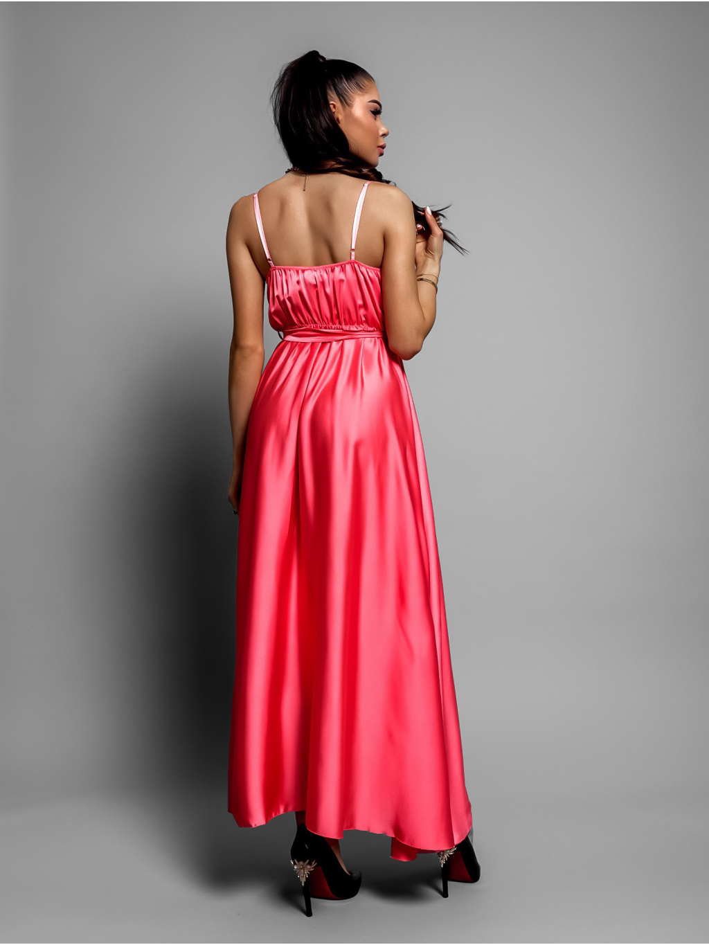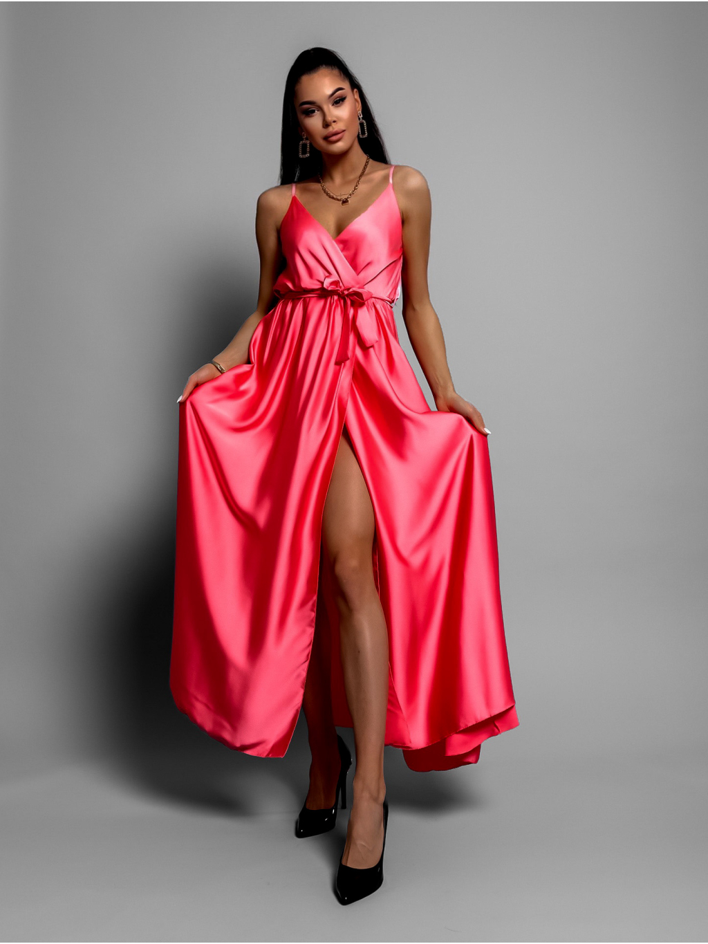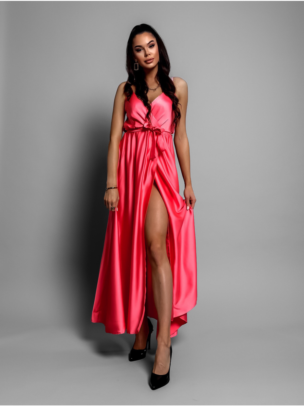 Korálové lesklé dlouhé plesové šaty PRIMROSE