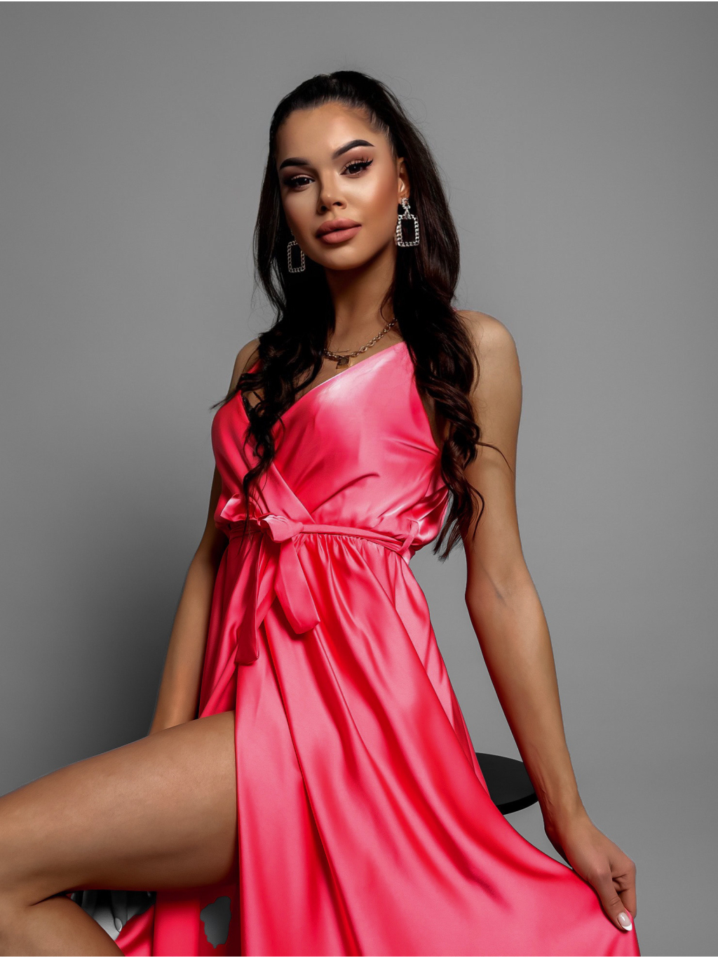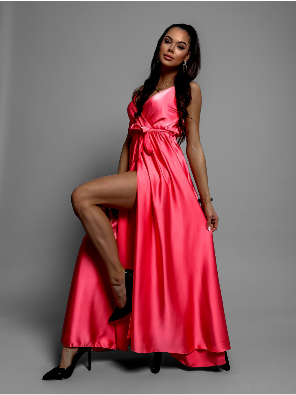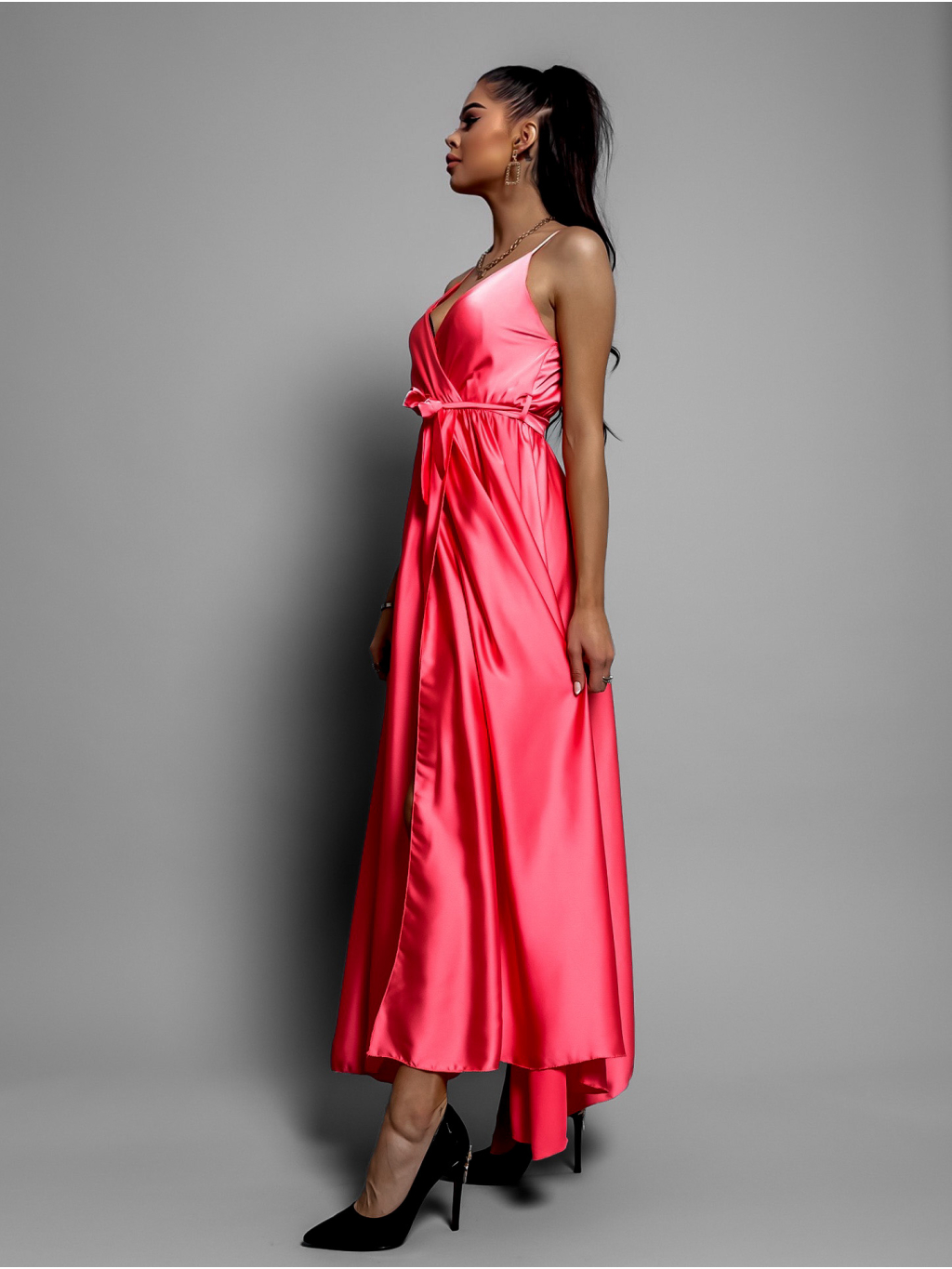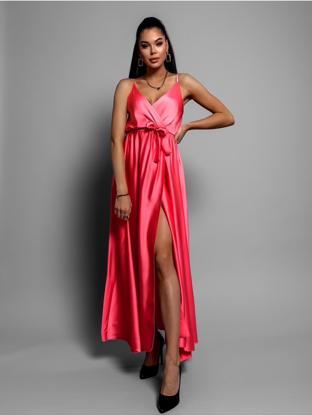 Korálové lesklé dlouhé plesové šaty PRIMROSE