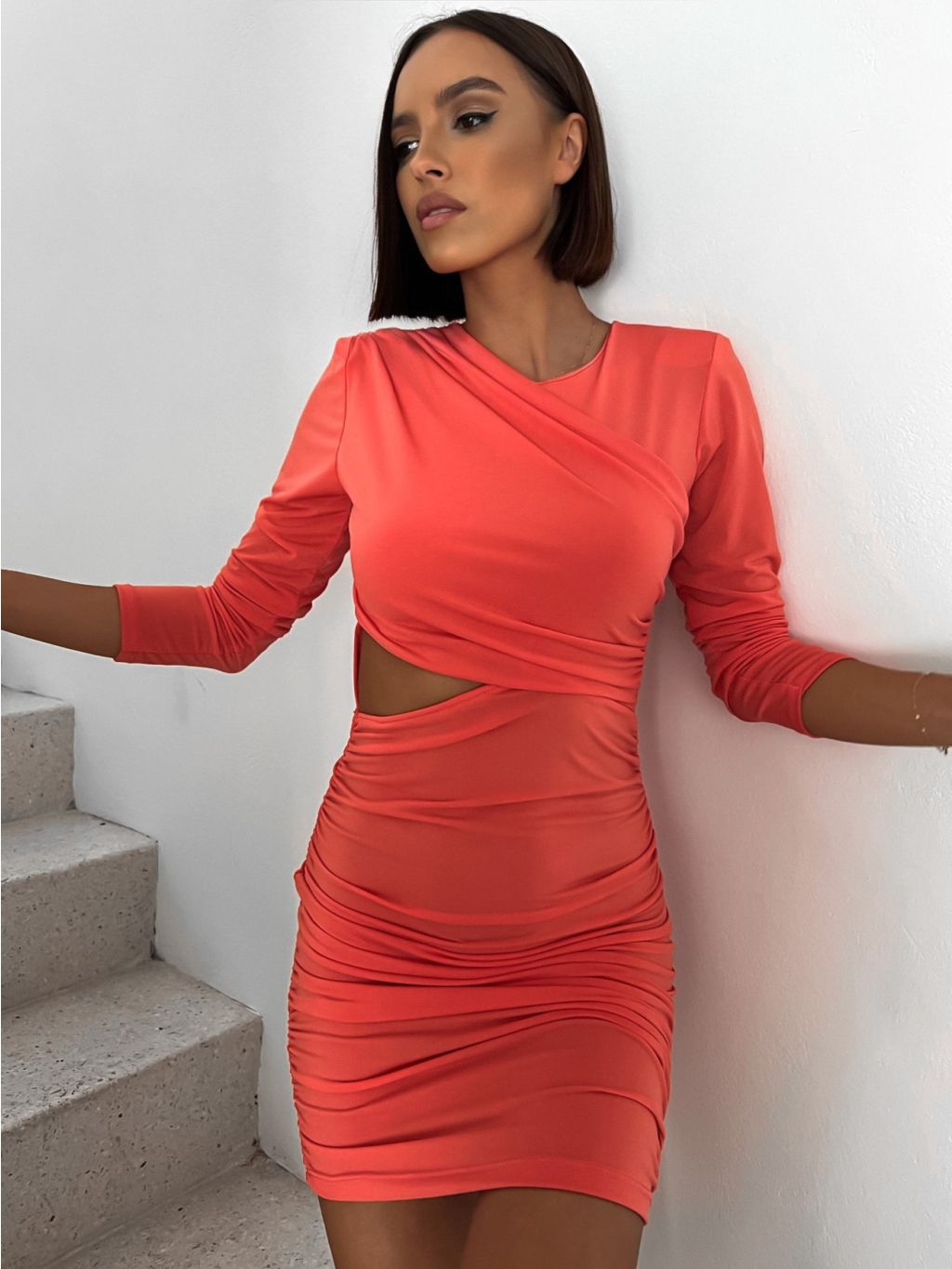 Korálové šaty GALANY s průstřihem