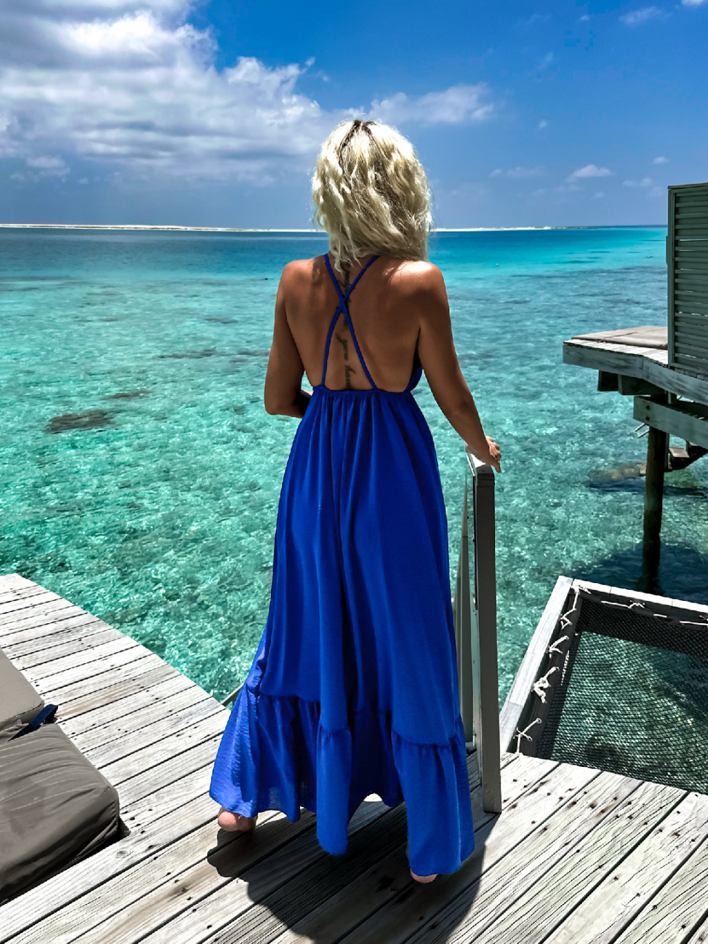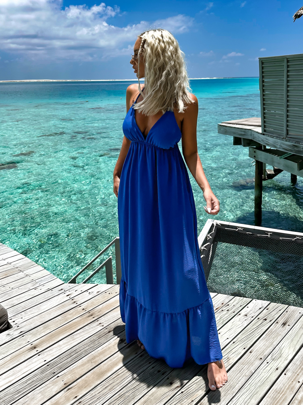 Královsky modré dlouhé šaty LEAFI s volánem
