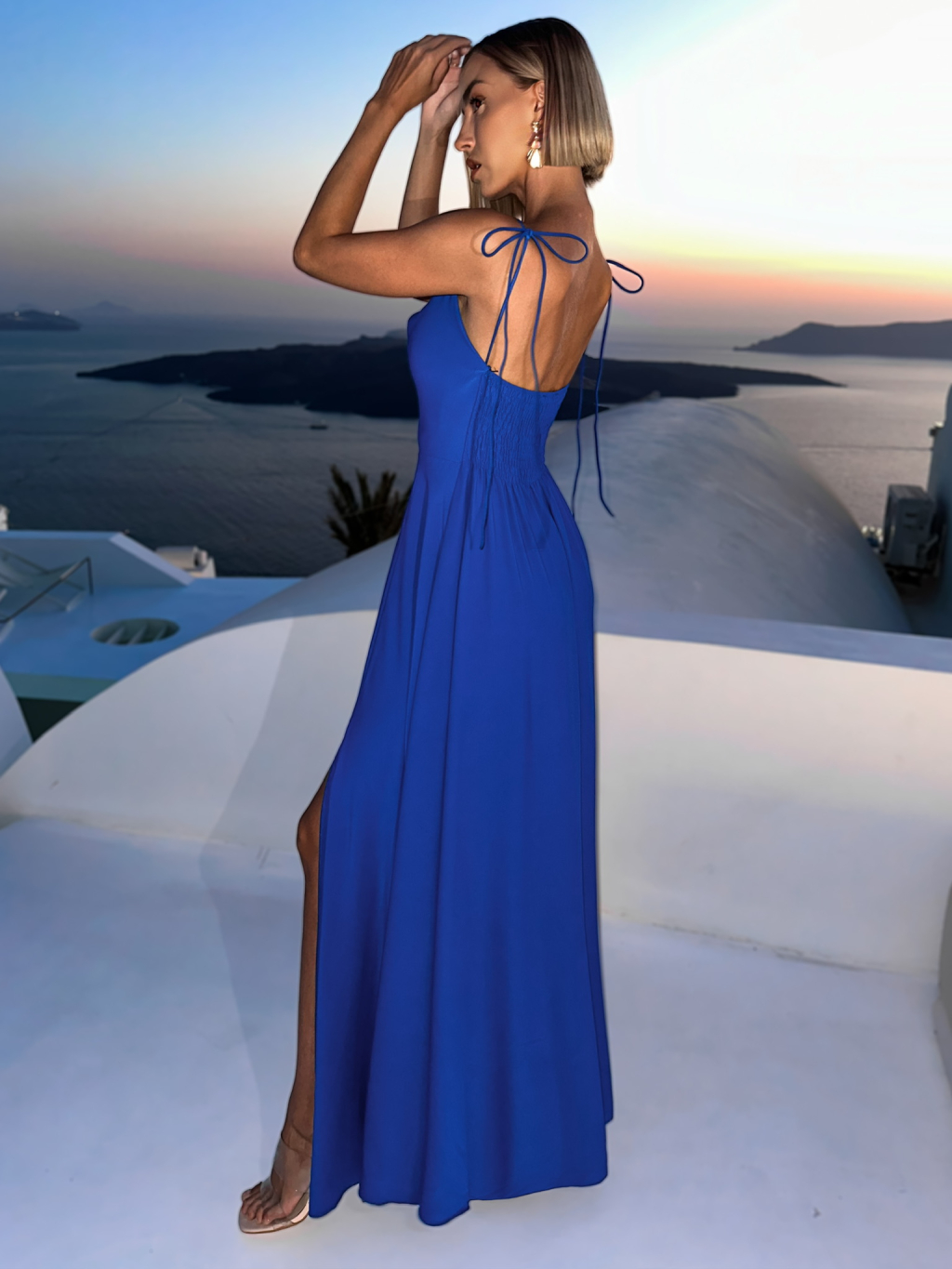 Královsky modré dlouhé splývavé šaty LERDISEL