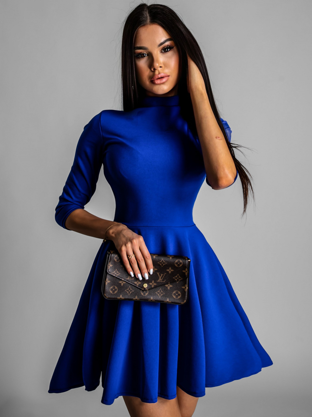 Královsky modré elegantní šaty GROUND s dlouhým rukávem