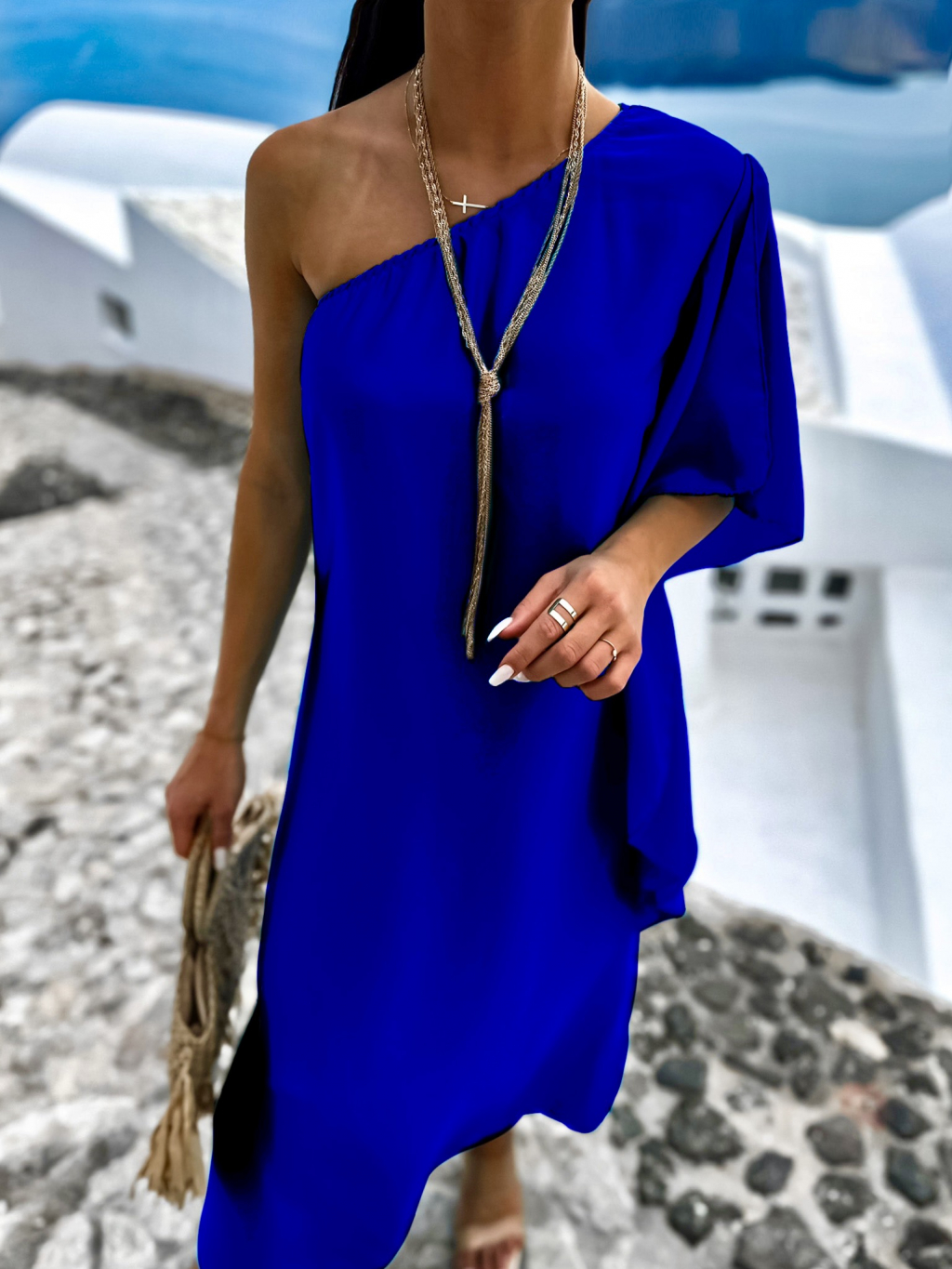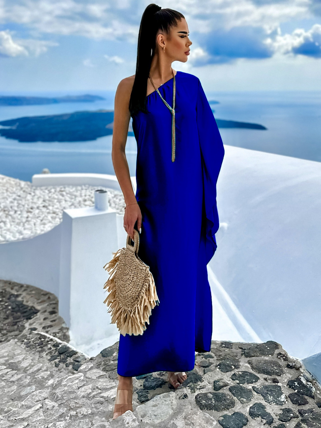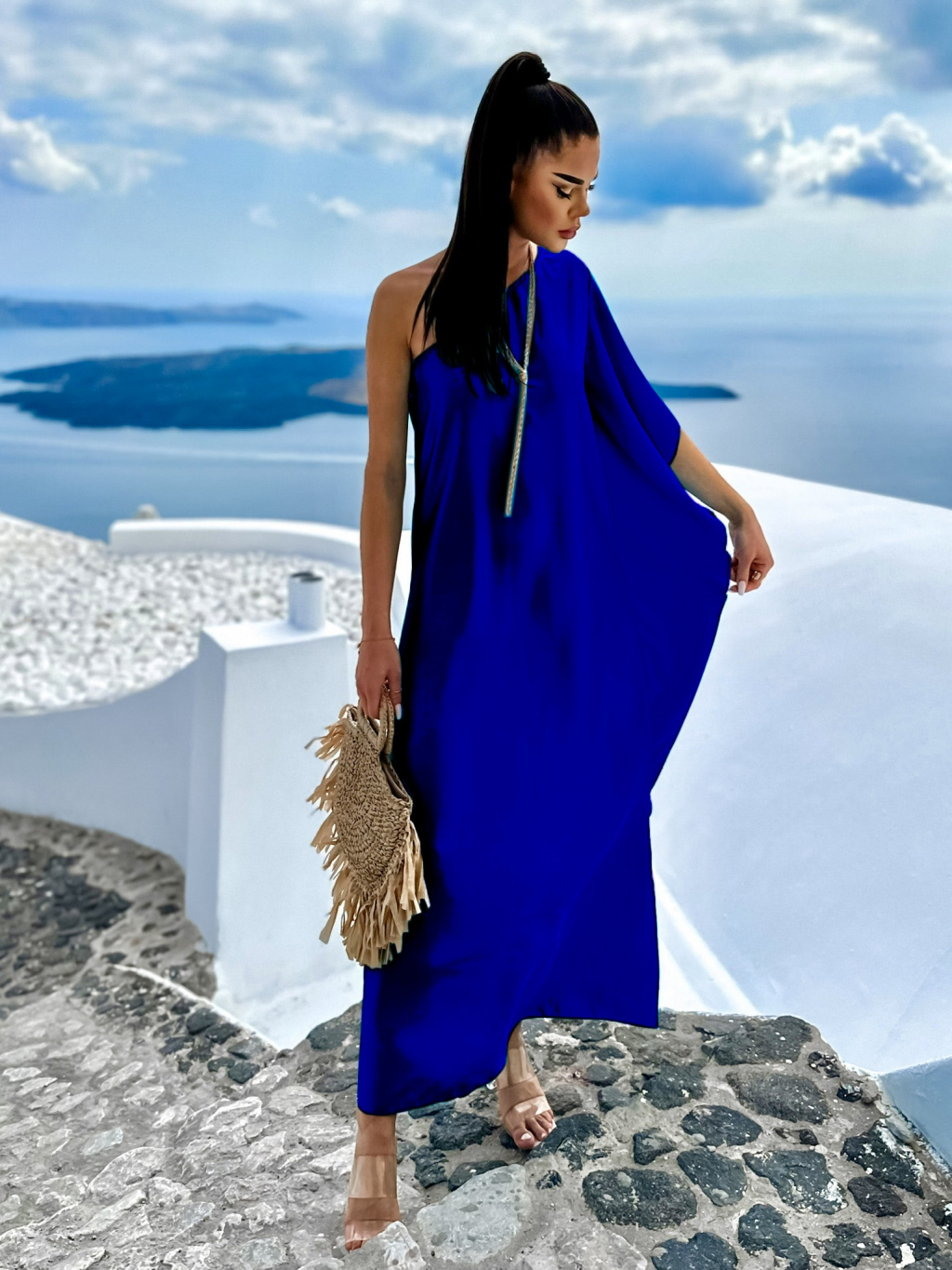 Královsky modré elegantní šaty HUDIESI přes rameno