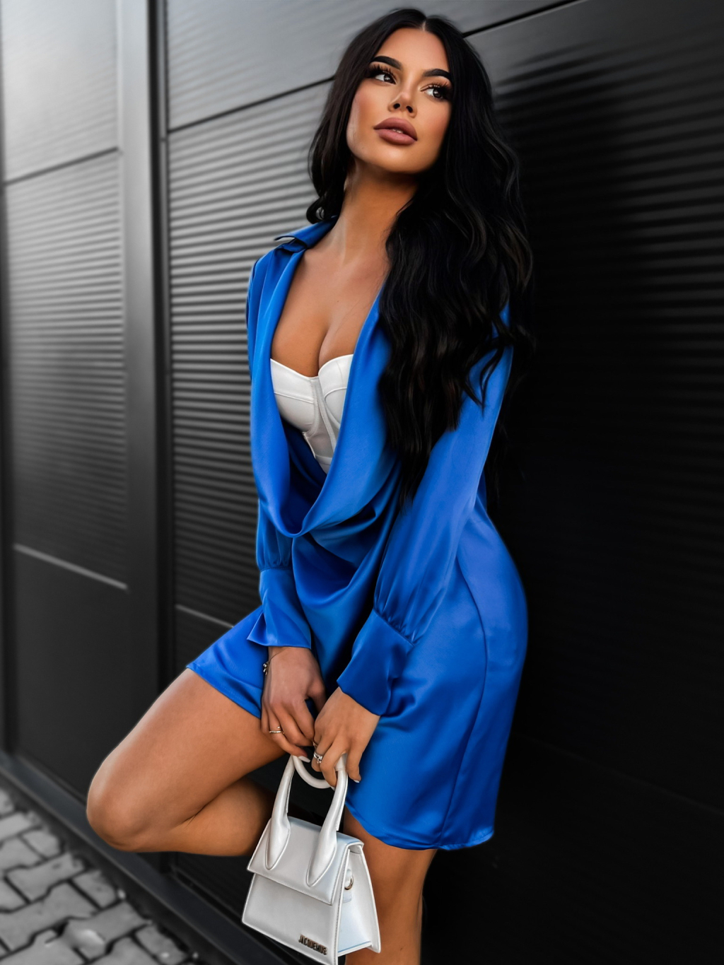 Královsky modré lesklé elegantní šaty RIGEL s hlubokým výstřihem