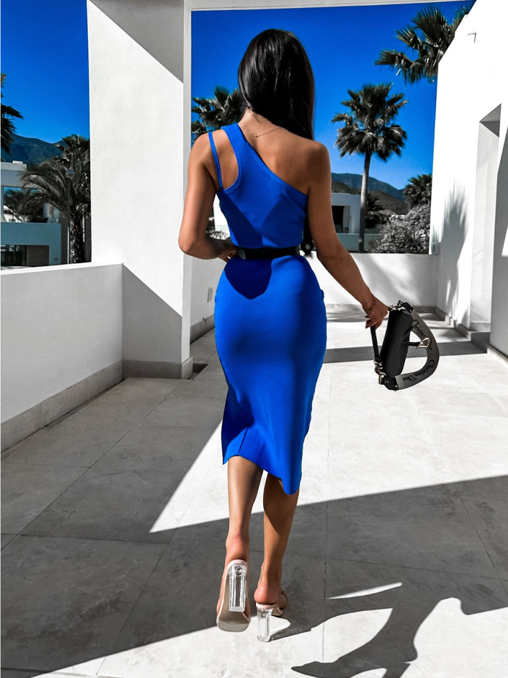 Královsky modré žebrované šaty ASTORIE s rozparkem