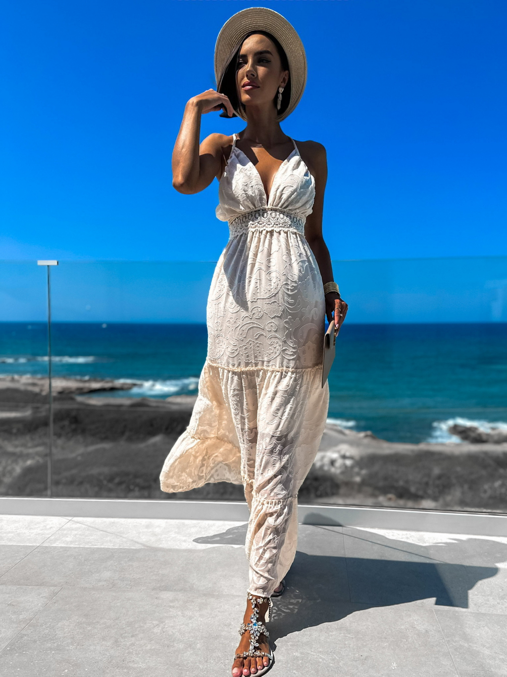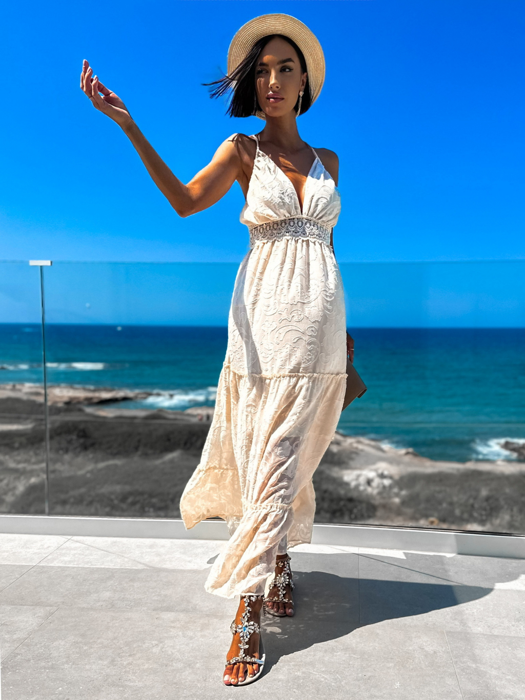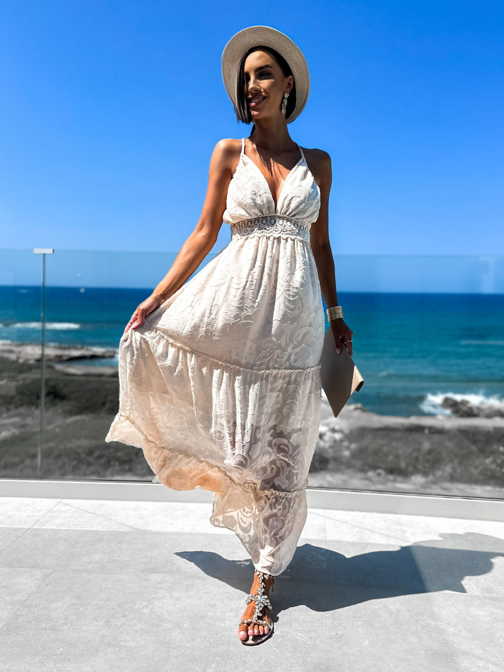 Krémové dlouhé elegantní šaty KARELS s volánem