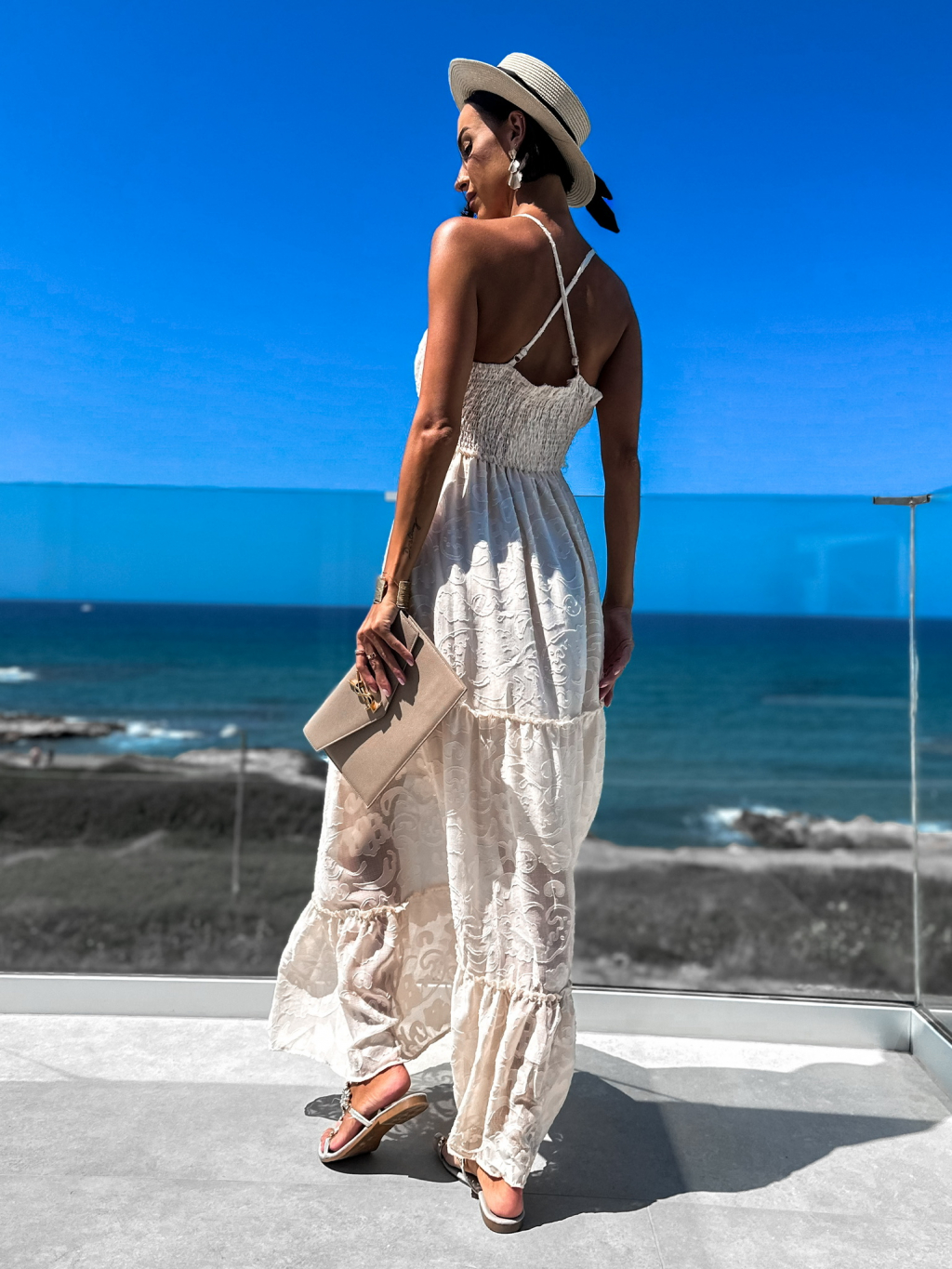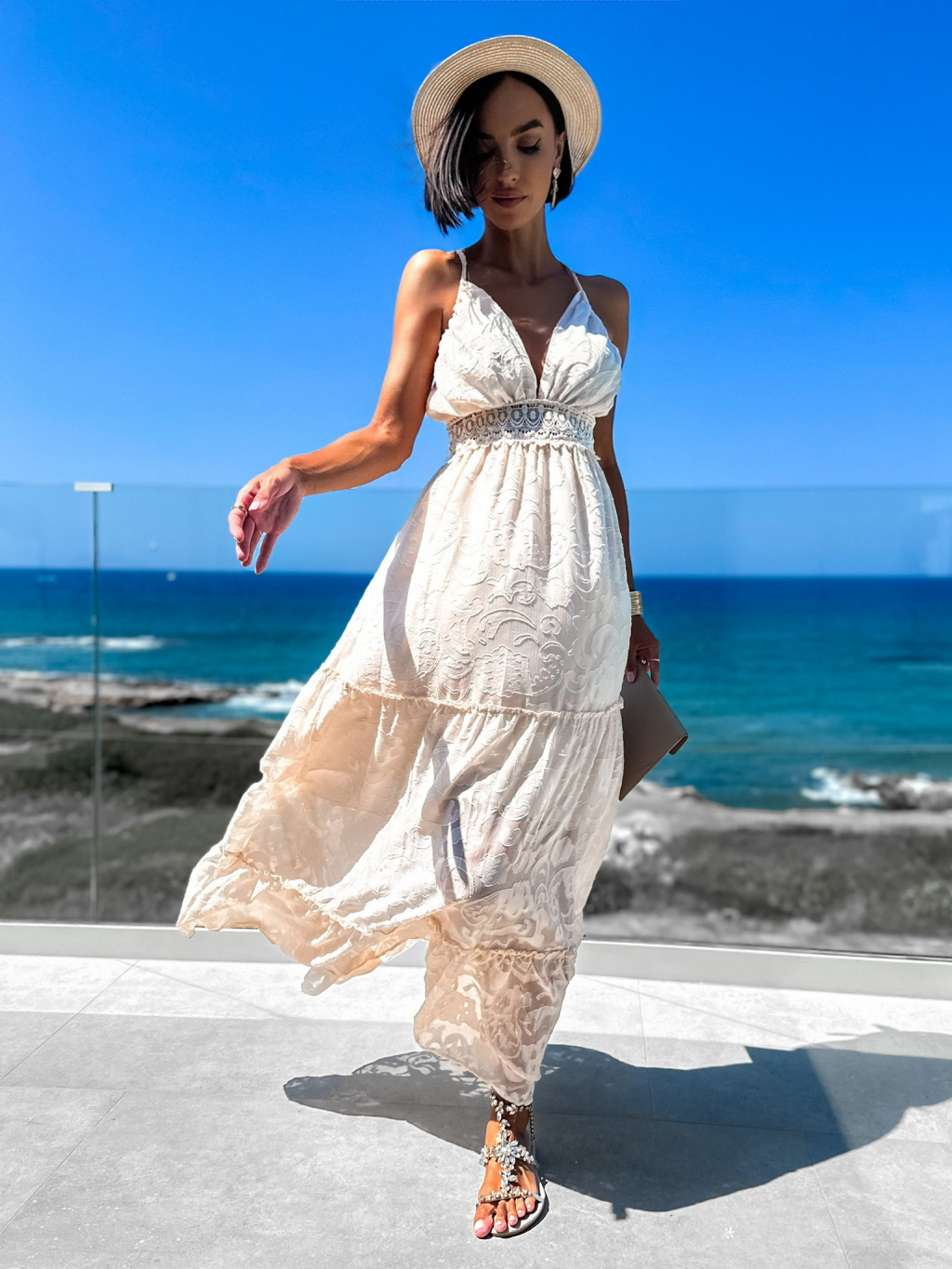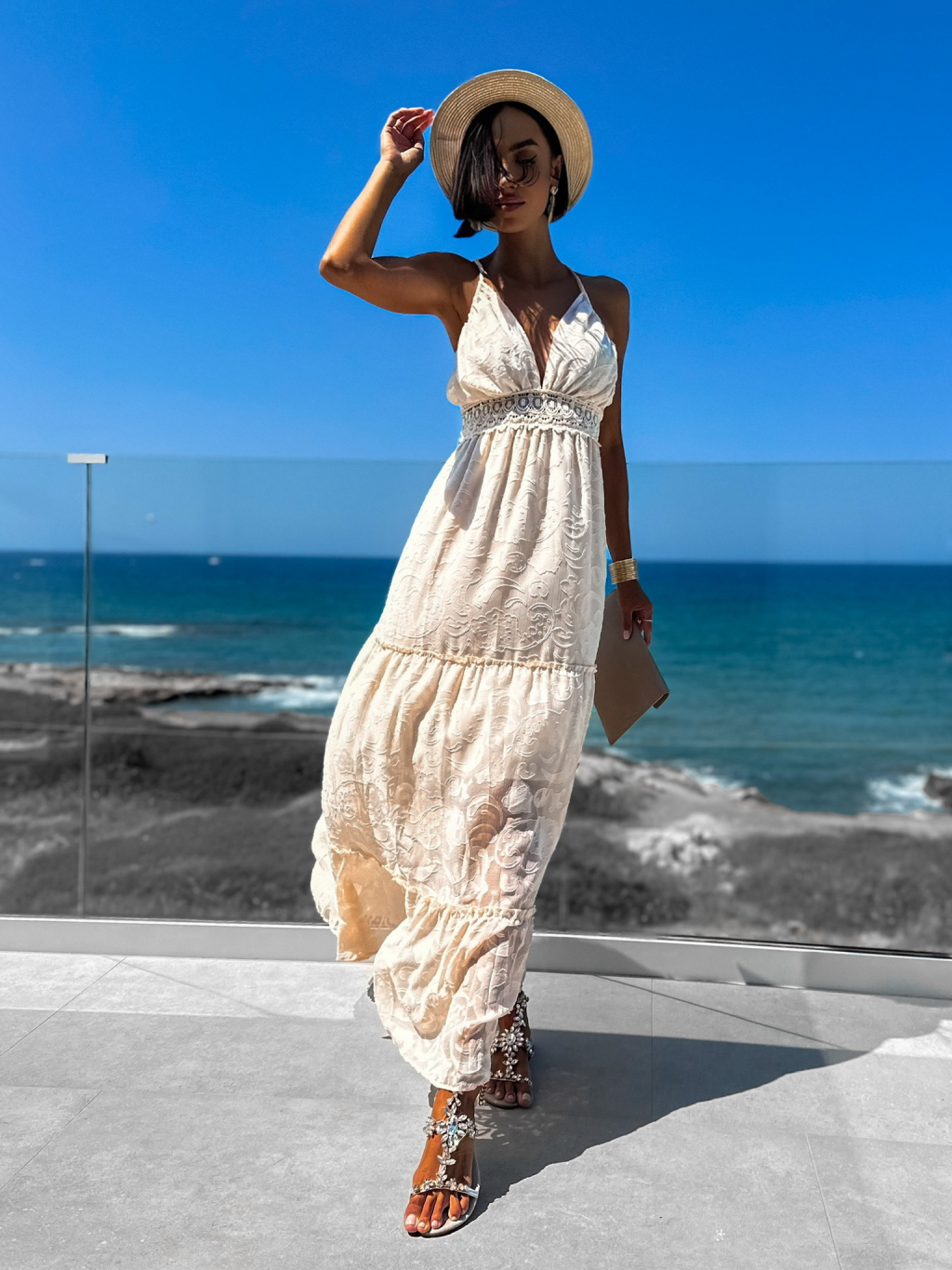 Krémové dlouhé elegantní šaty KARELS s volánem