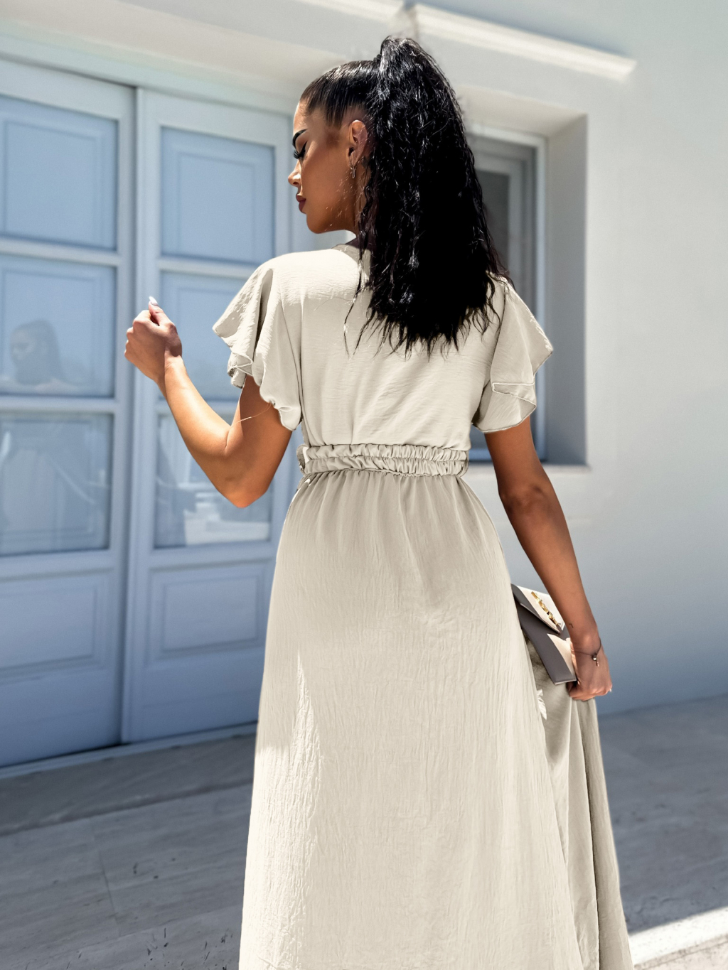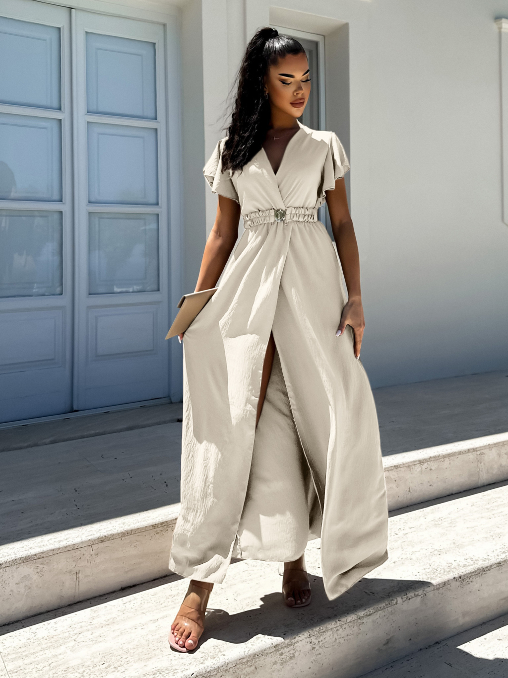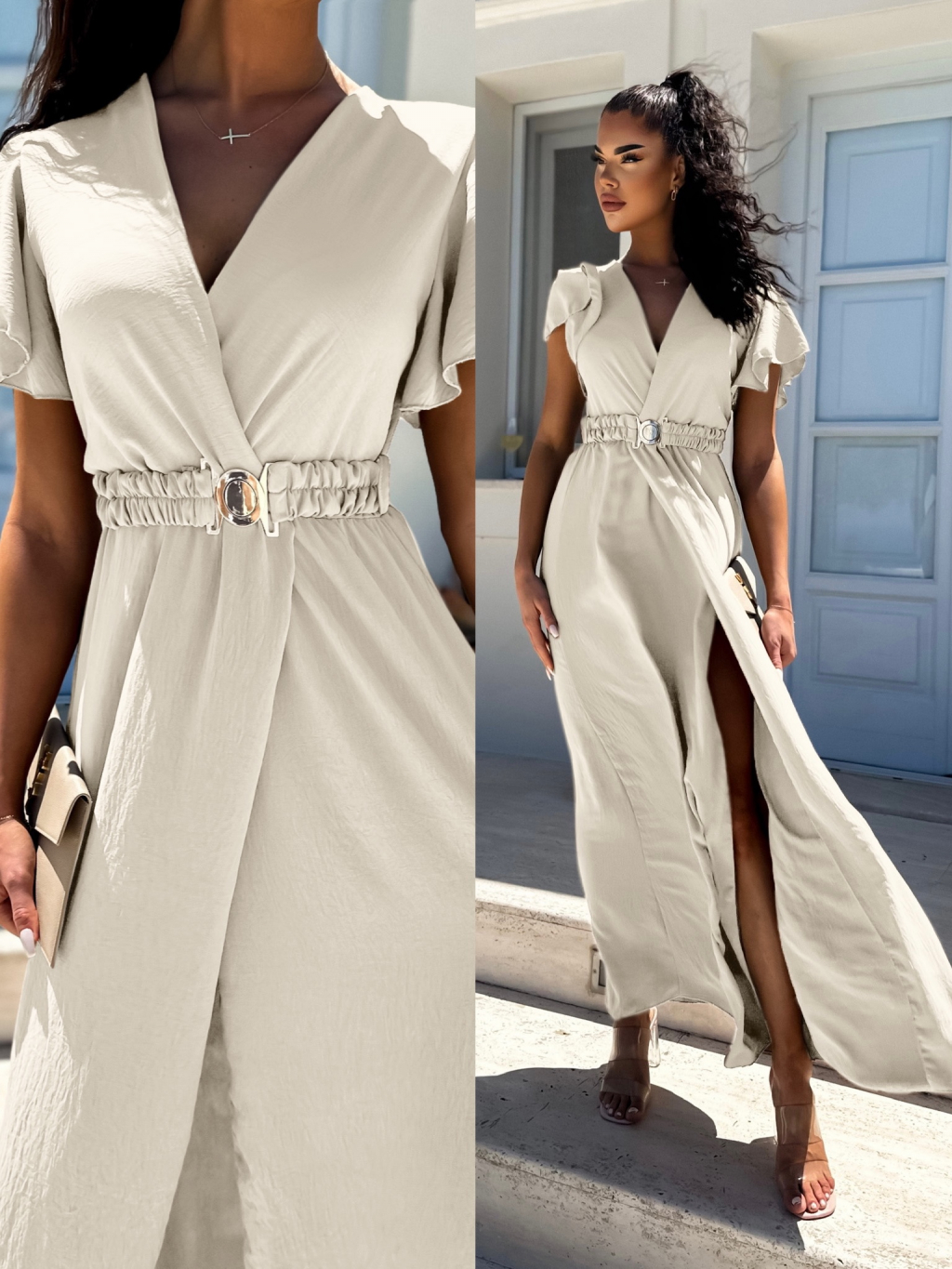 Krémové dlouhé šaty SENECIO s výstřihem do V