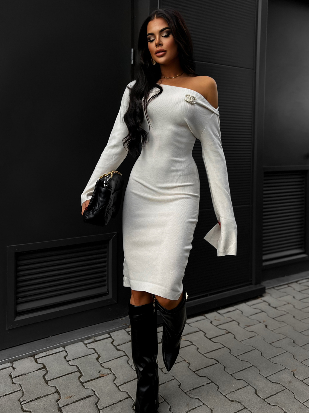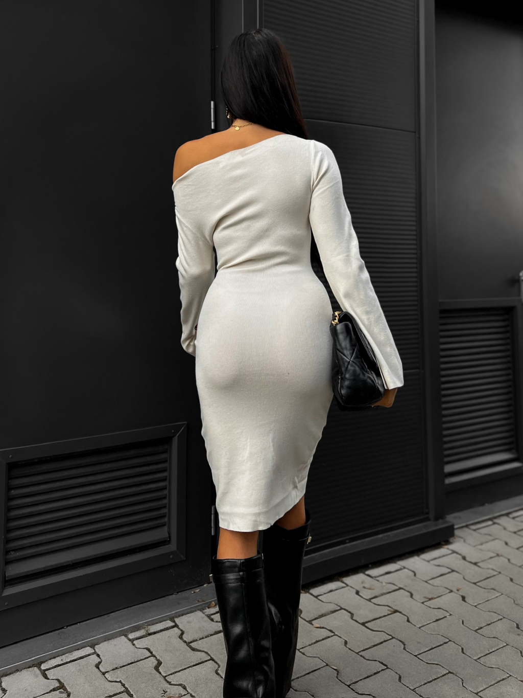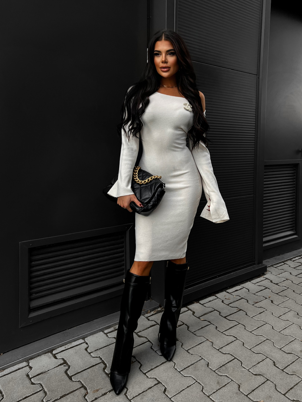 Krémové elegantní svetrové šaty HAYAT