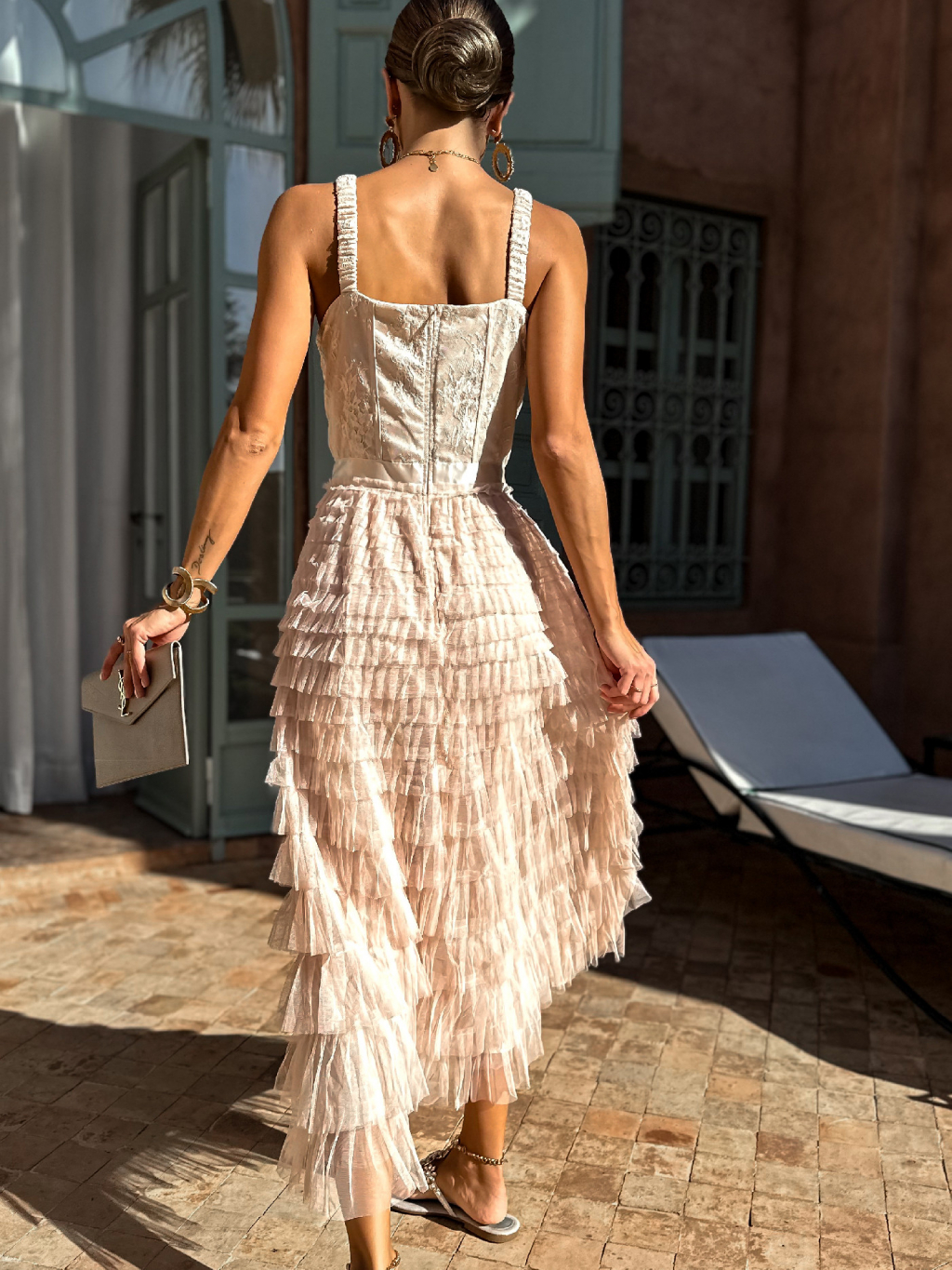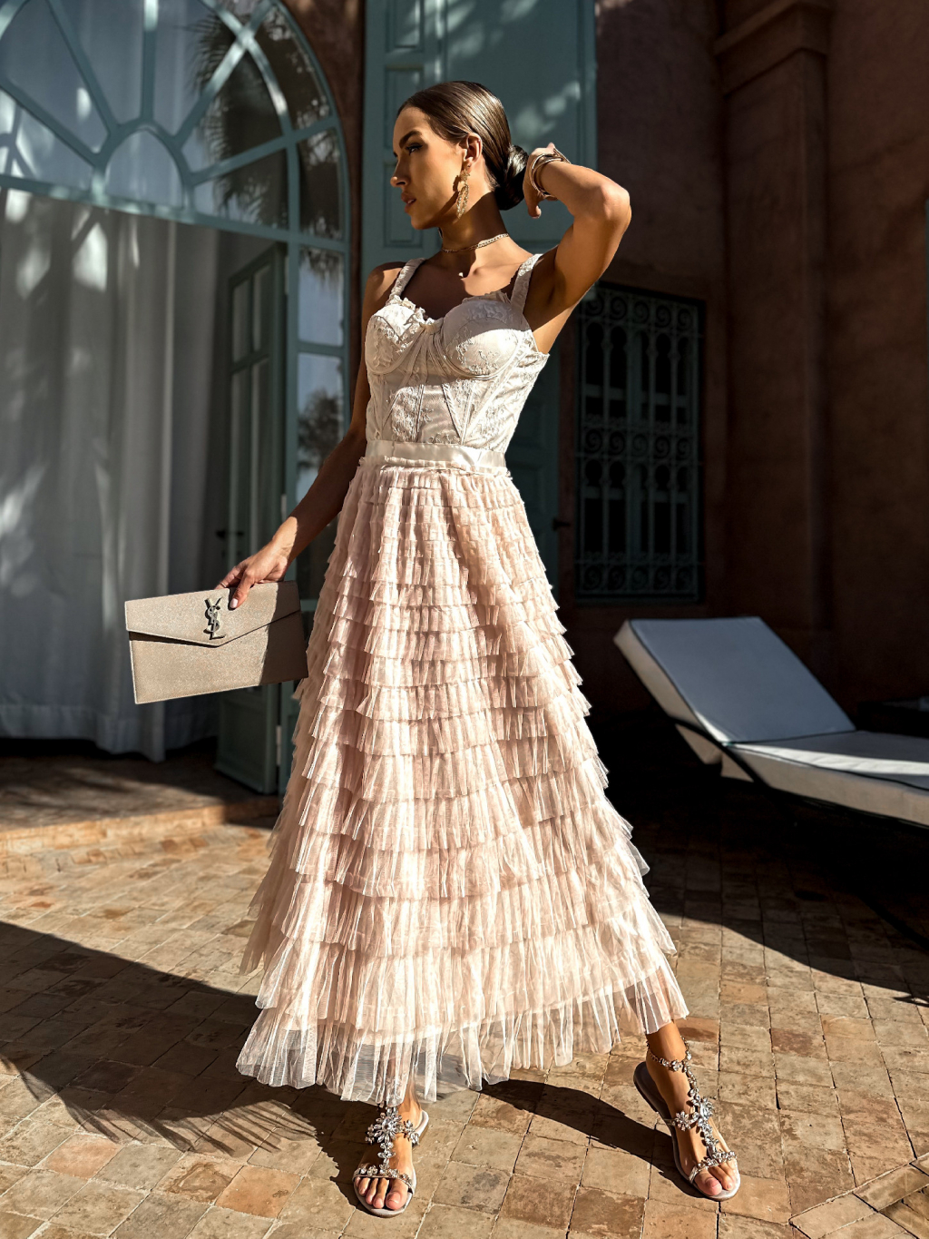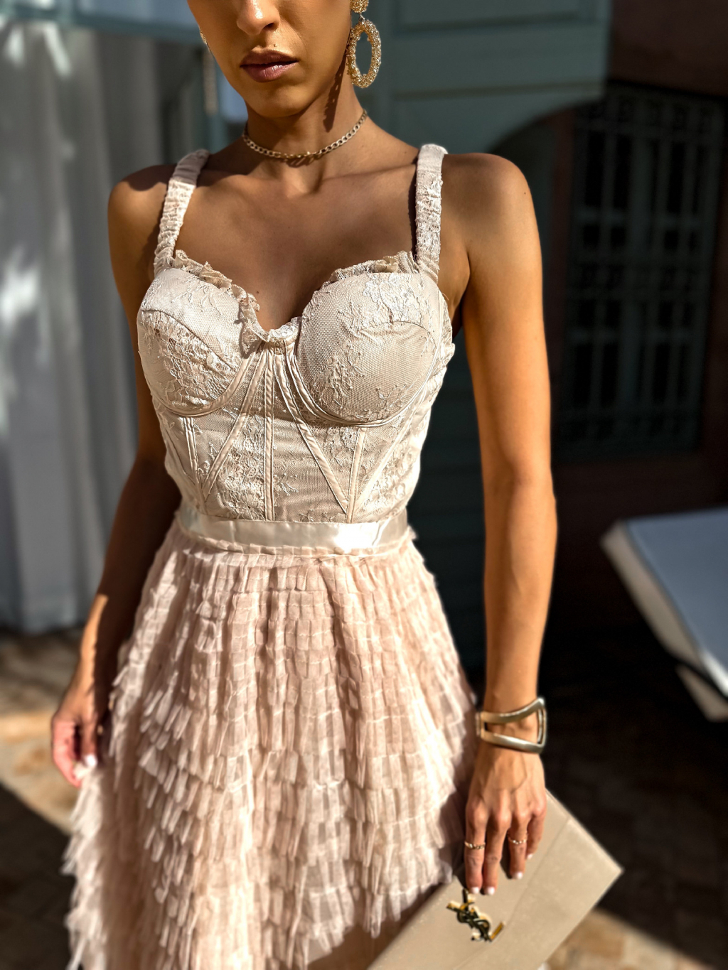 Krémové korzetové šaty DADASE s tylovou sukní