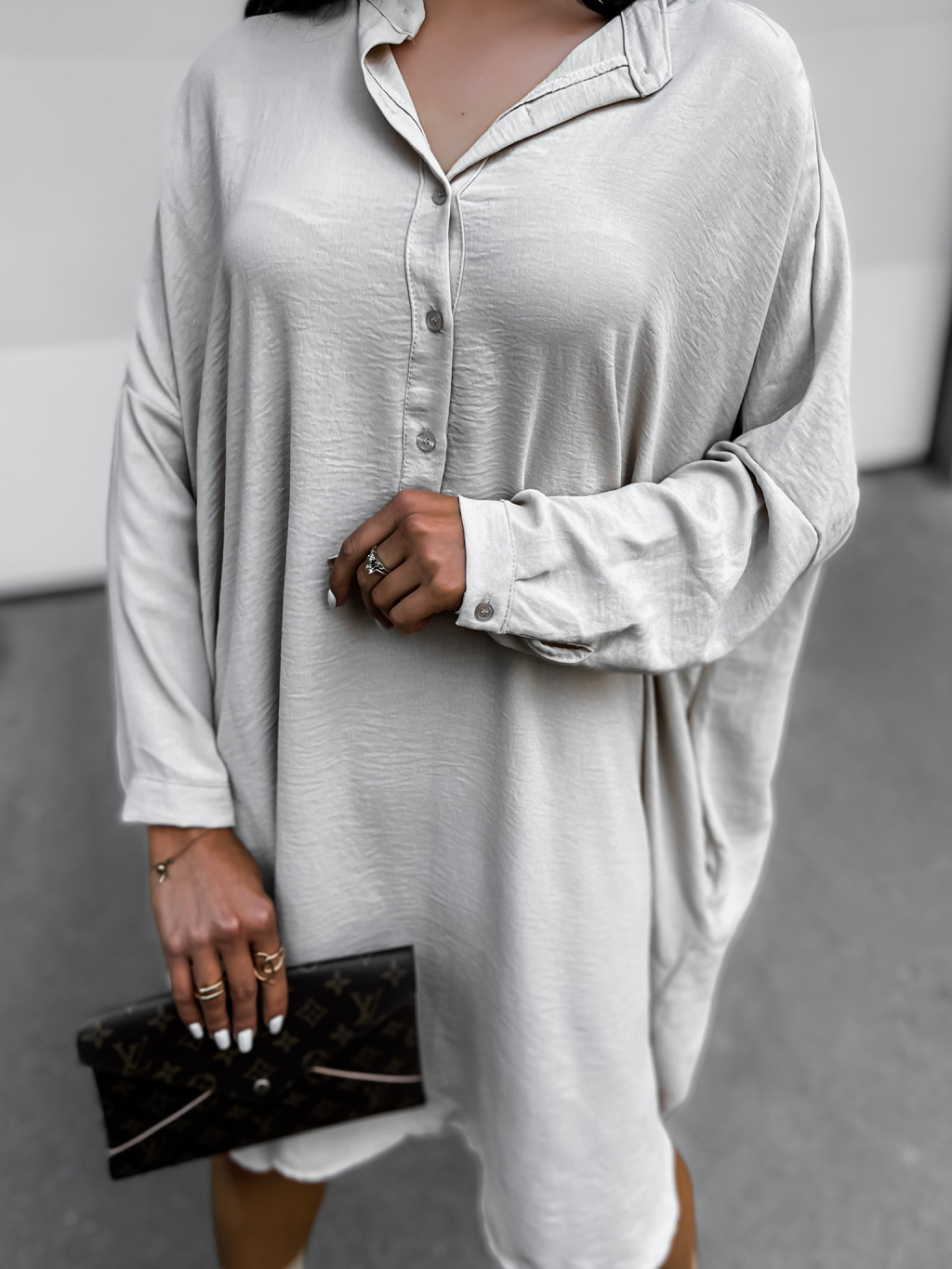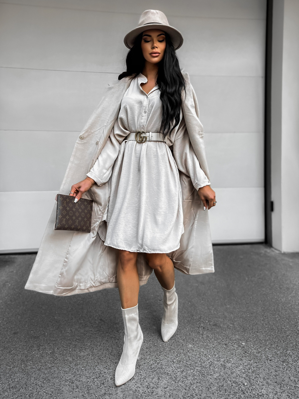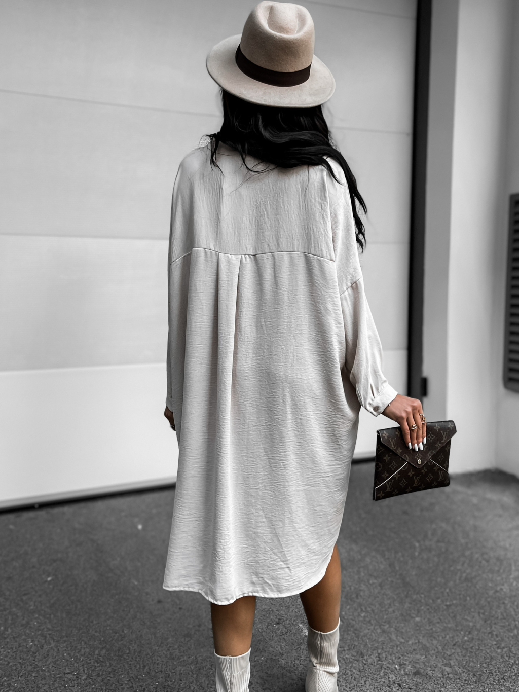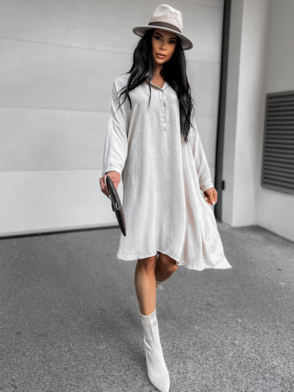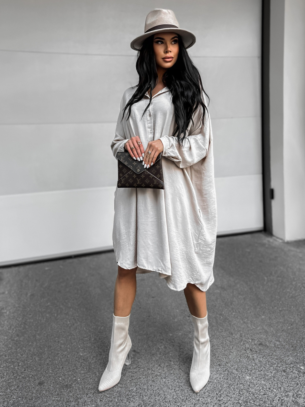 Krémové košilové oversize šaty SYRLEI s knoflíky