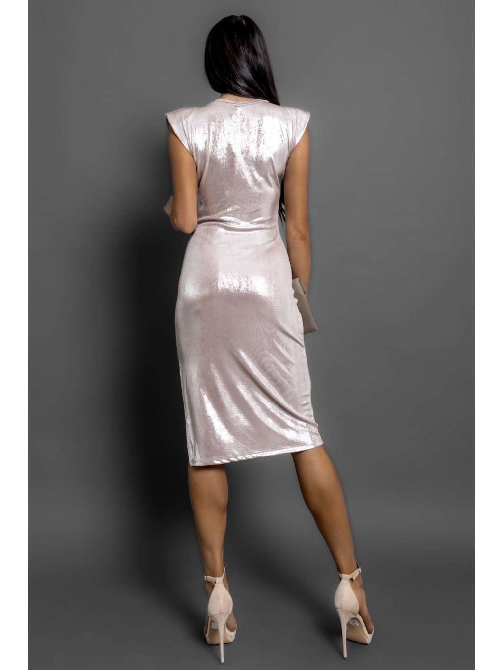 Krémové metalické elegantní šaty PAFOS s rozparkem