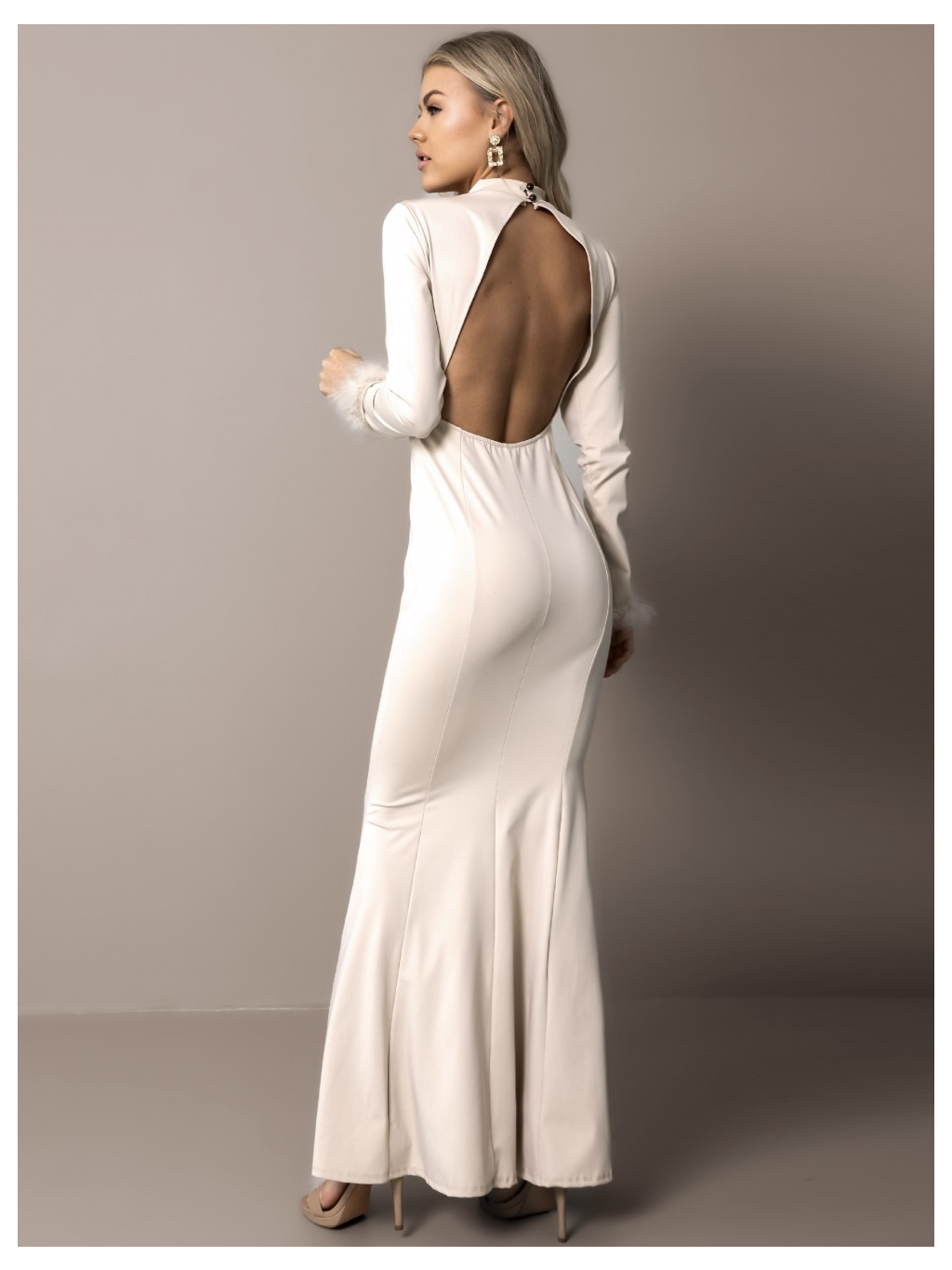 Krémové společenské šaty ECHIDNA s dlouhým rukávem