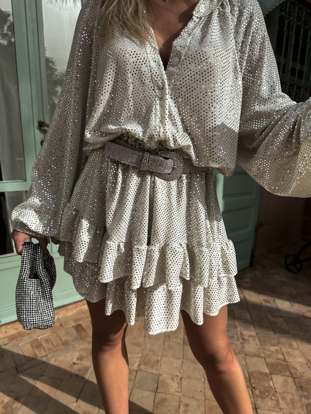 Krémové třpytivé šaty JUOZA uvnitř kraťasy