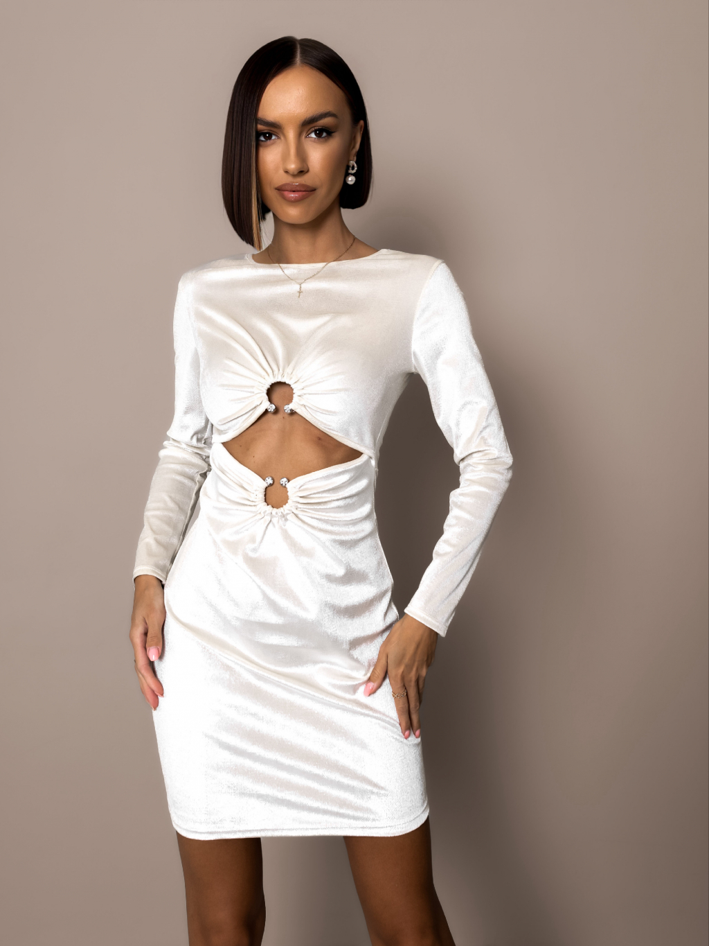 Krémovozlaté sametové šaty CENTROP s průstřihy