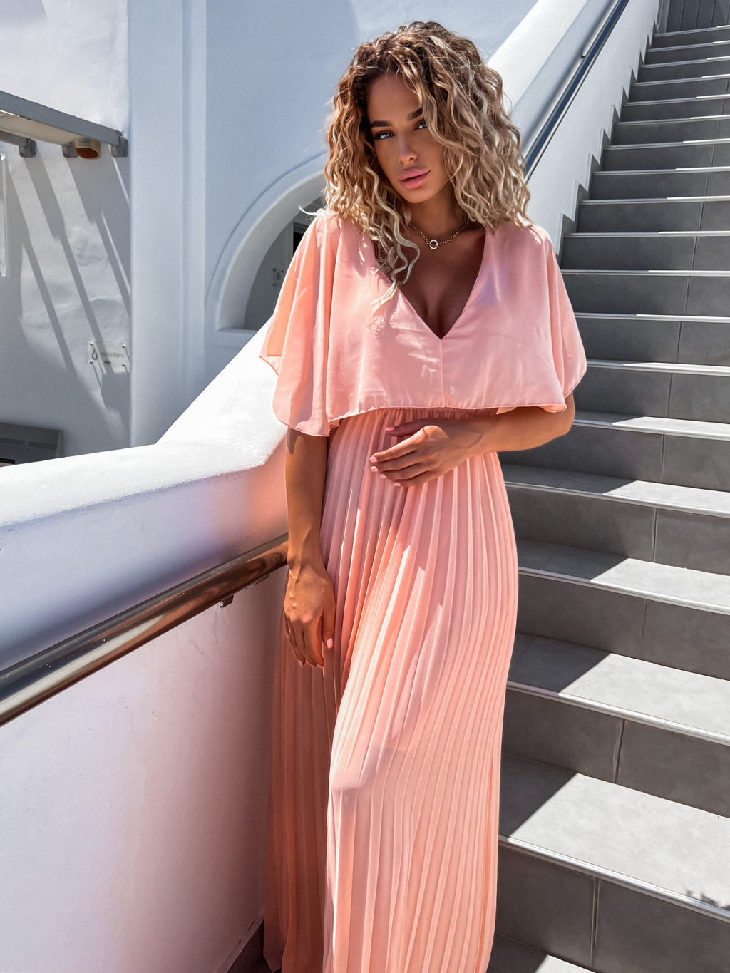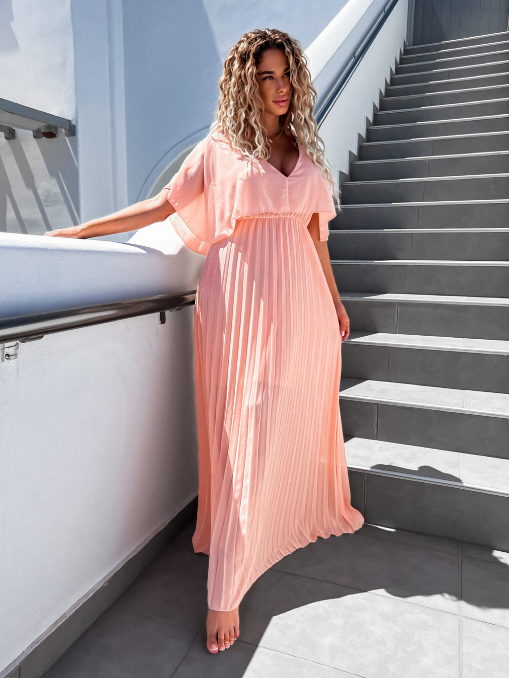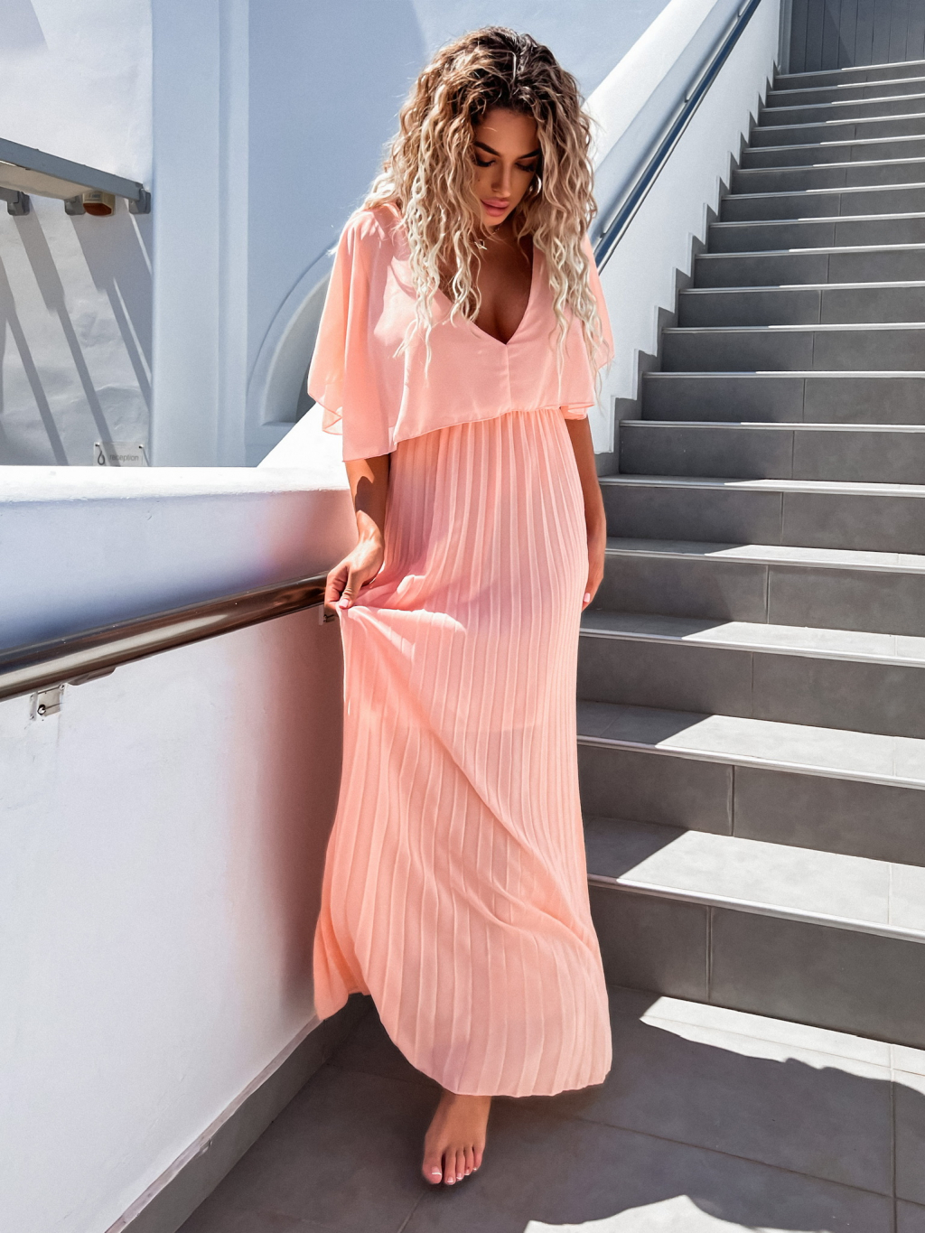 Lososové elegantní šaty PARFOMELLE s výsřihem do V