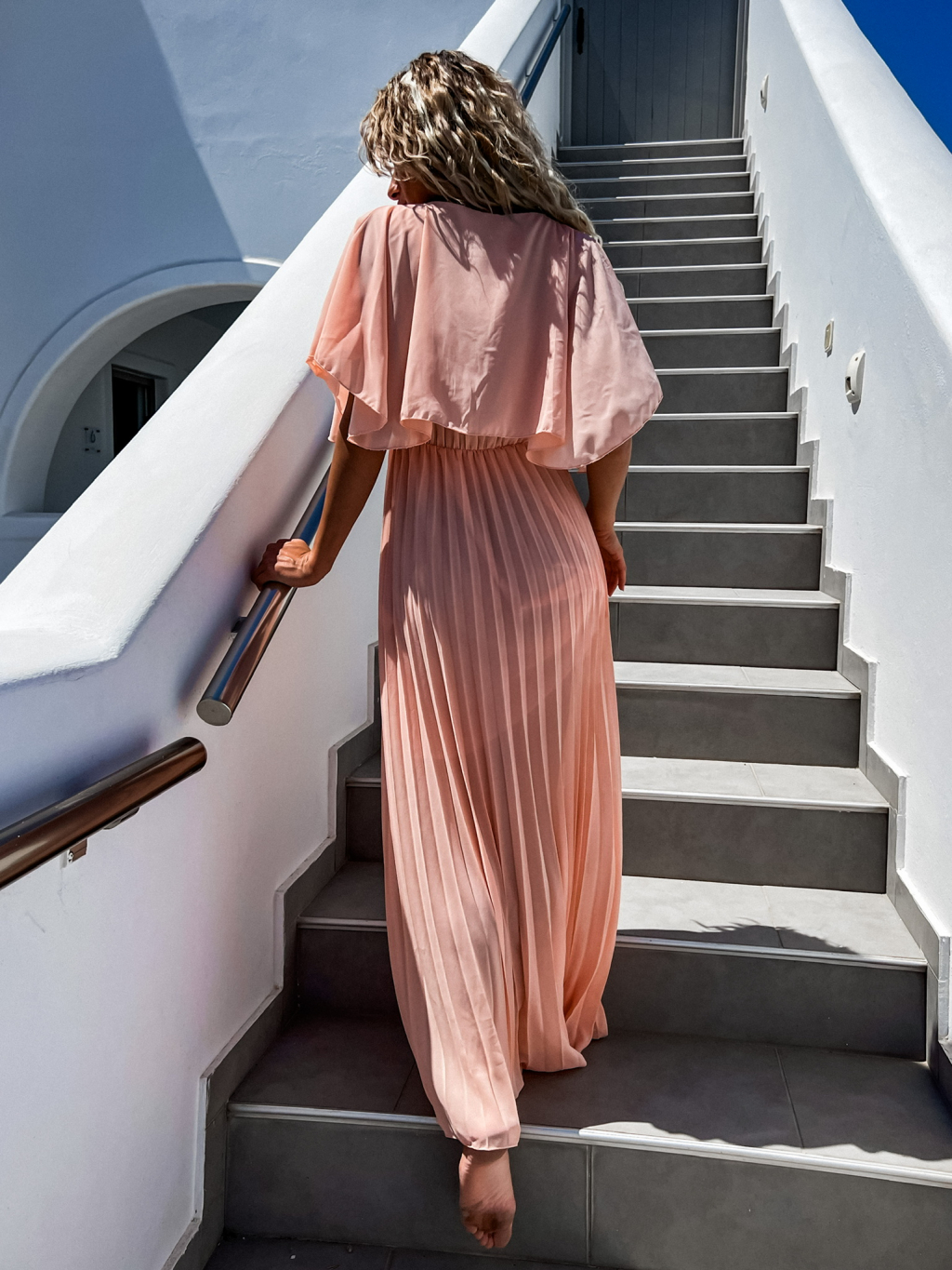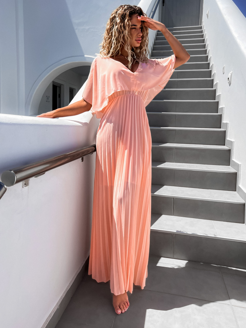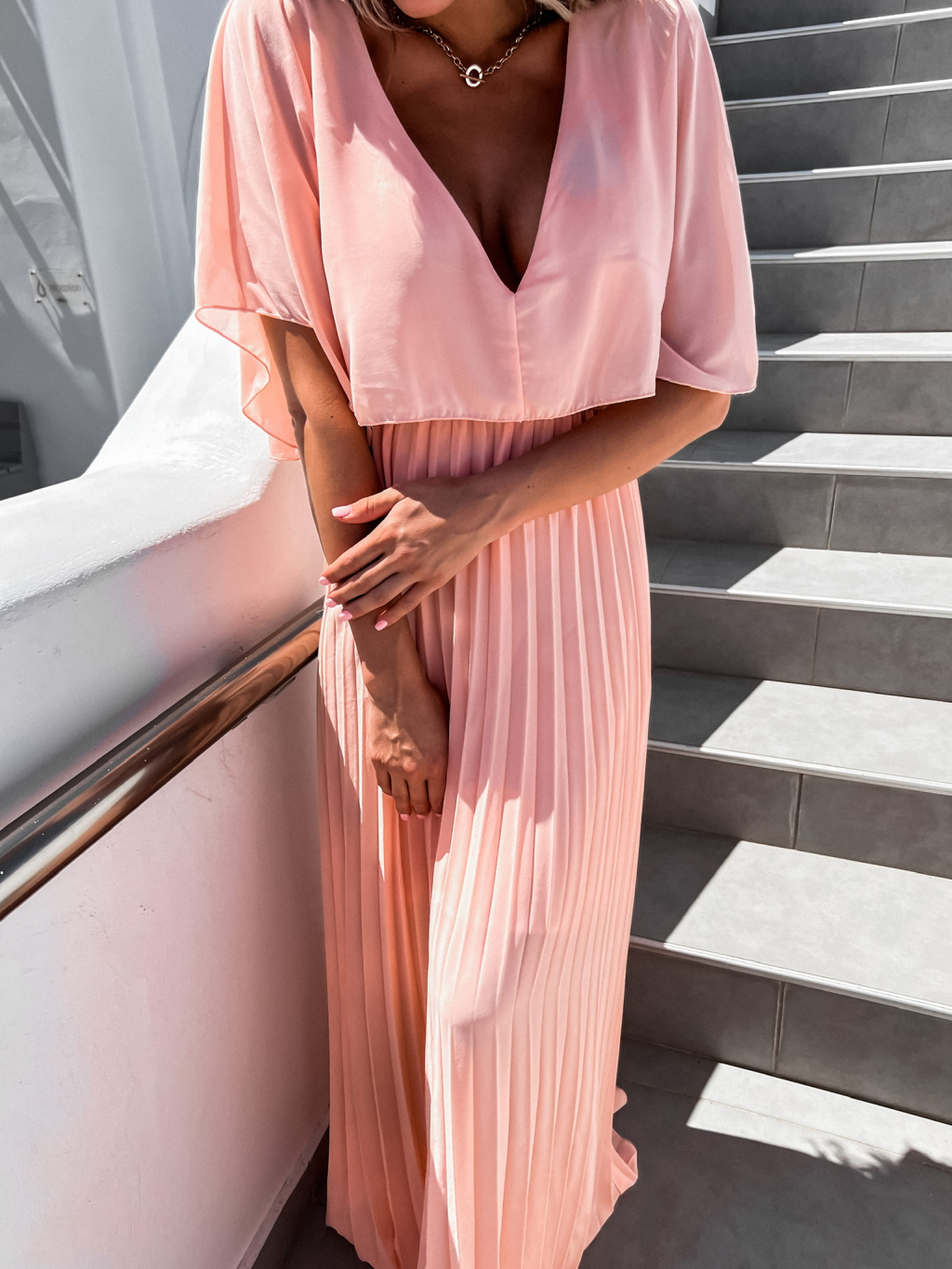Lososové elegantní šaty PARFOMELLE s výsřihem do V