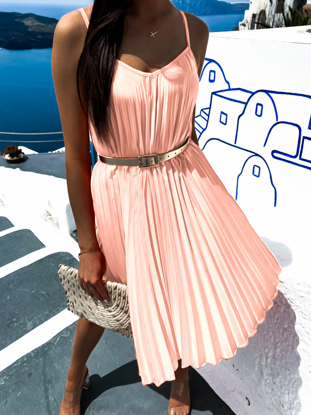 Lososové lesklé plisované šaty CLAURA se zlatým páskem