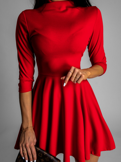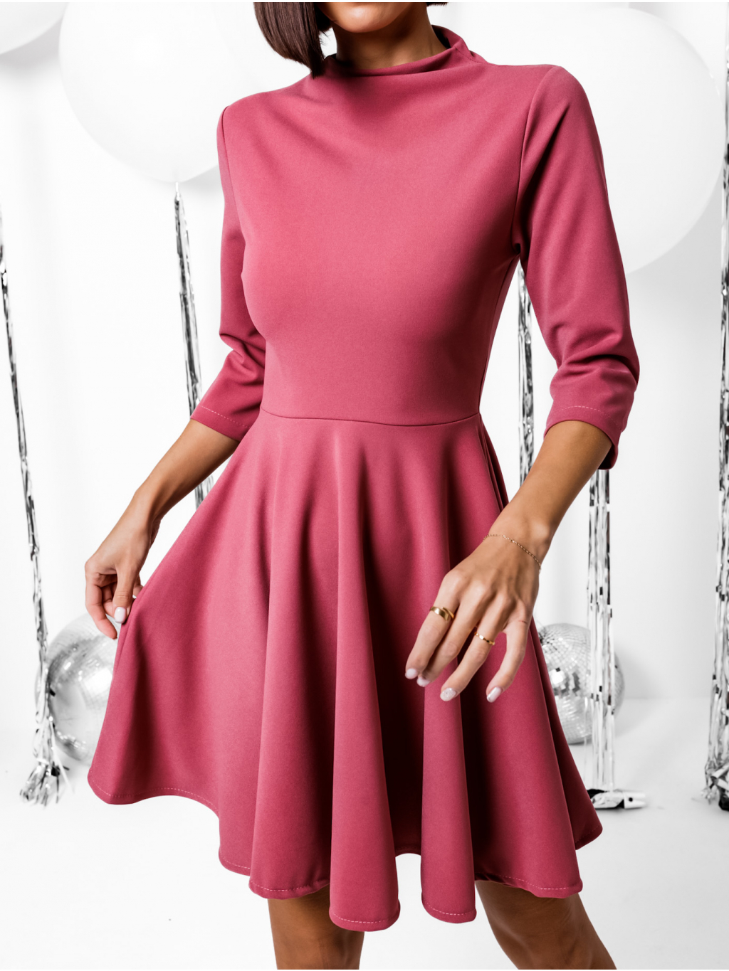 Malinové elegantní šaty GROUND s dlouhým rukávem