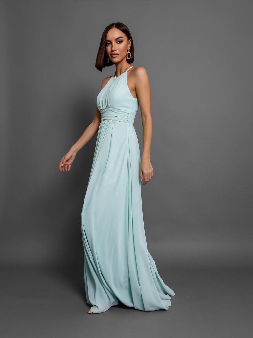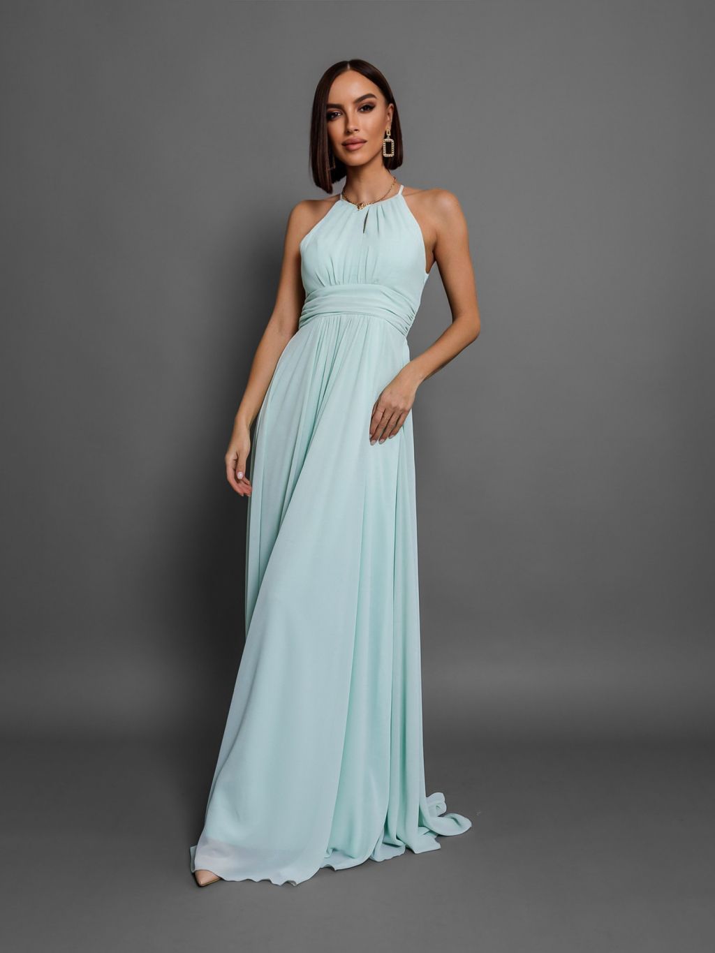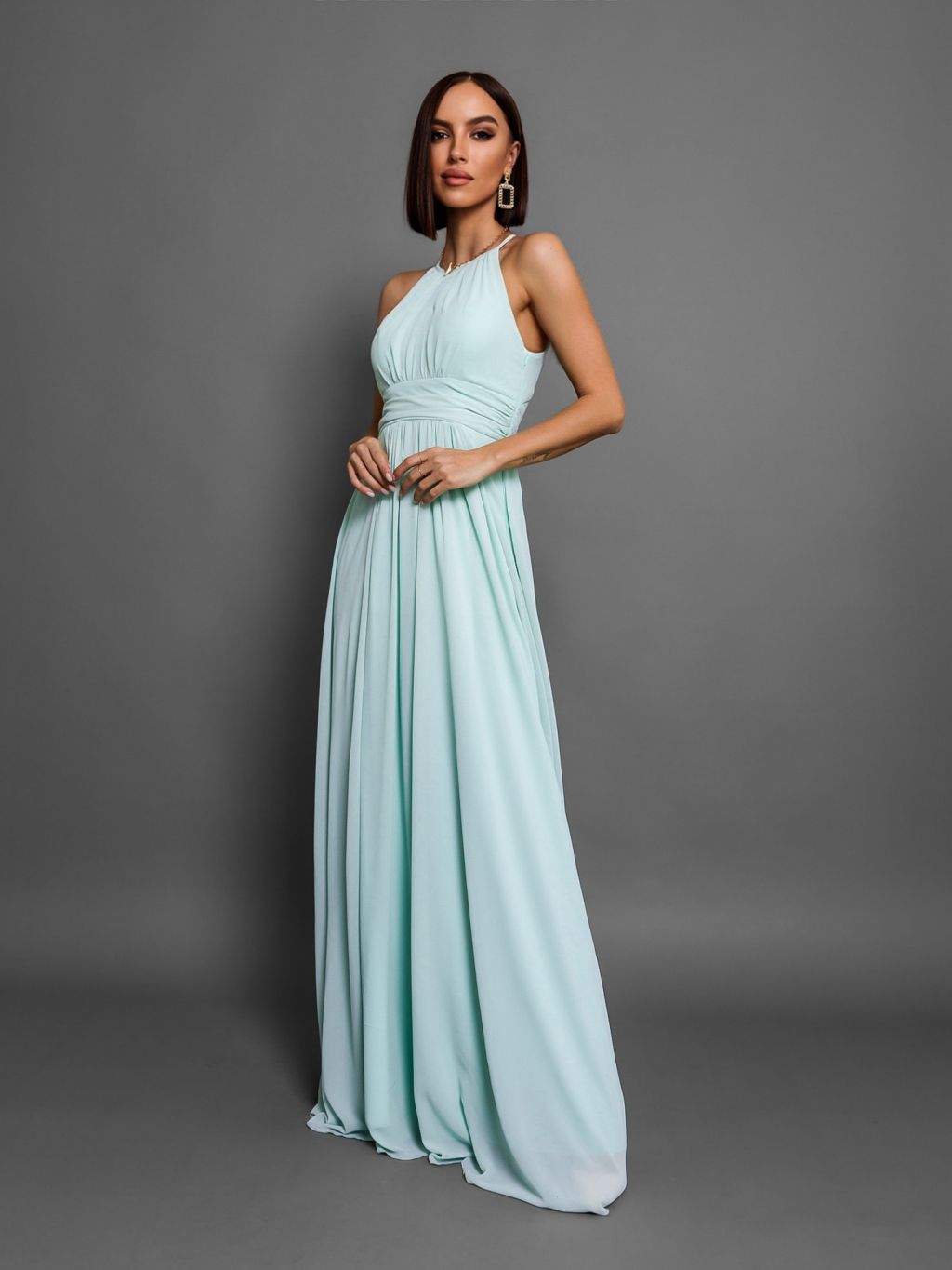 Mentolové dlouhé plesové šaty ADASA
