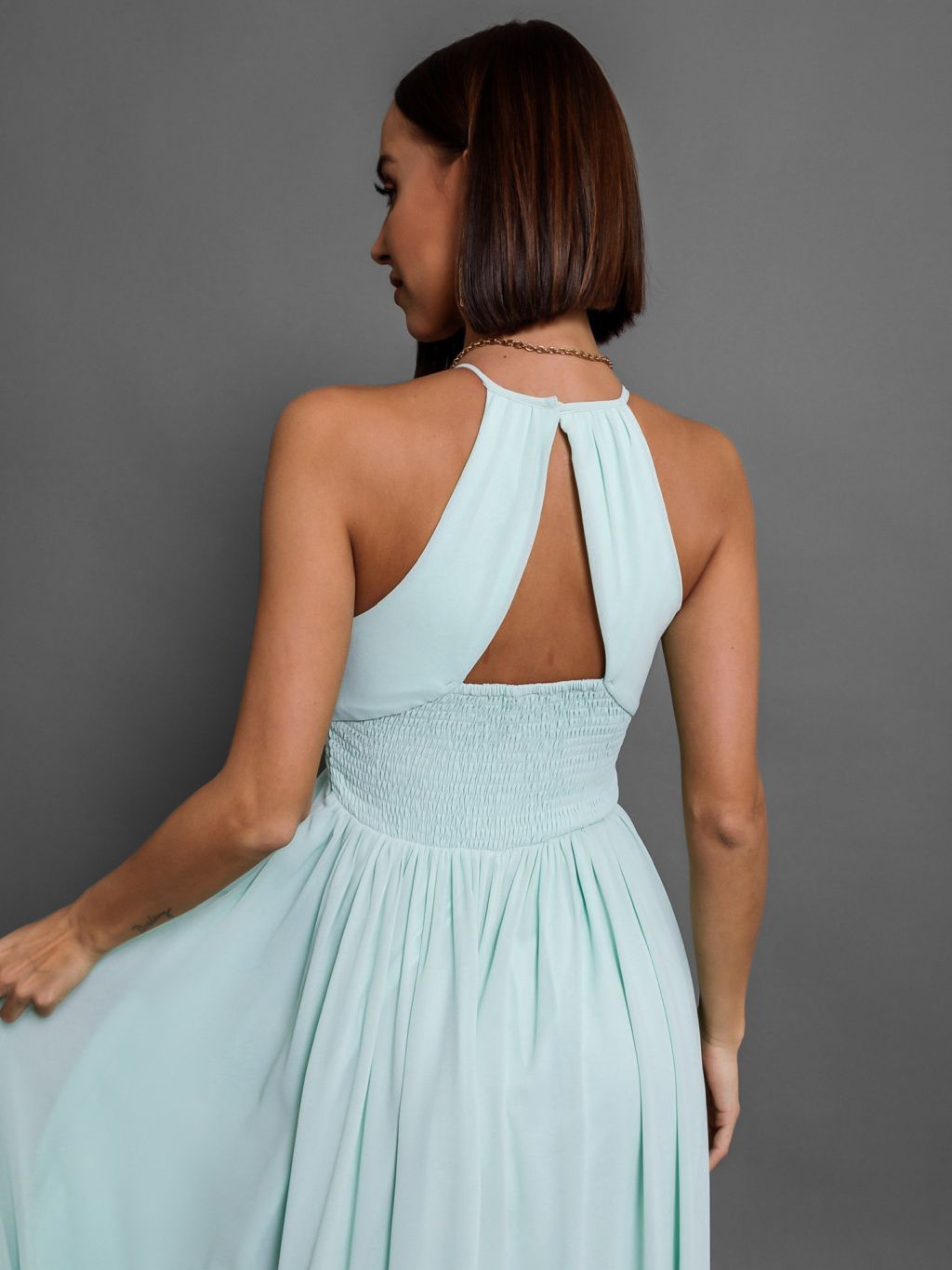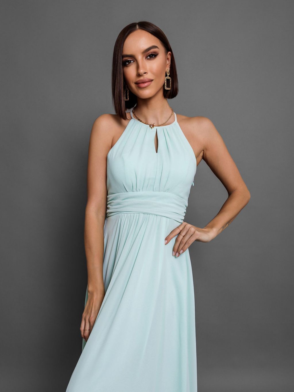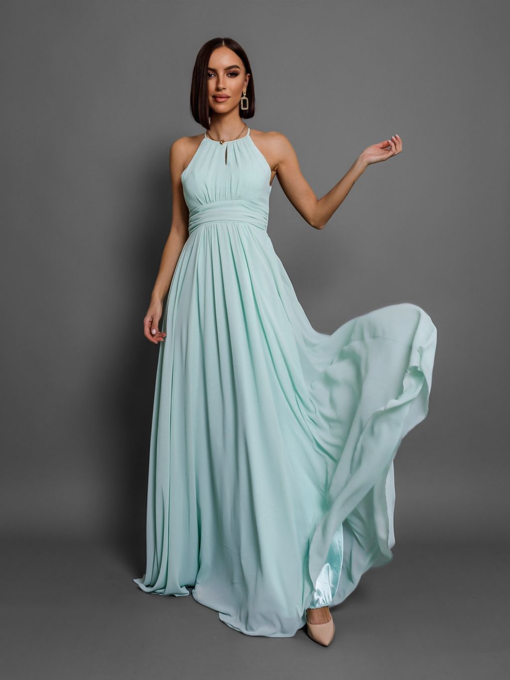 Mentolové dlouhé plesové šaty ADASA