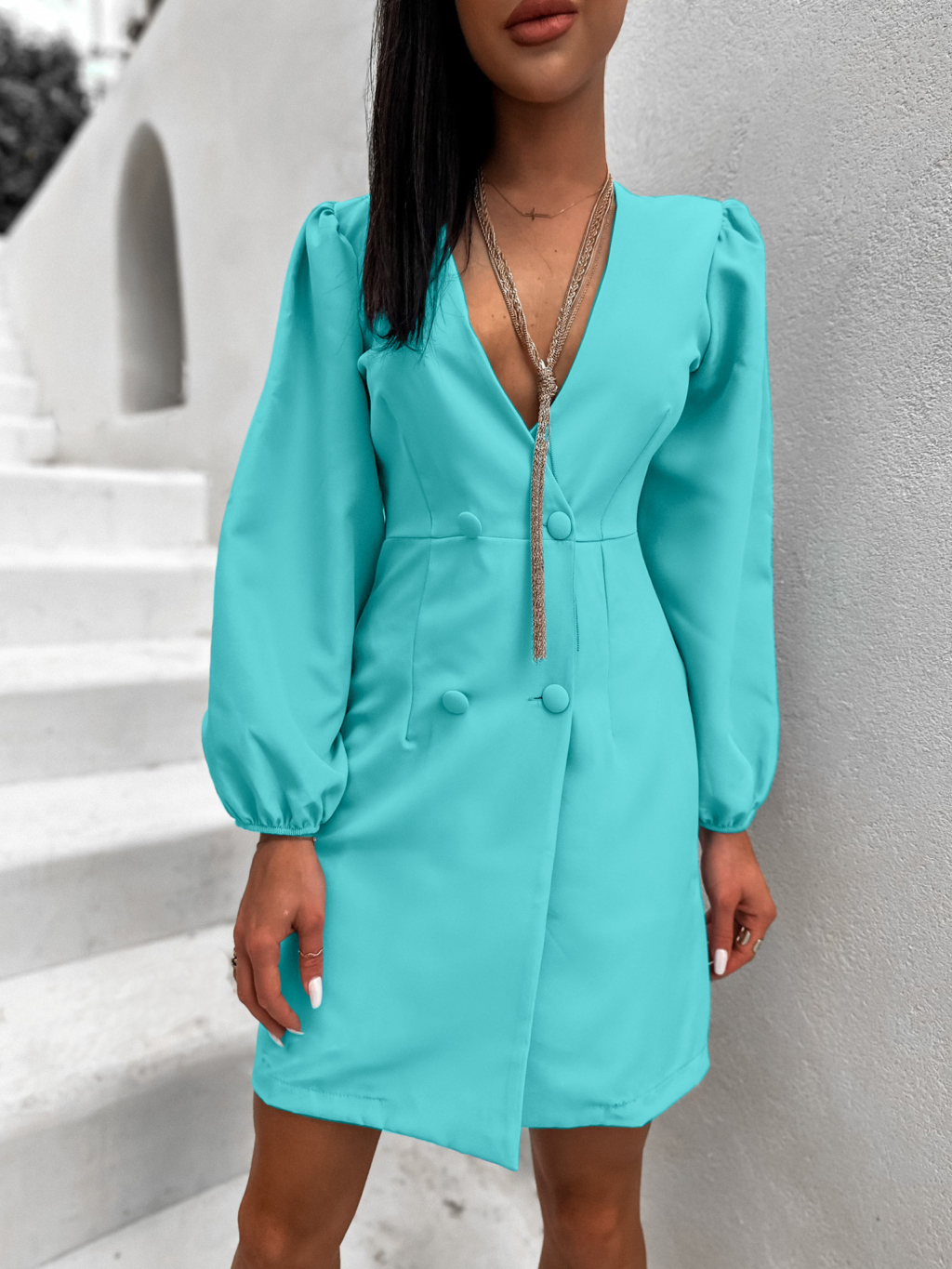 Mentolové sakové šaty RELLIE s výstřihem do V