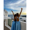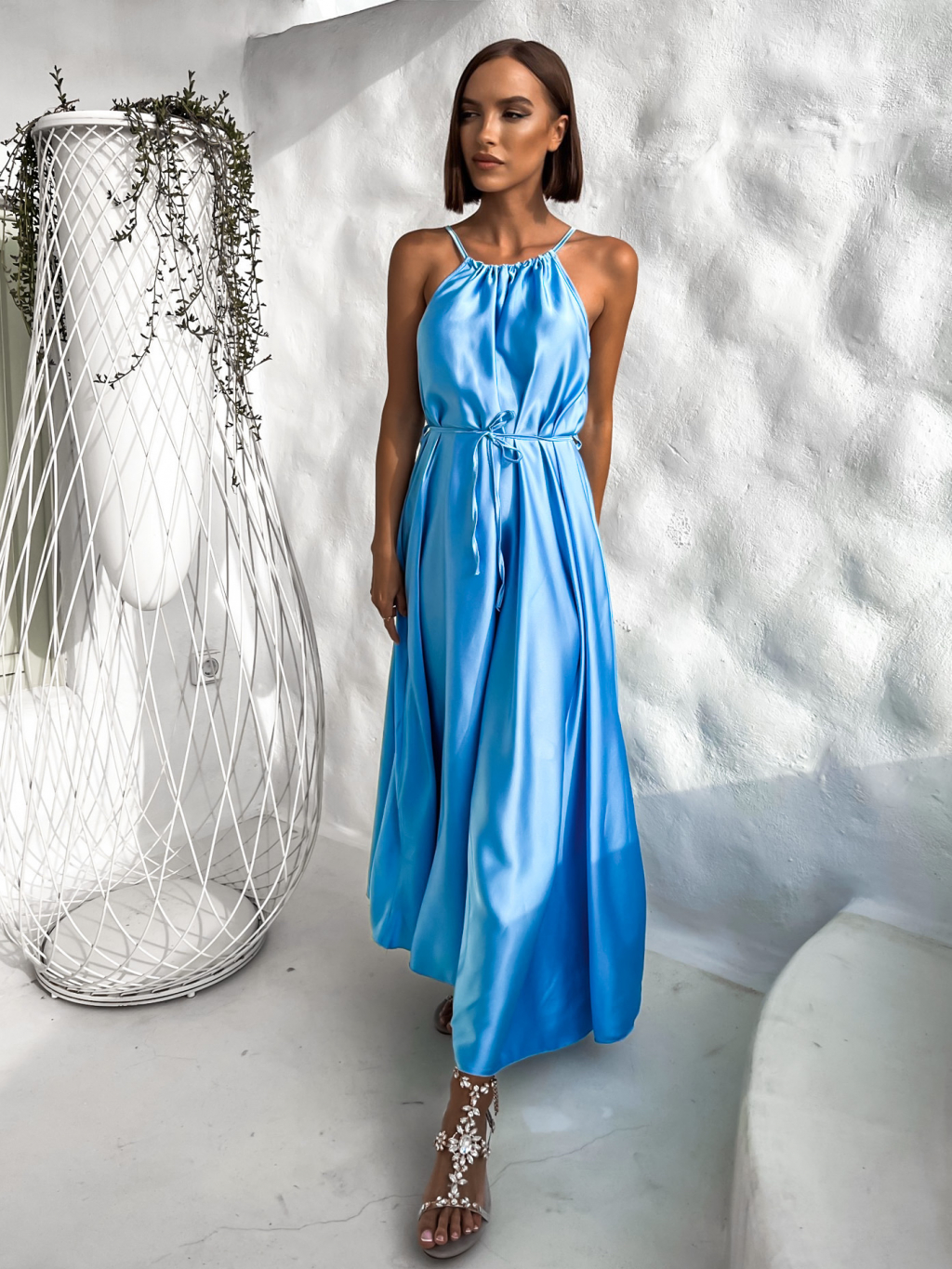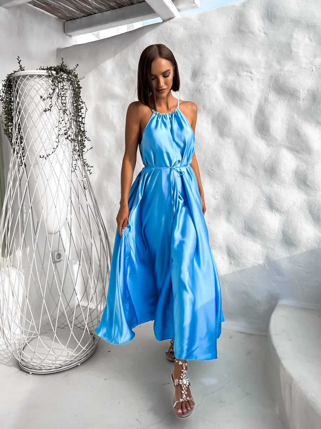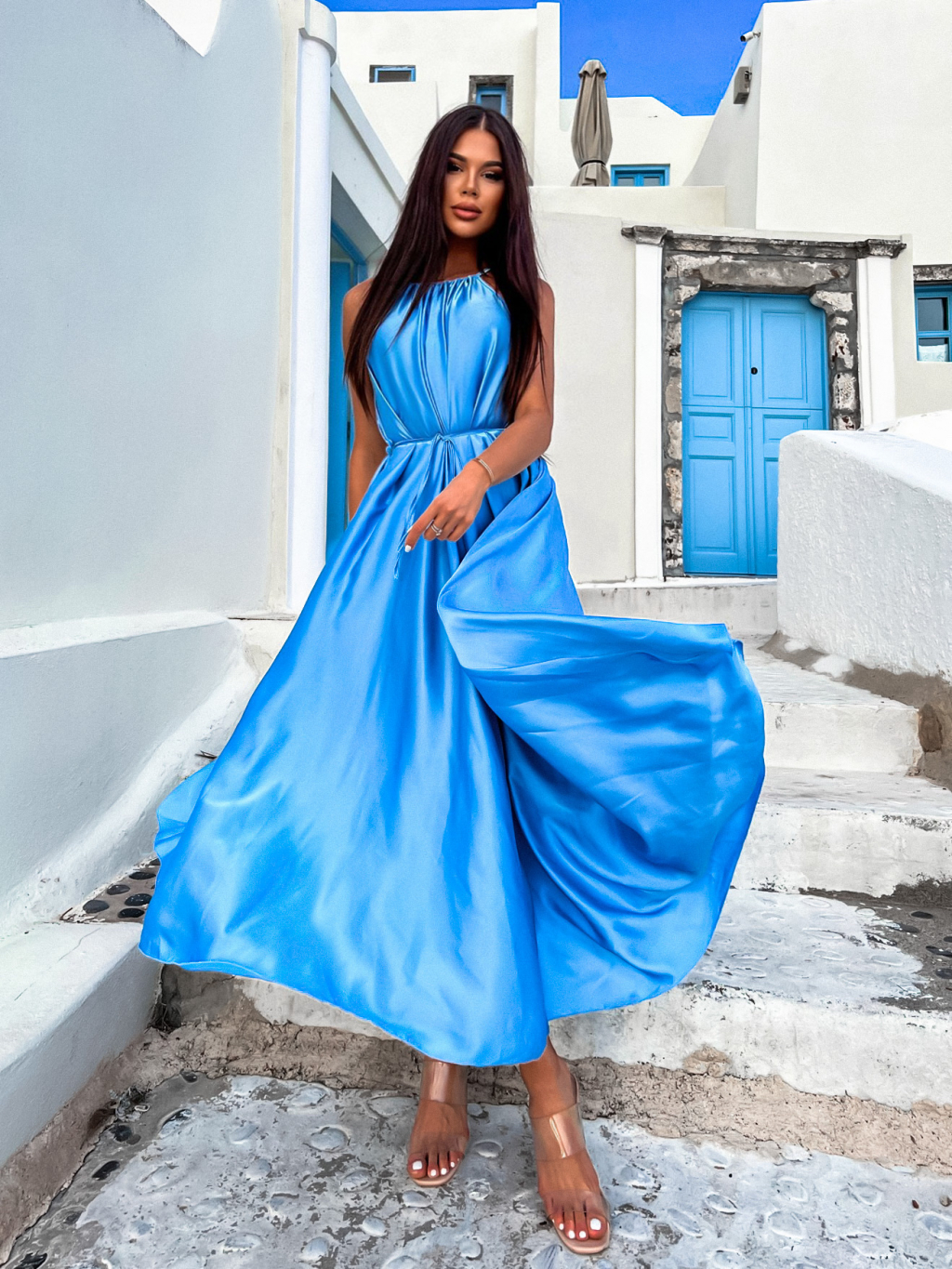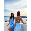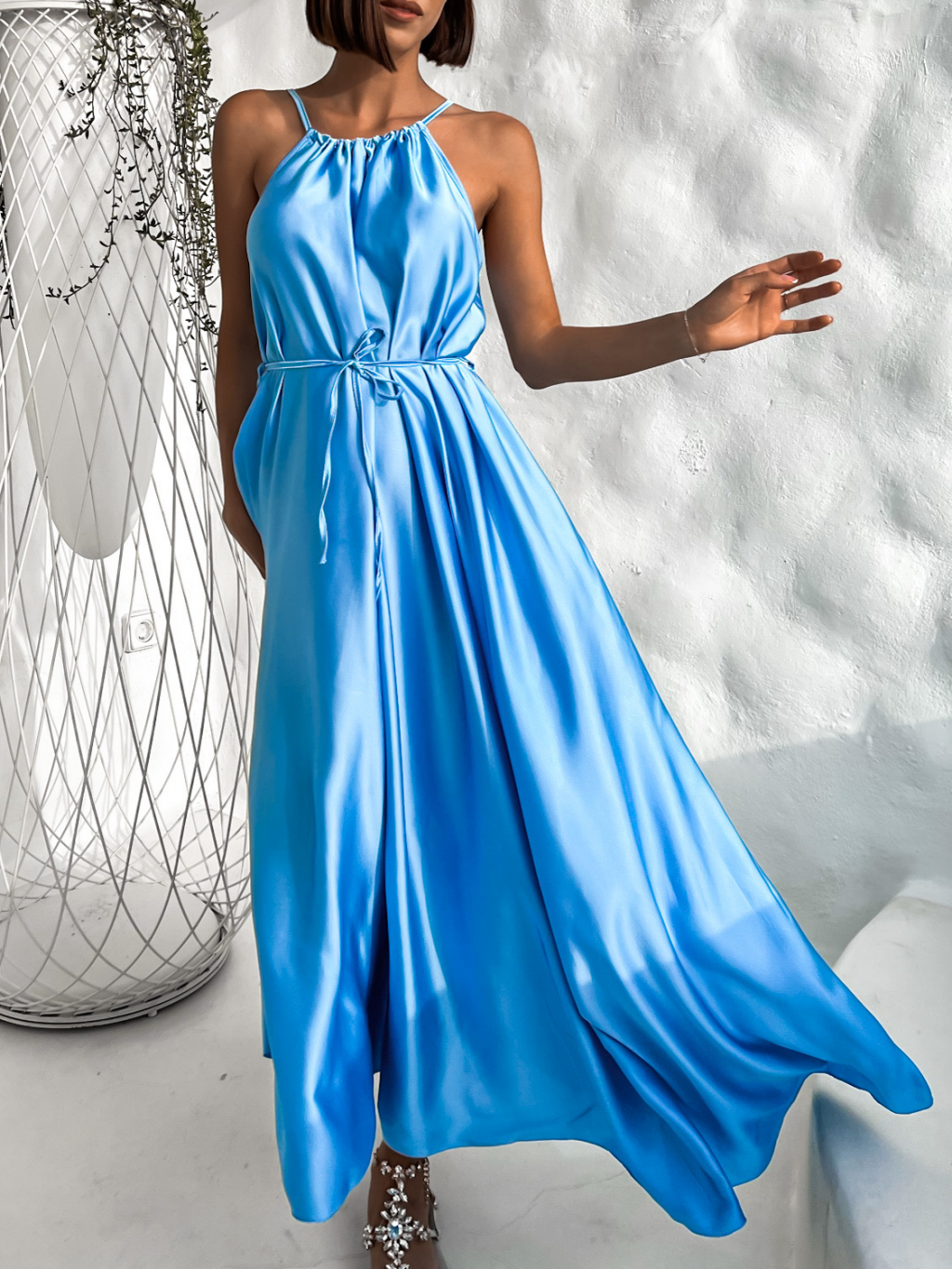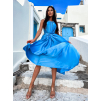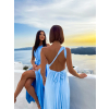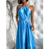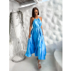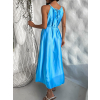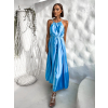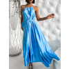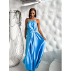 Modré dlouhé lesklé elegantní šaty MADES se zavazováním