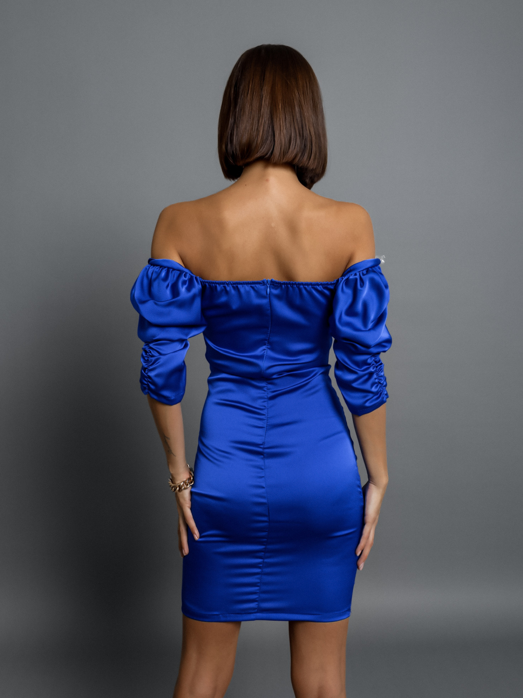 Modré lesklé šaty BUACLY s řasenými rukávy