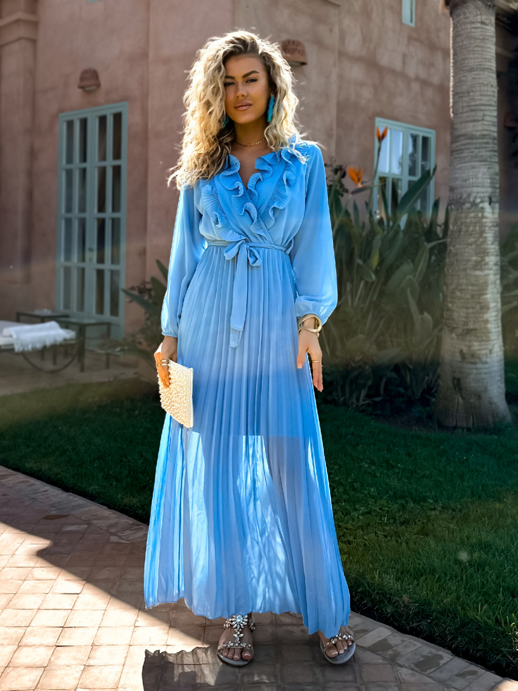 Modré plisované dlouhé šaty HARVEYS s výstřihem