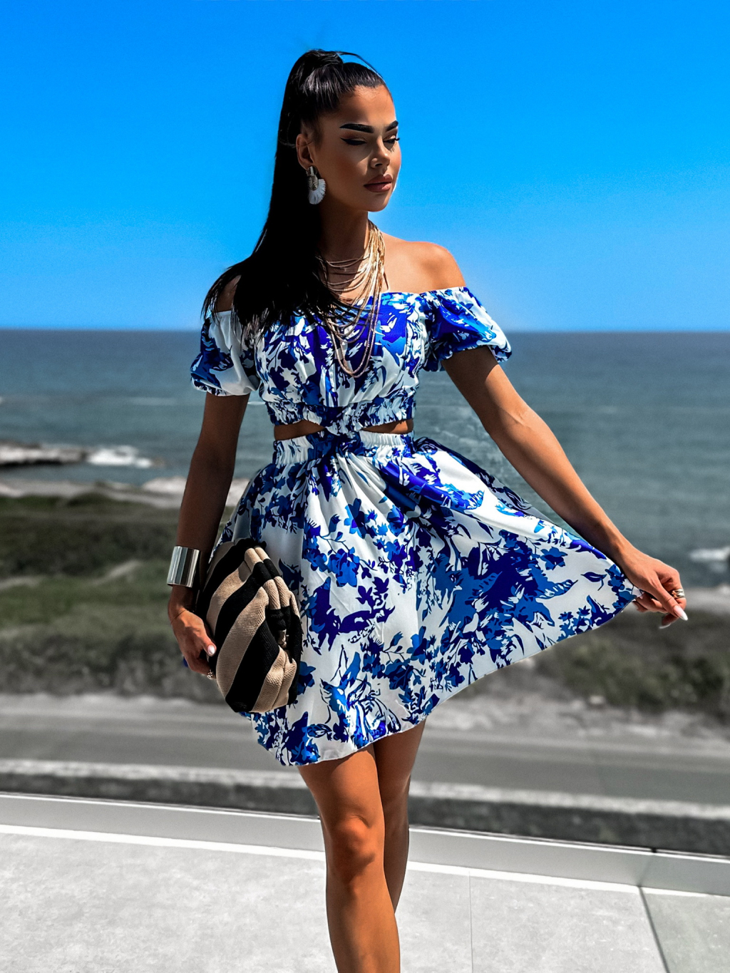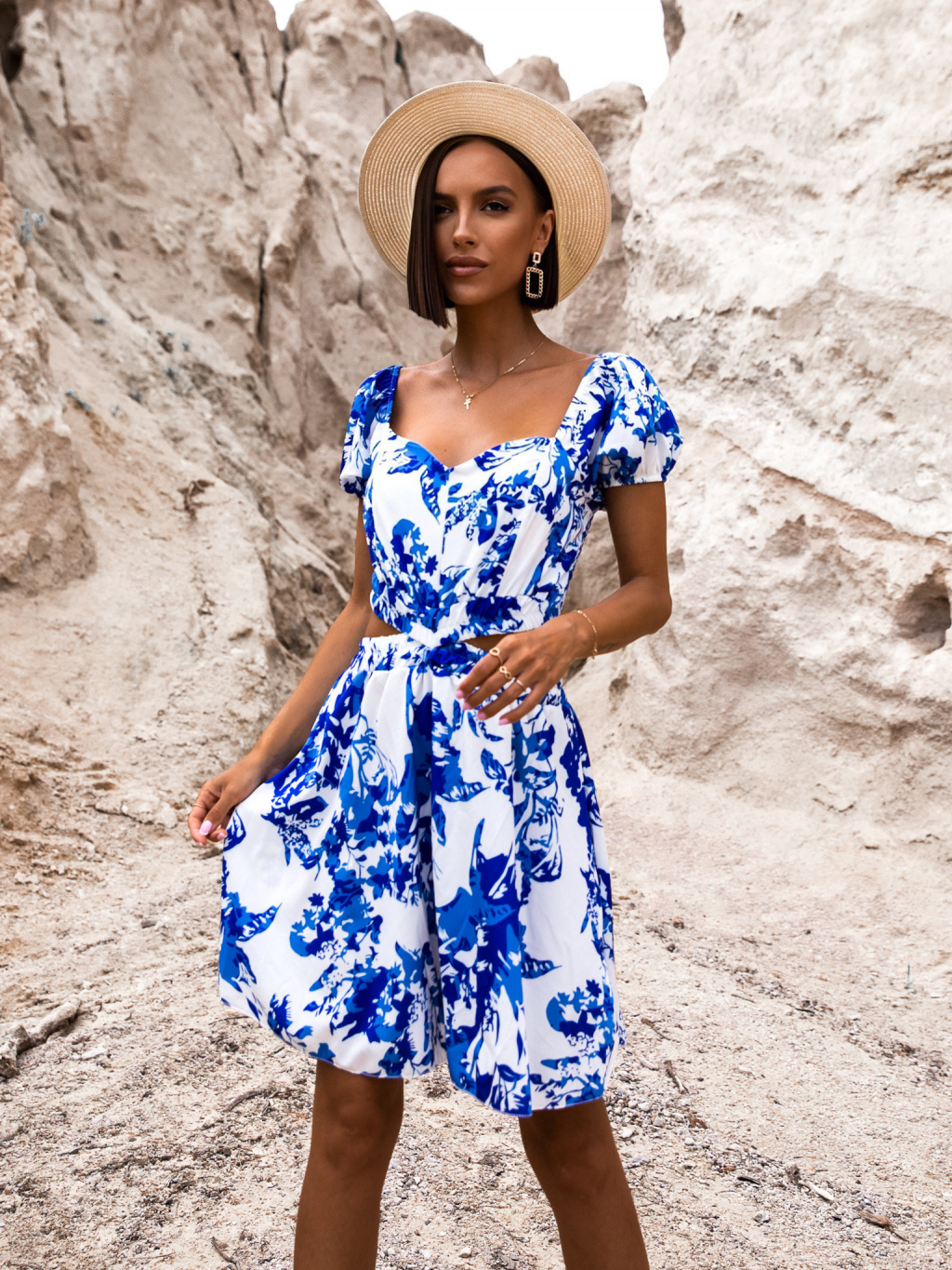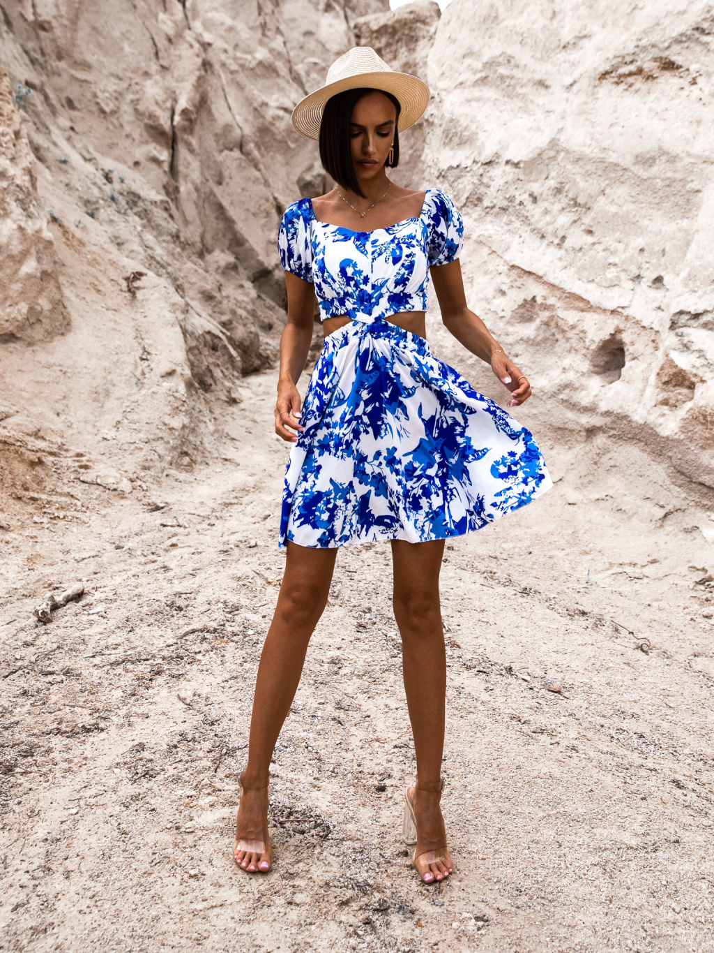 Modrobílé elegantní šaty FISTOL s průstřihy
