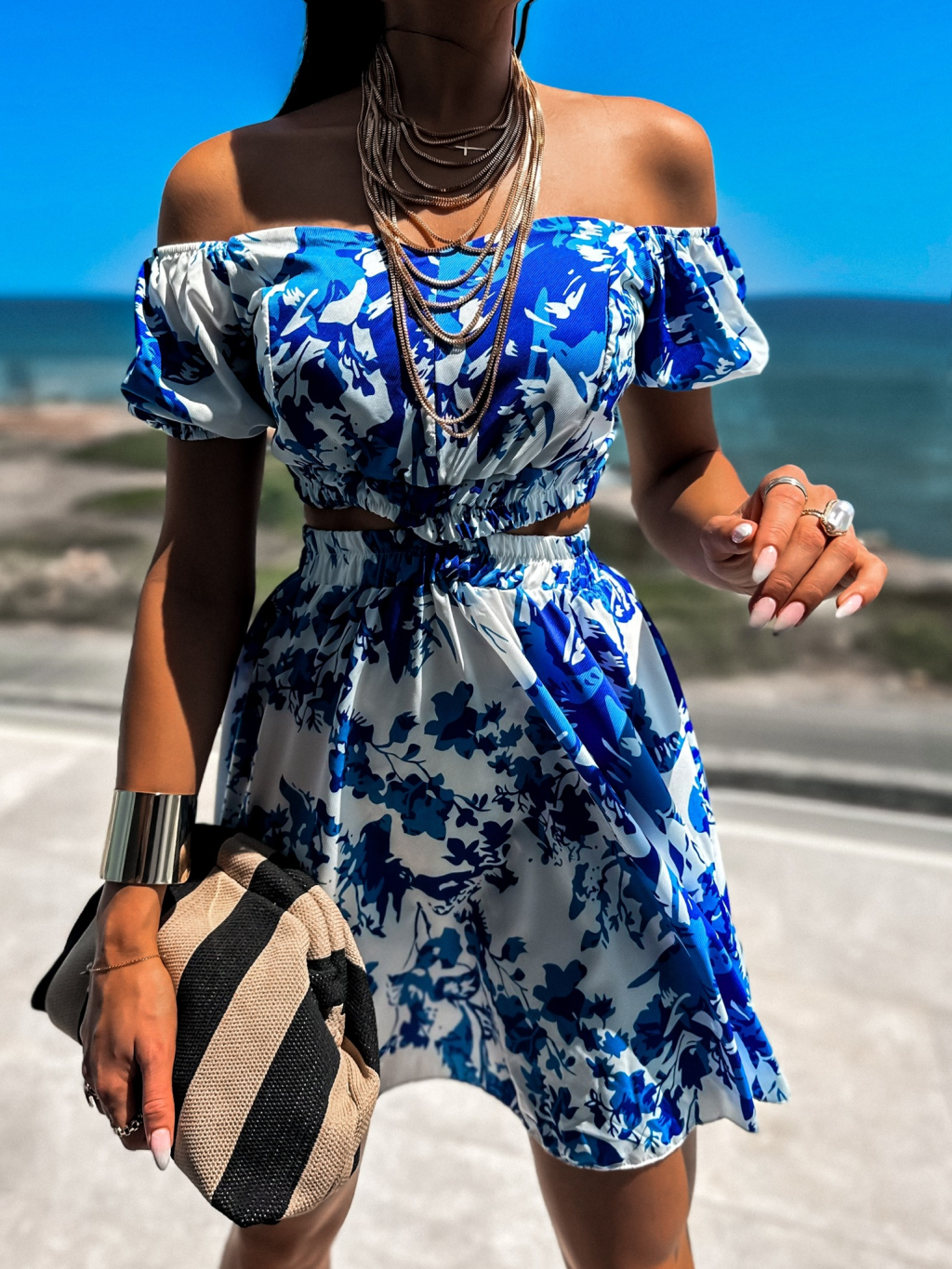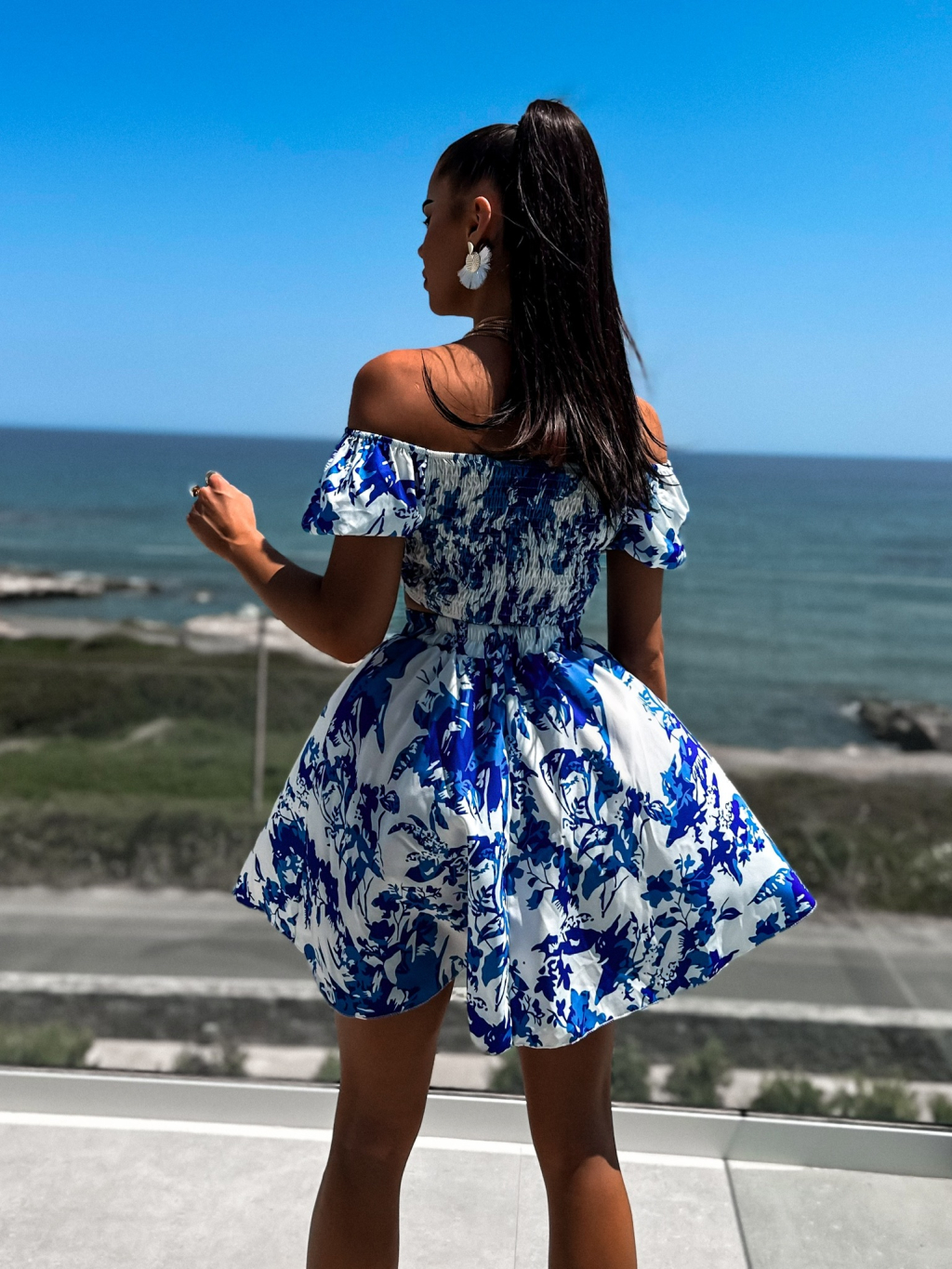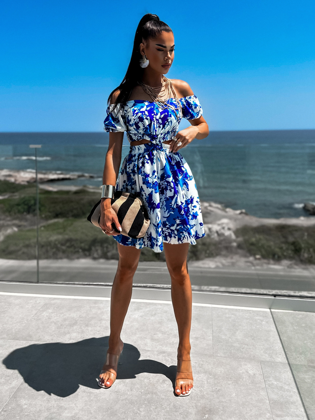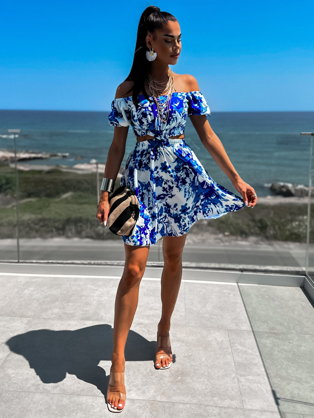 Modrobílé elegantní šaty FISTOL s průstřihy