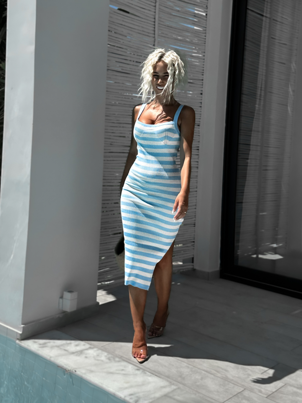 Modrobílé šaty FLEN s pruhy
