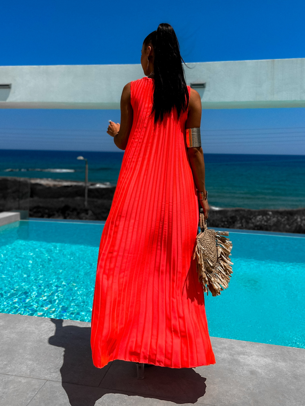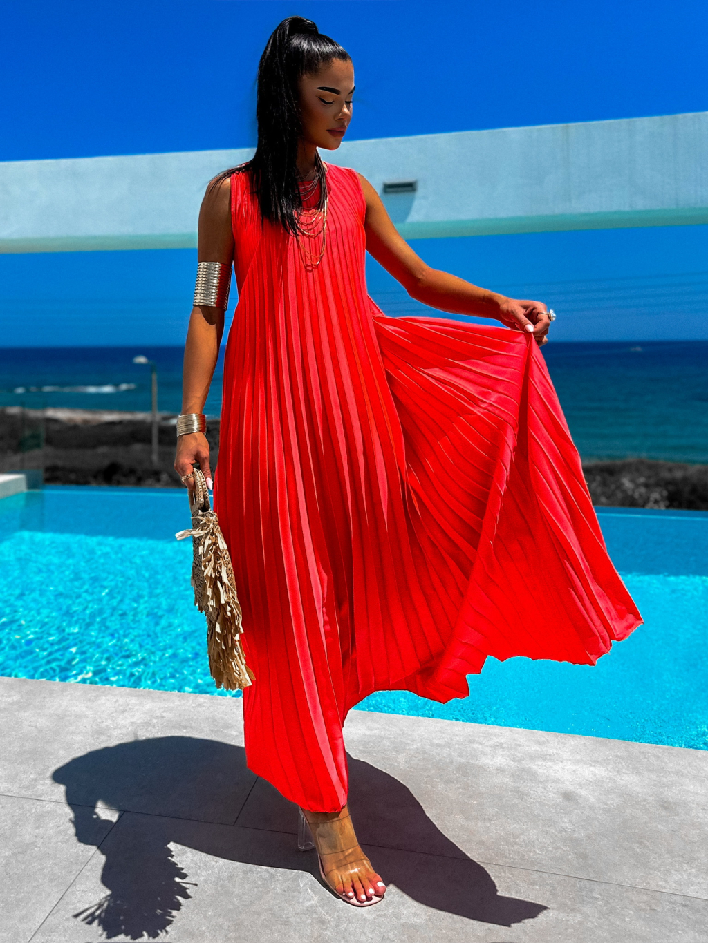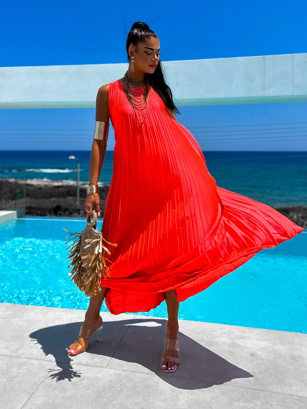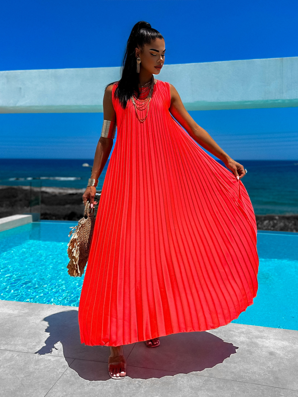 Neon červené dlouhé elegantní šaty WIRELESS