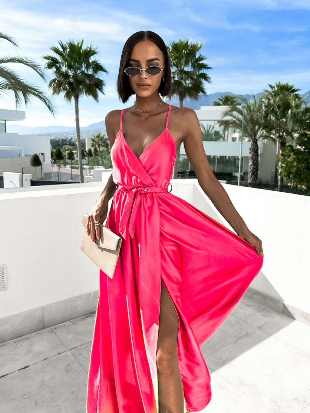 Neon růžové elegantní dlouhé šaty FAIRYTALE