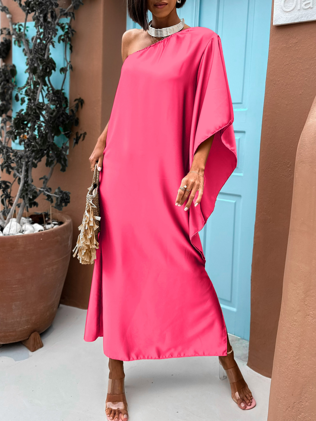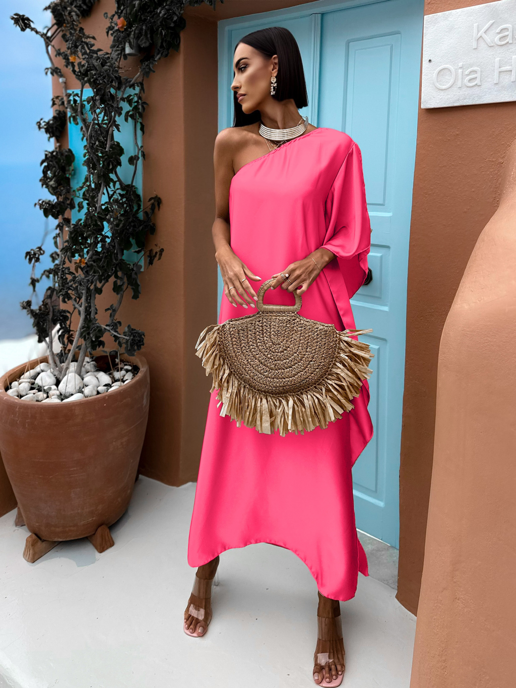 Neon růžové elegantní šaty HUDIESI přes rameno