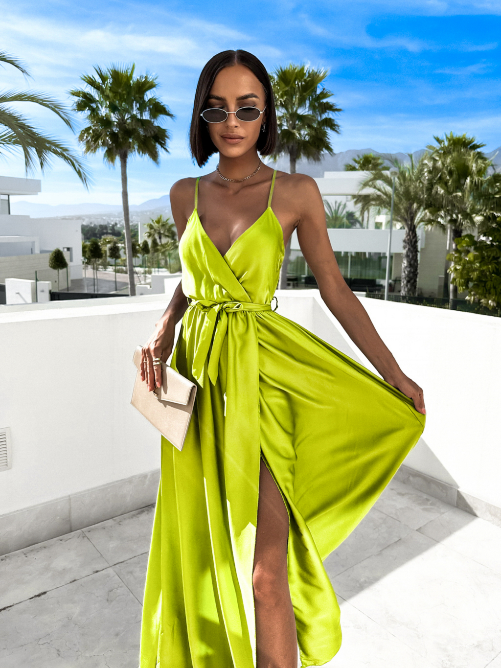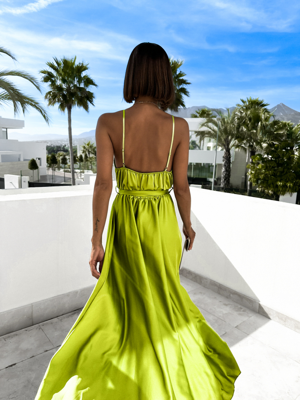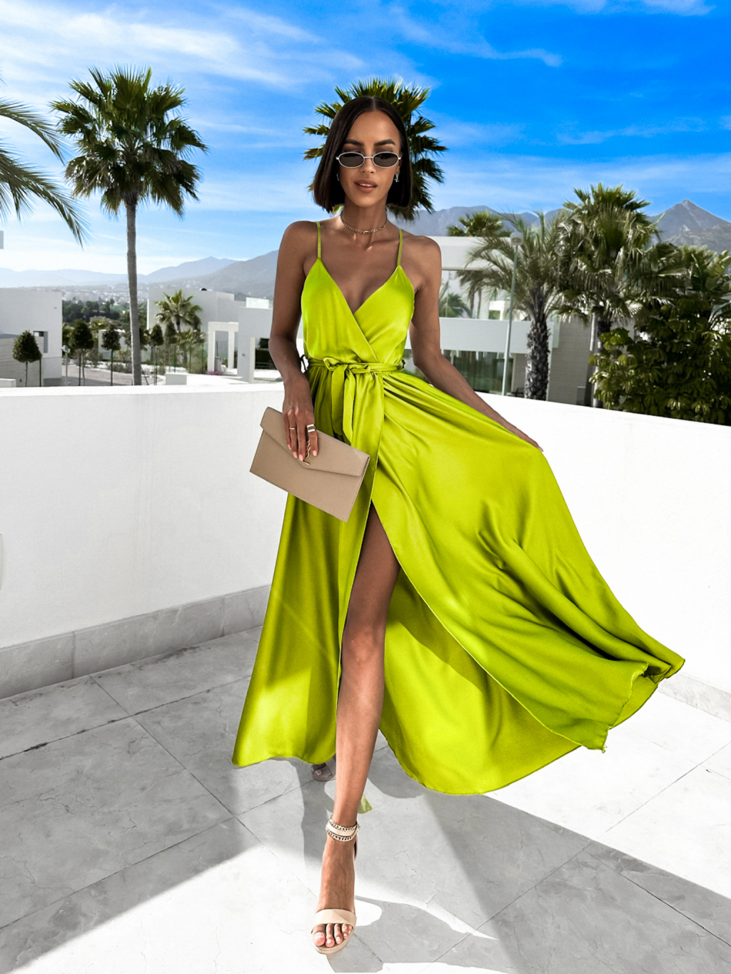 Neon zelené elegantní dlouhé šaty FAIRYTALE