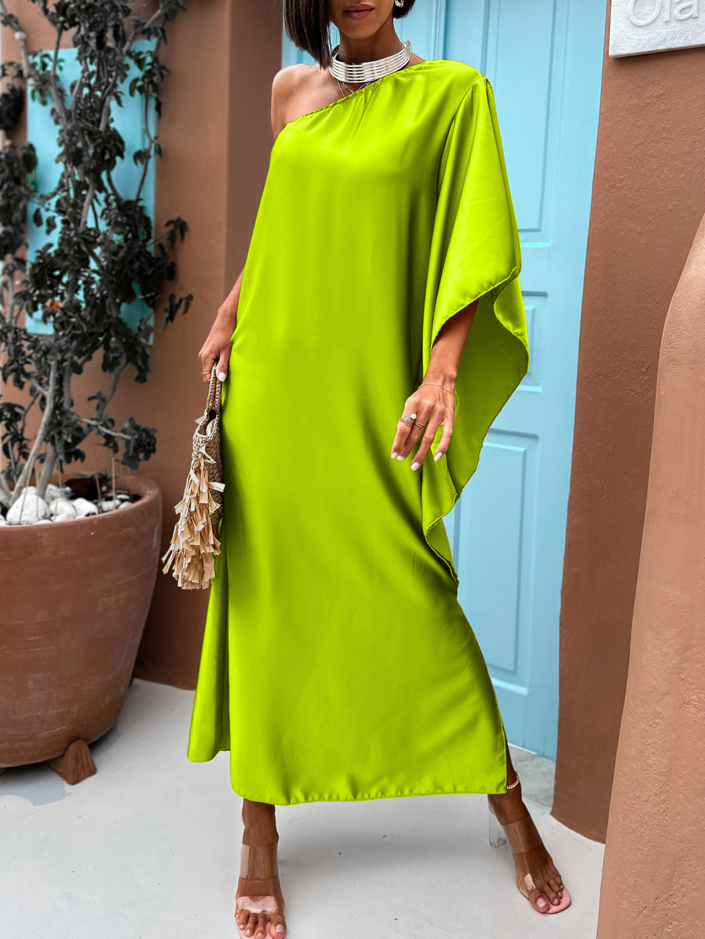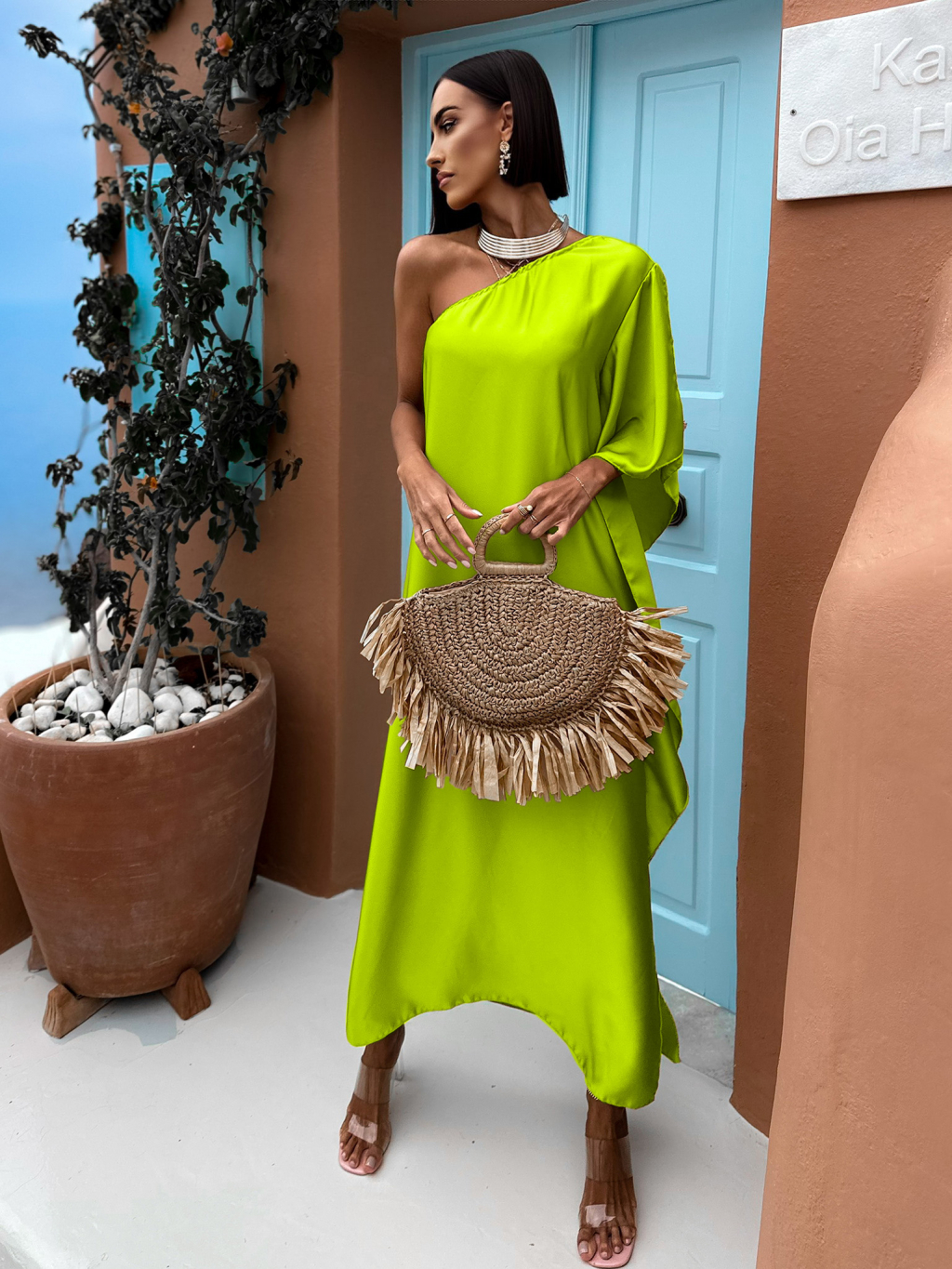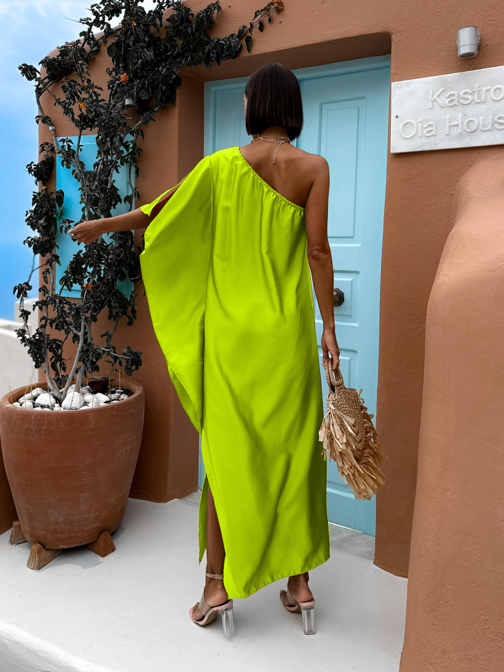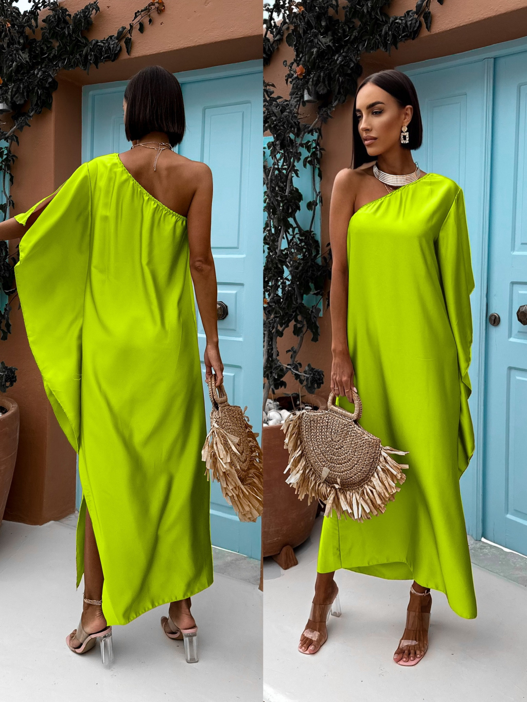 Neon zelené elegantní šaty HUDIESI přes rameno