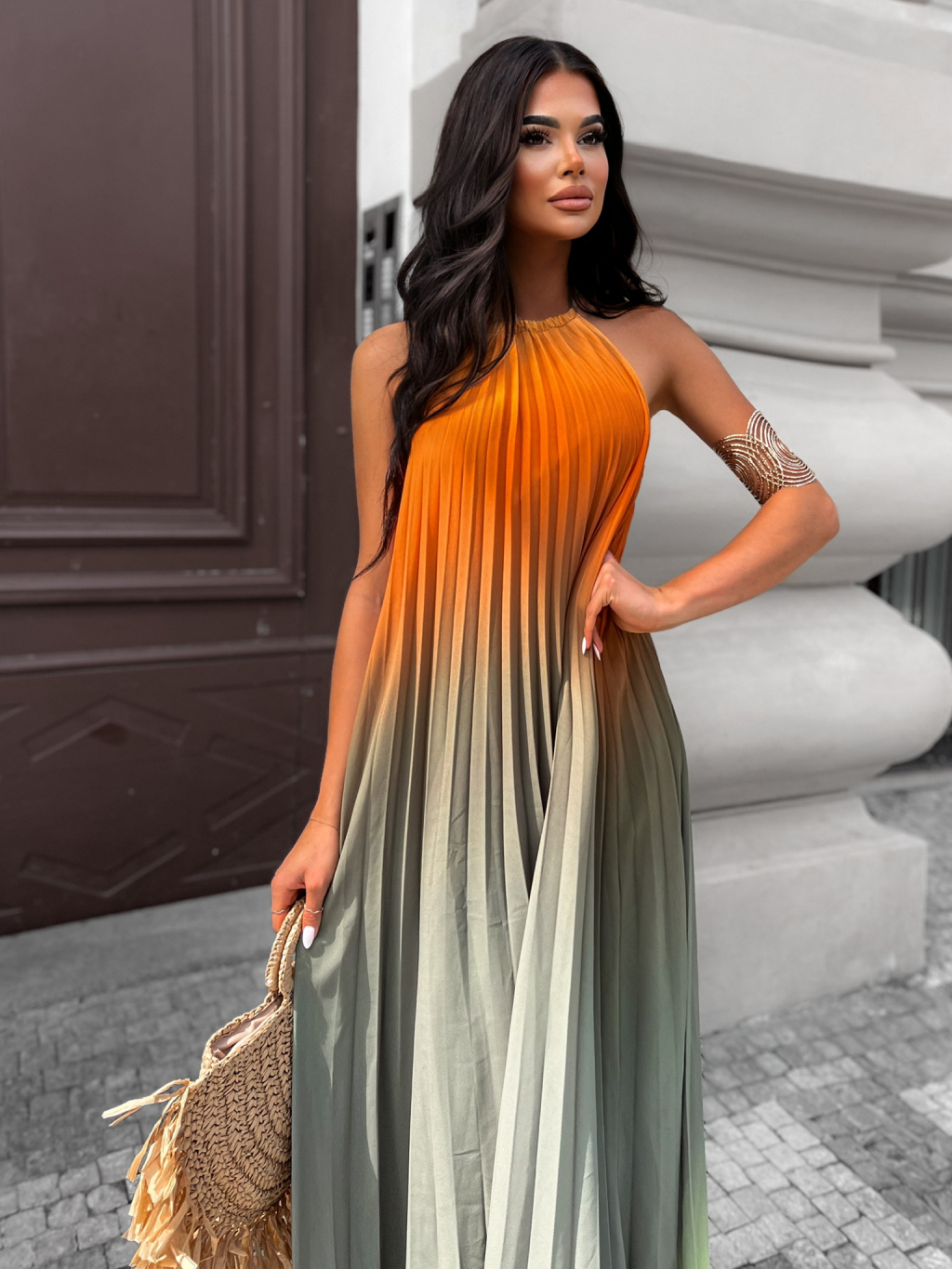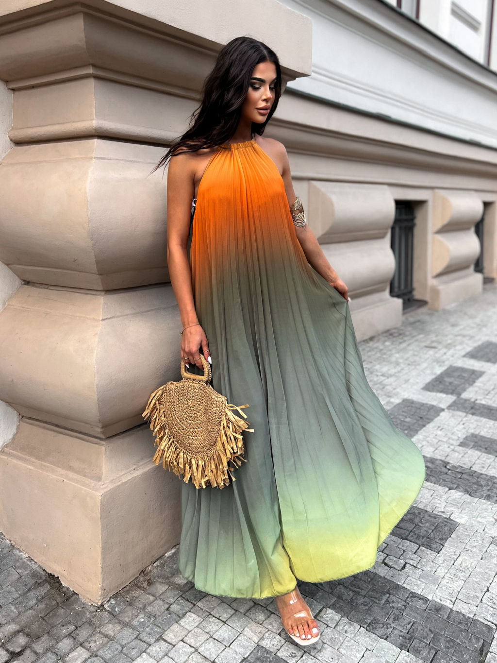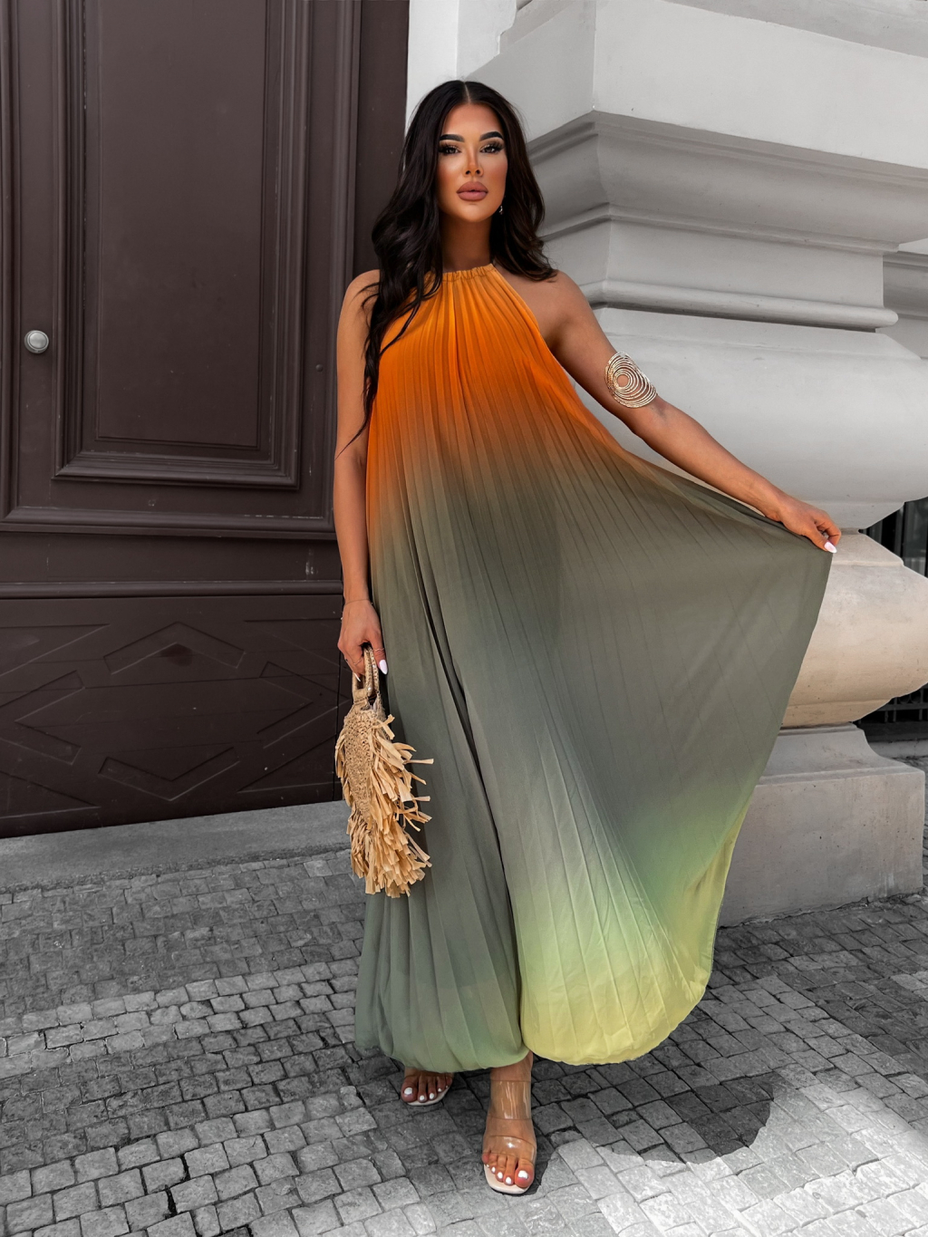 Oranžové dlouhé šaty LOTUSO na zavazování