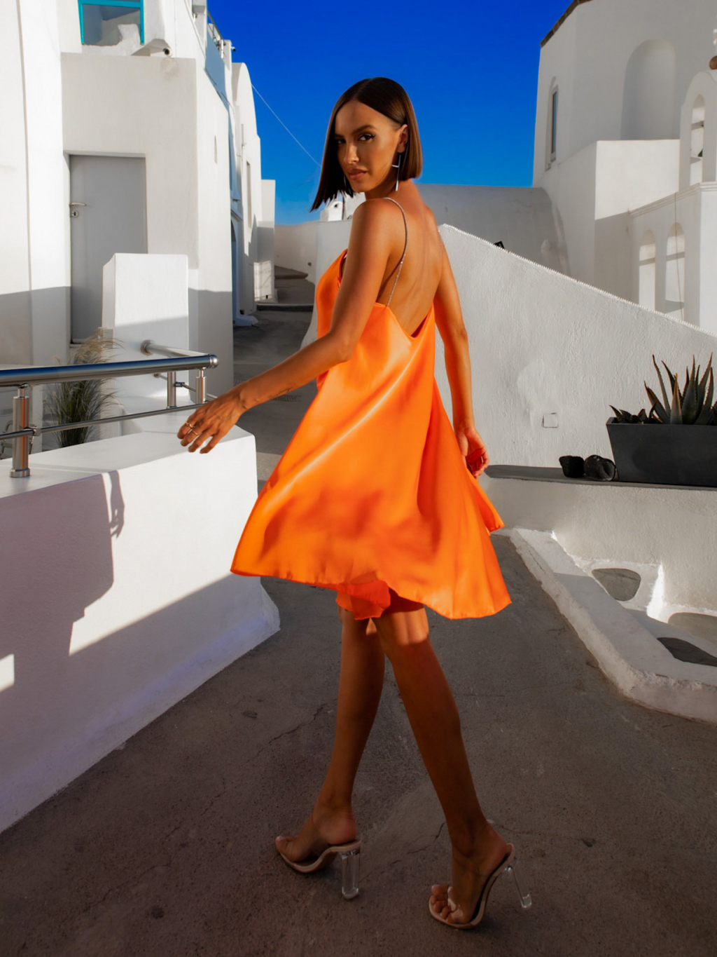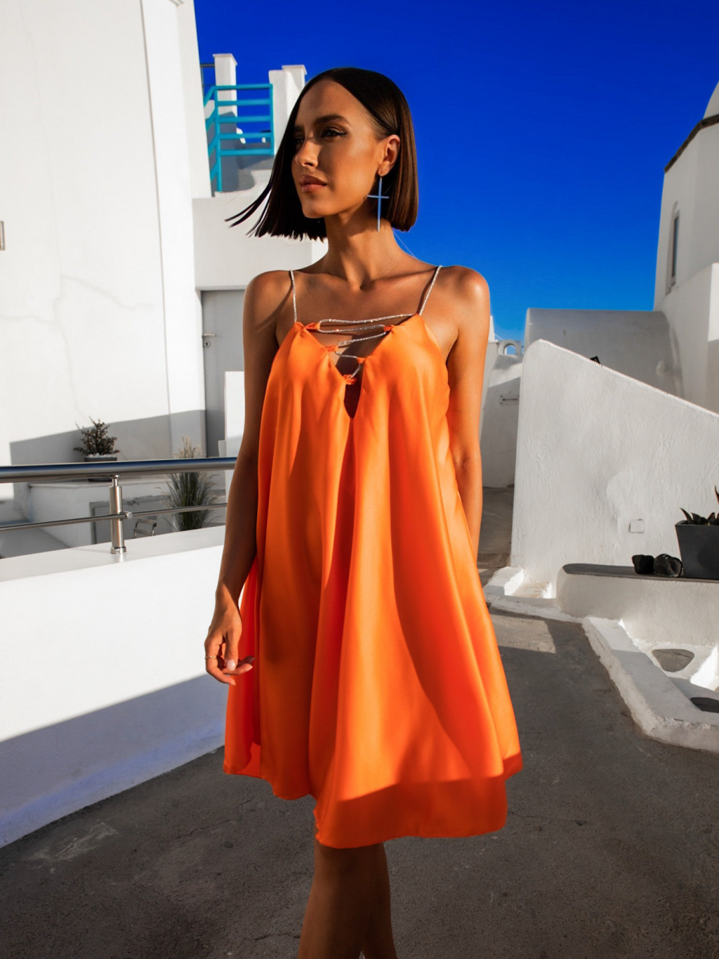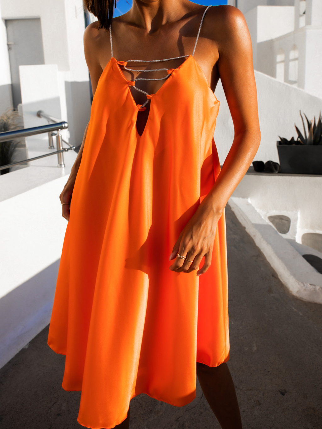 Oranžové elegantní šaty MILLER se třpytivými ramínky