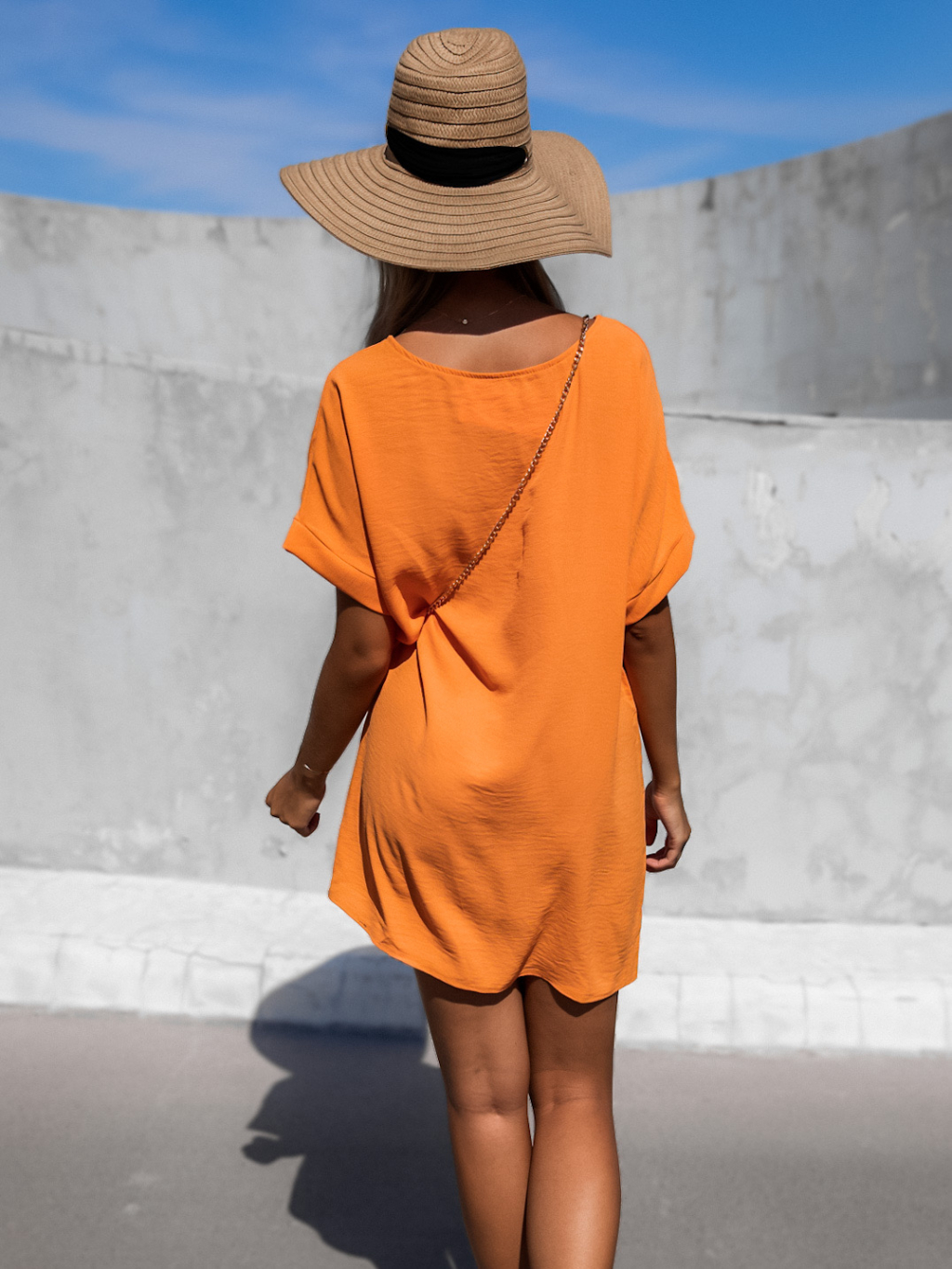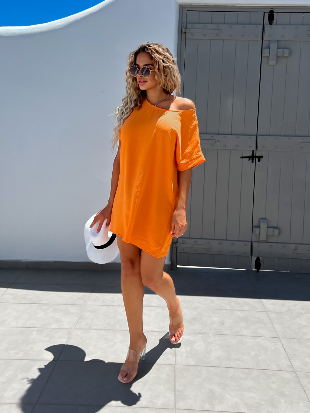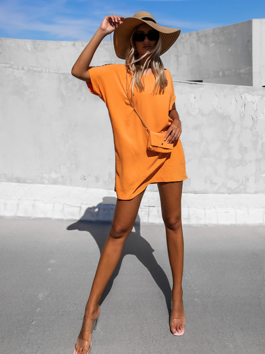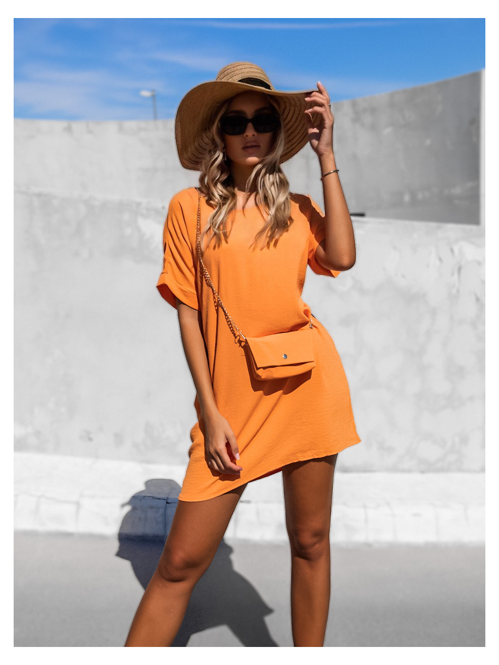 Oranžové jednoduché šaty CAINEN s menší kabelkou
