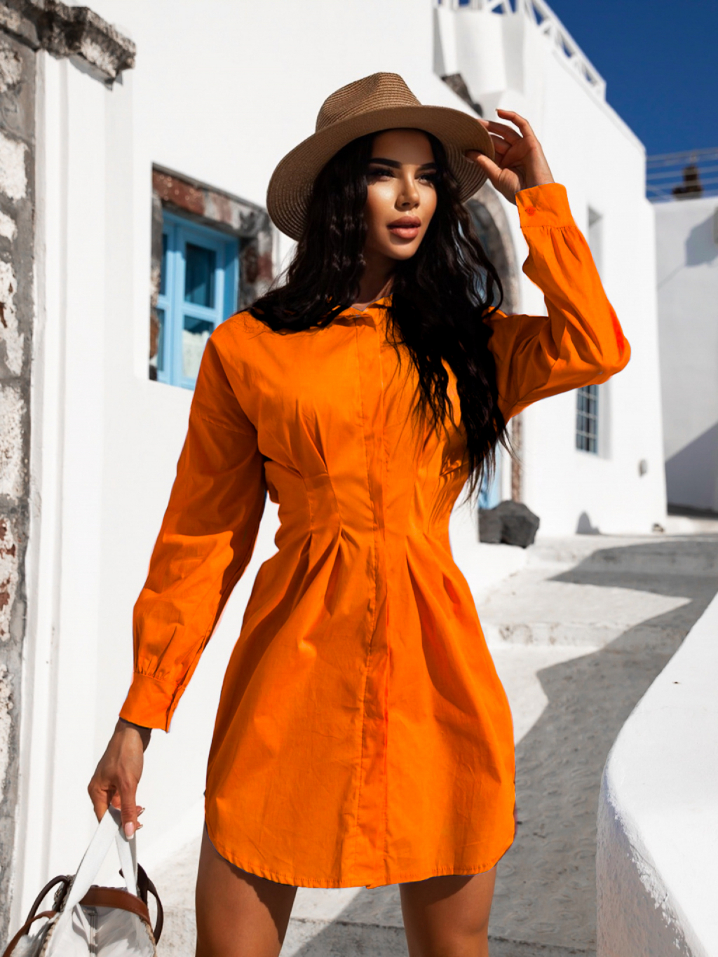 Oranžové košilové šaty SIERRA na knoflíky