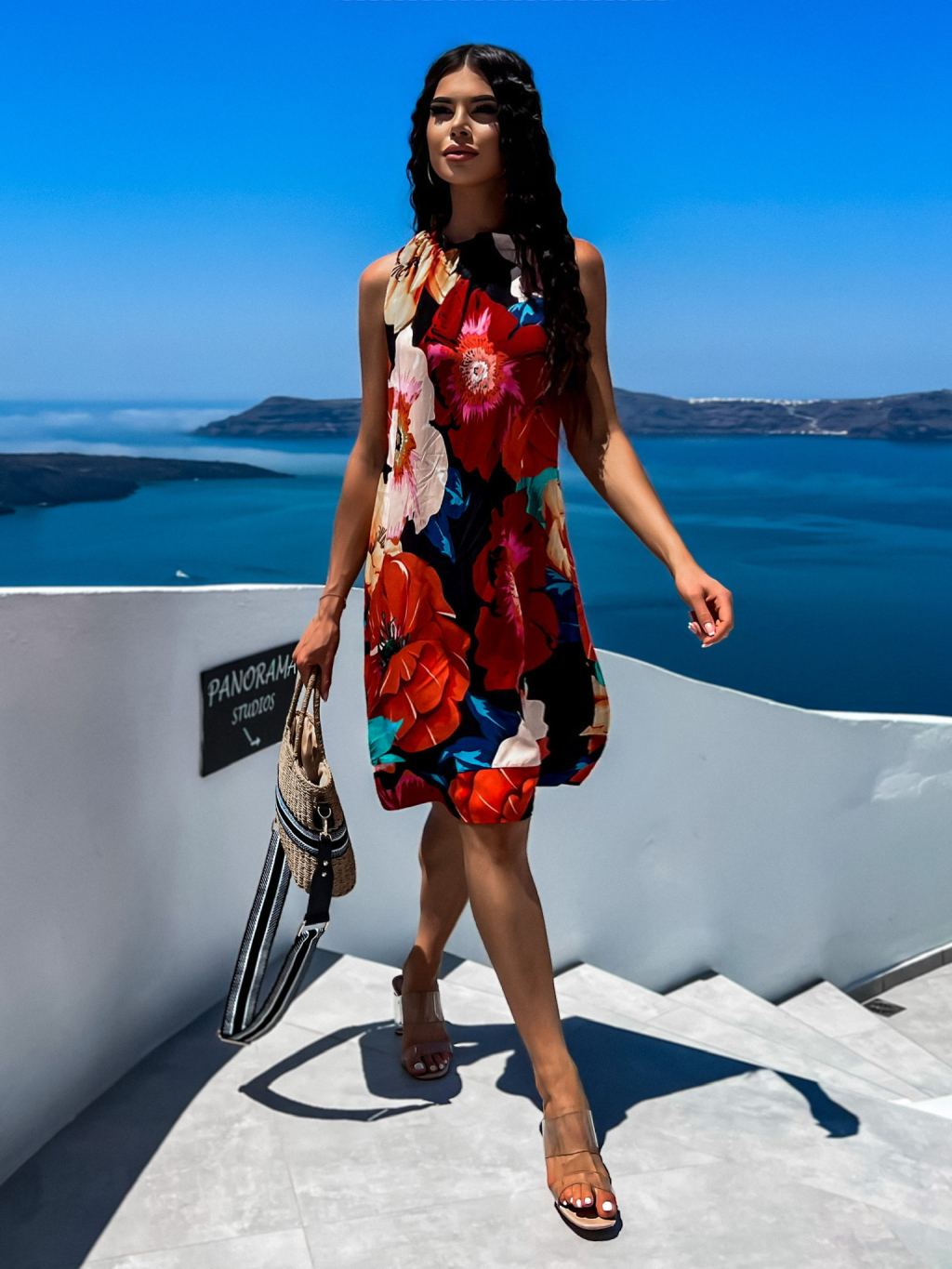 Oranžové vzorované šaty DALLA s květinovým vzorem