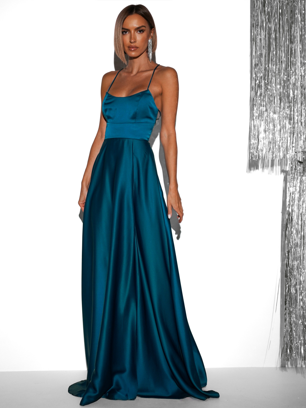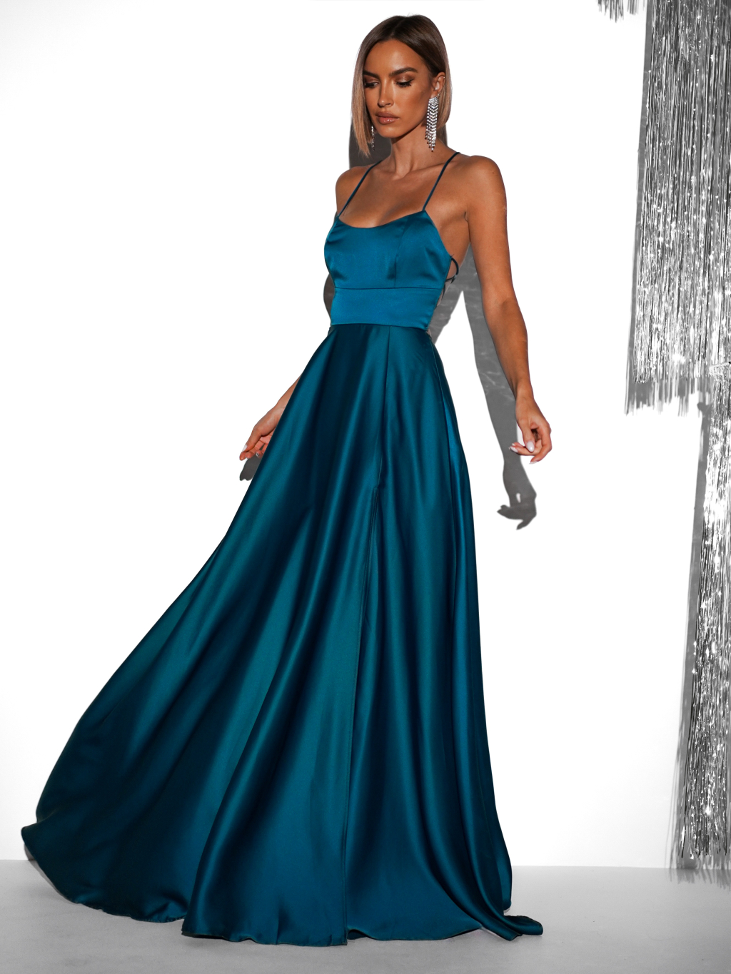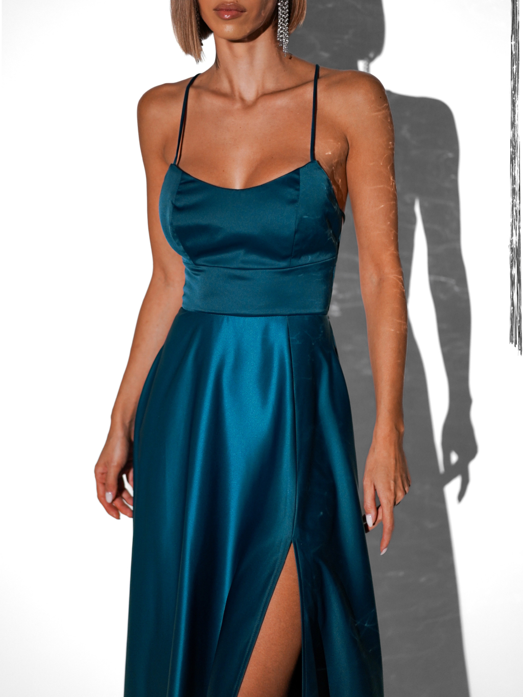 Petrolejové dlouhé plesové šaty CELLINES se šněrováním