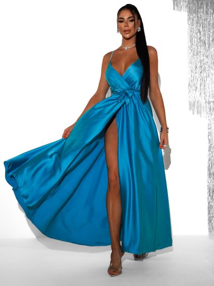 Petrolejové lesklé dlouhé plesové šaty PRIMROSE