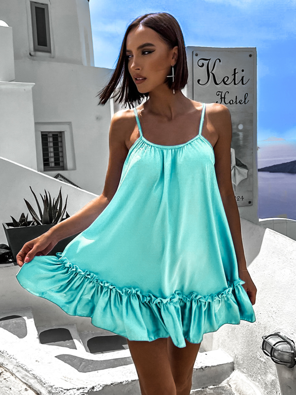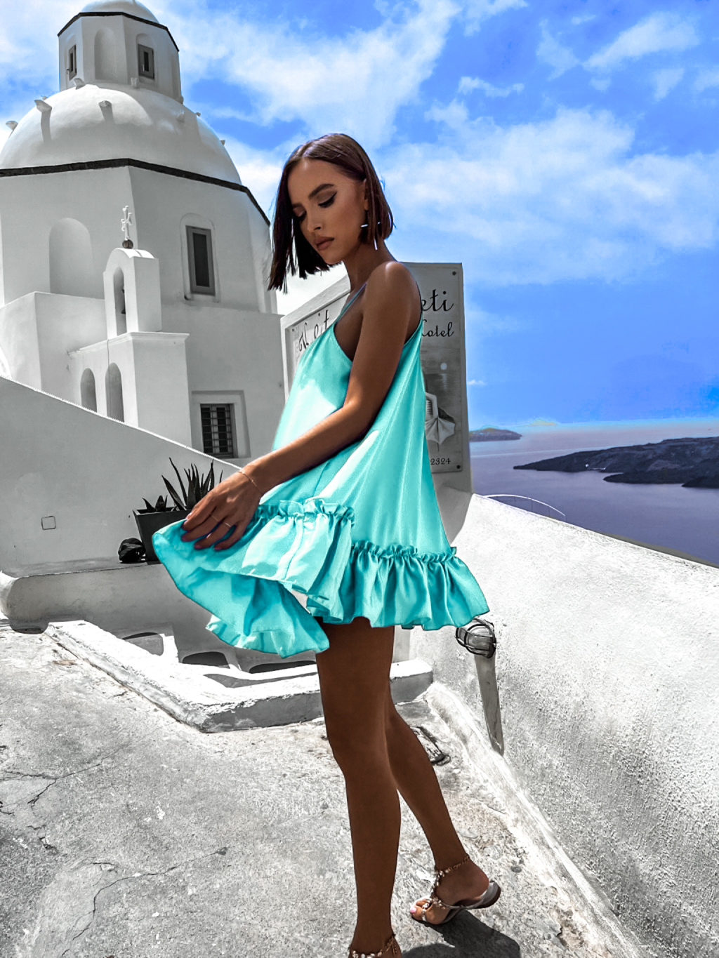 Pomněnkové volánkové šaty GLASSY volného střihu
