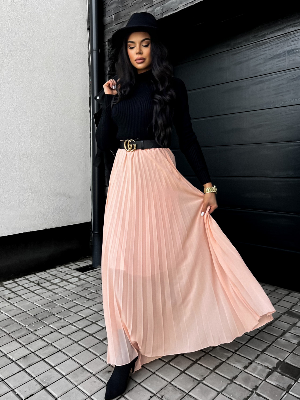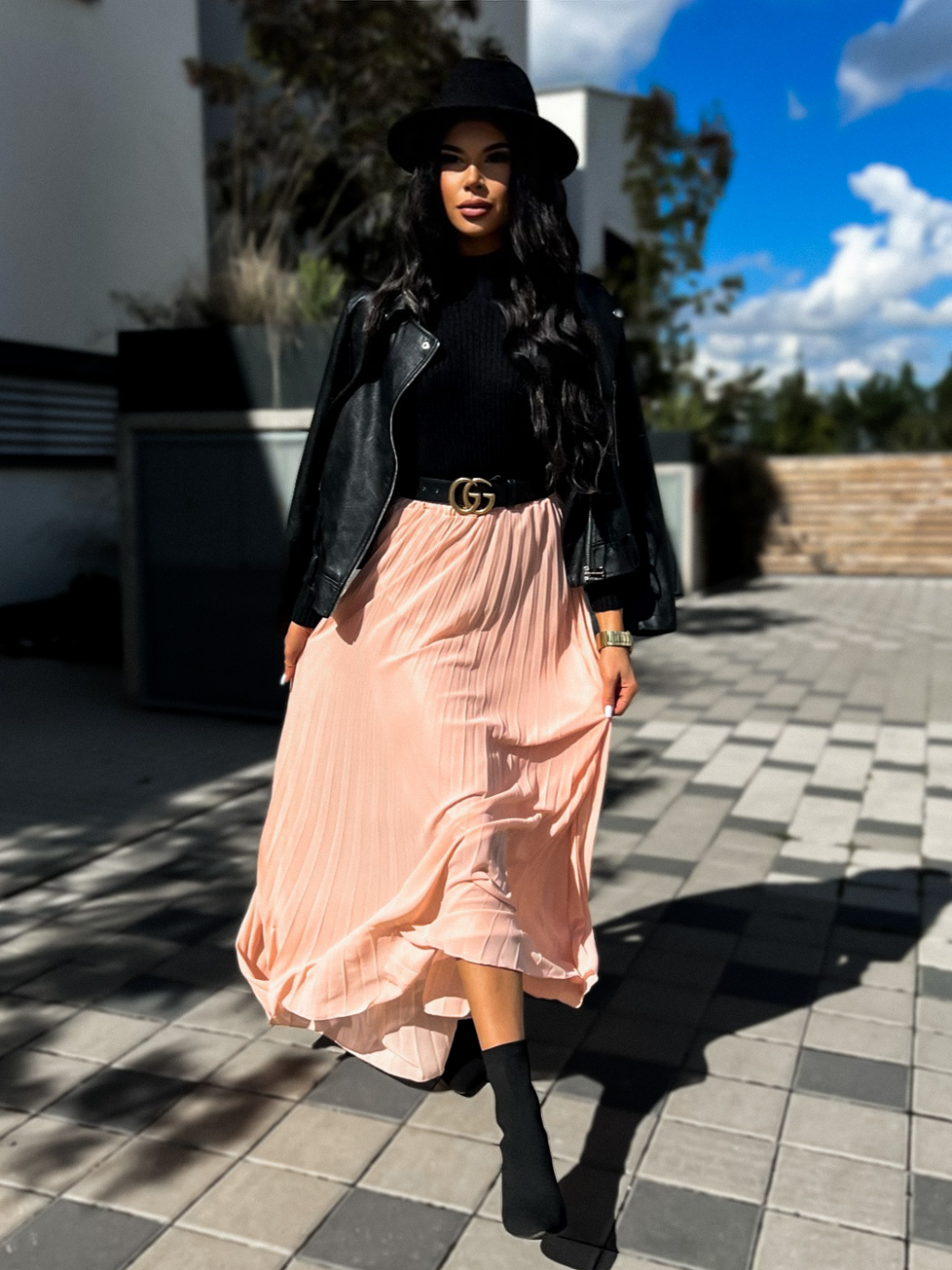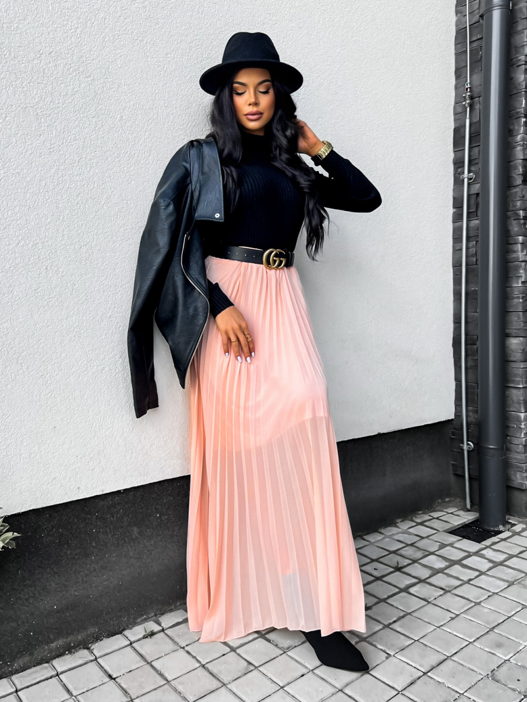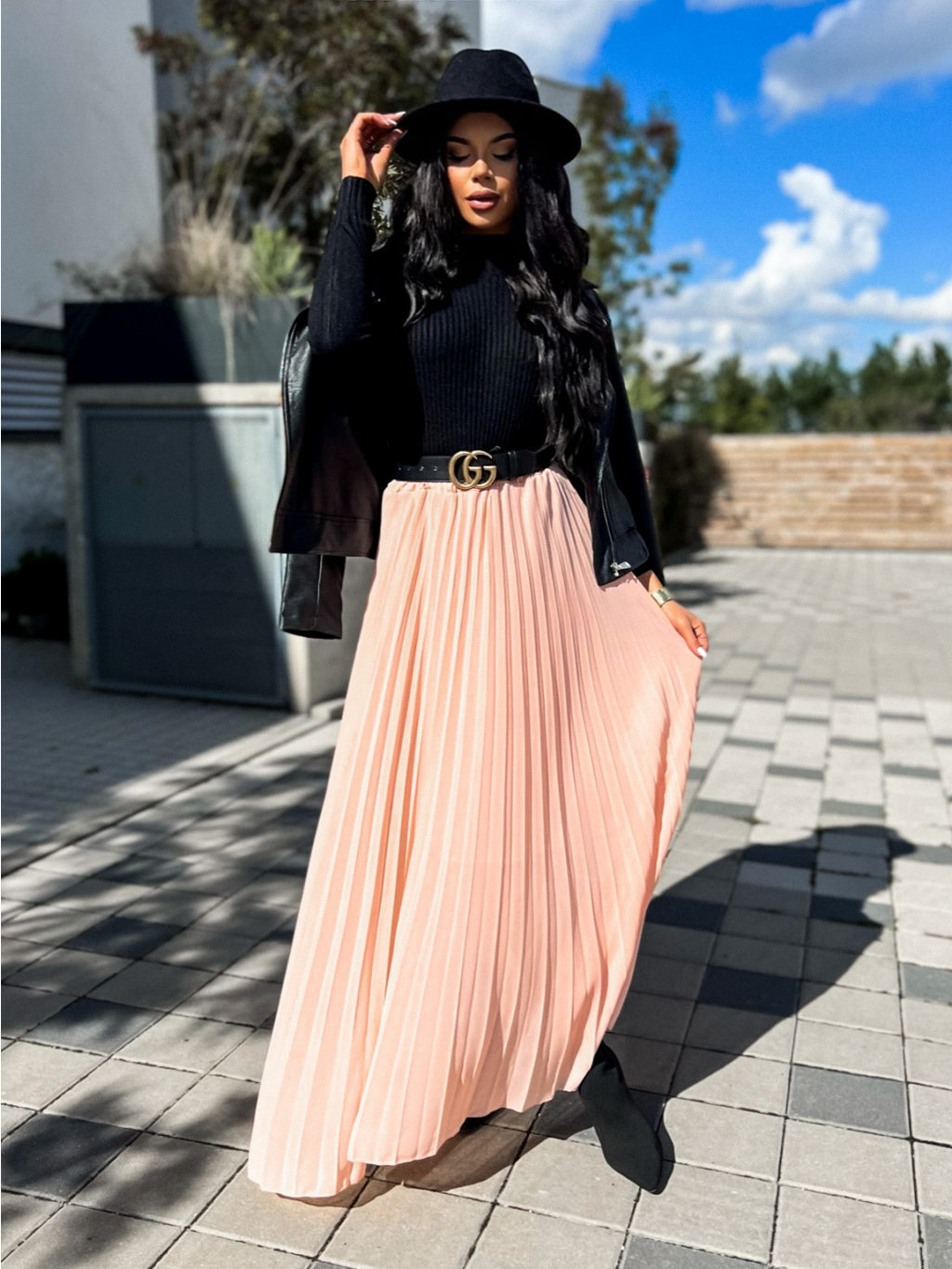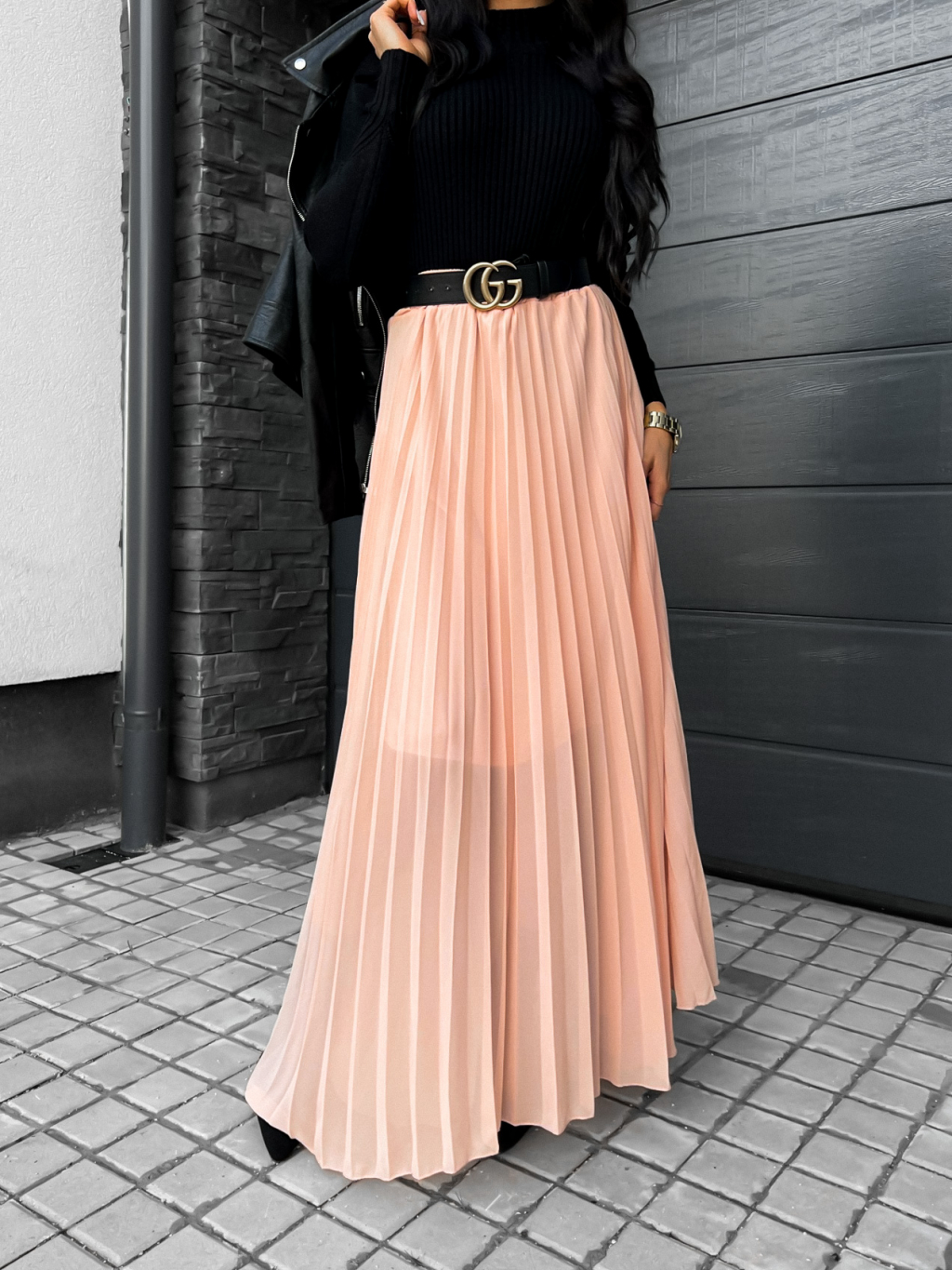 Růžová dlouhá plisovaná sukně SPRUCE