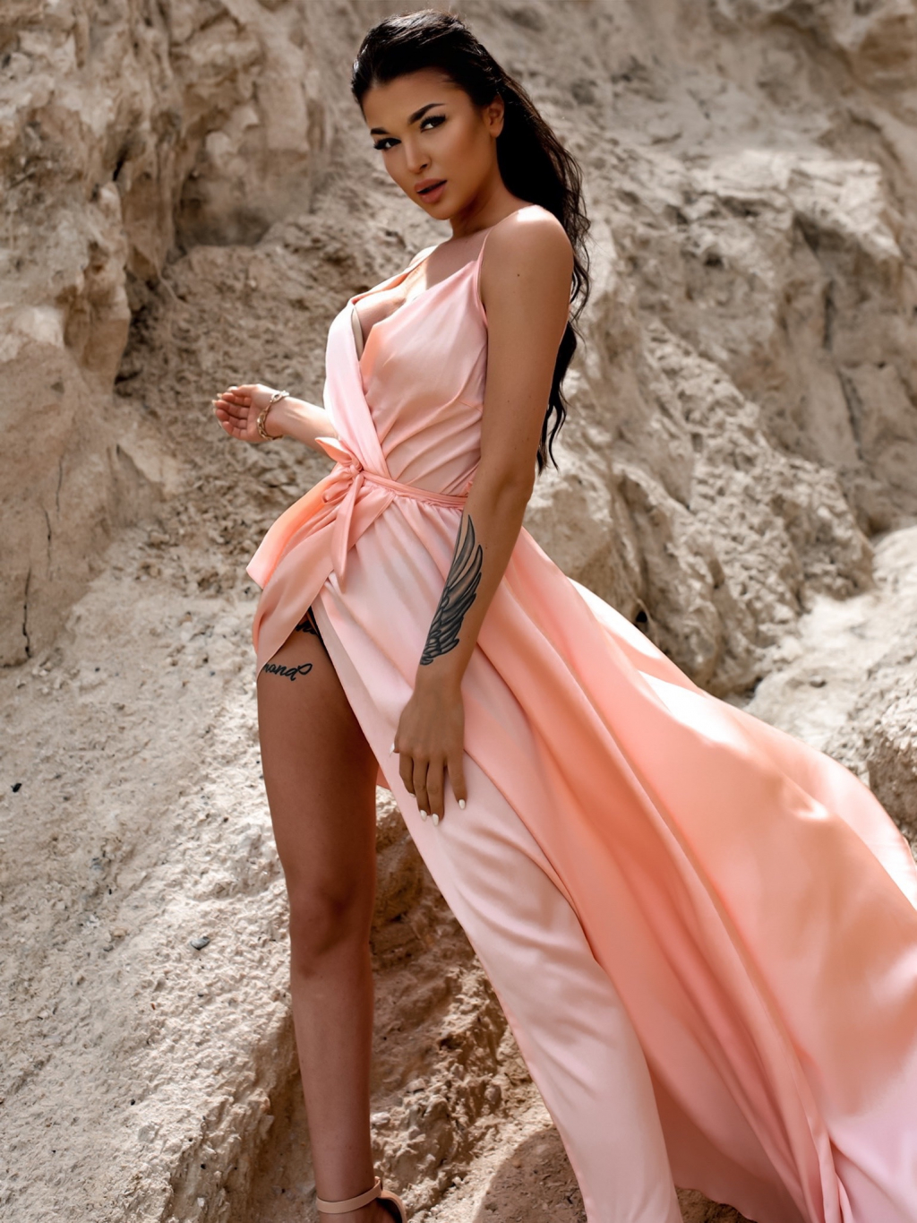 Světle růžové elegantní dlouhé šaty FAIRYTALE